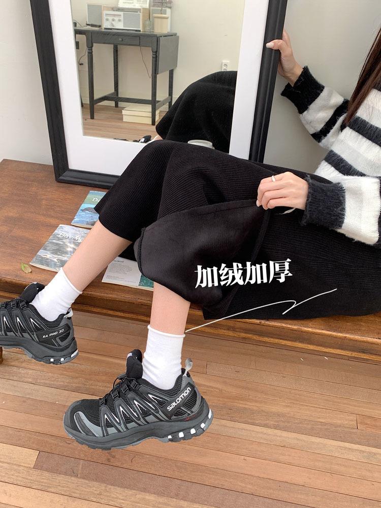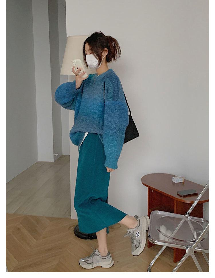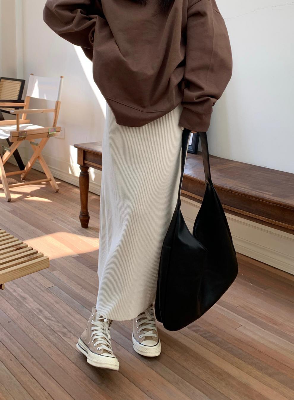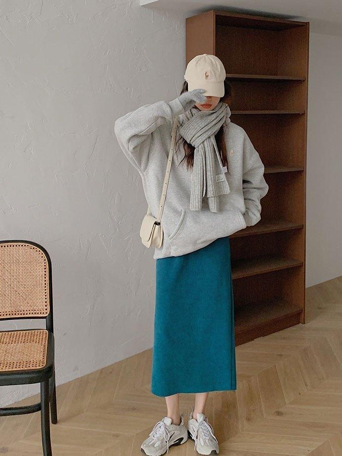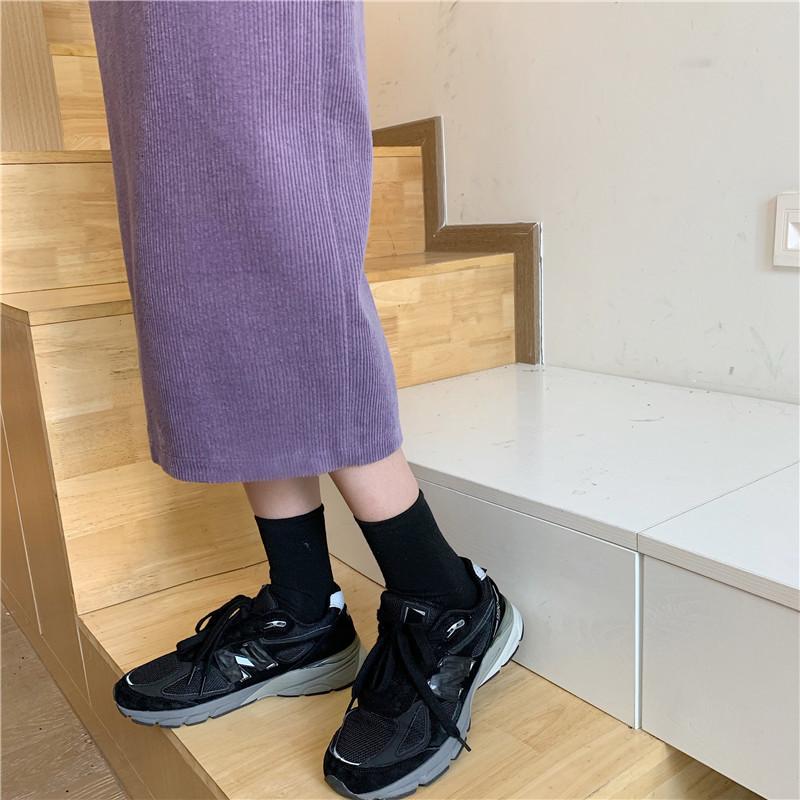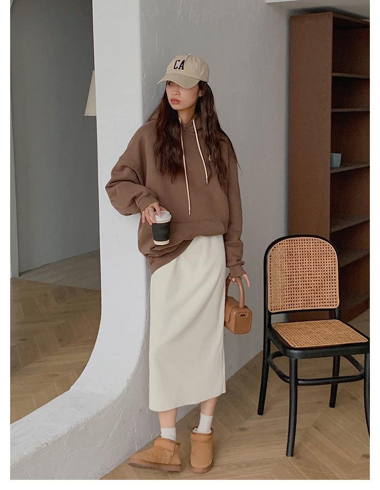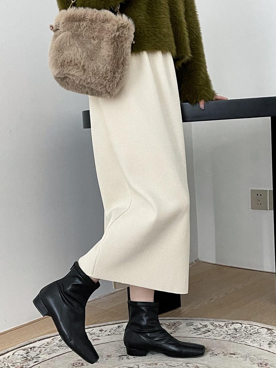 Falda de pana gruesa de otoño e invierno, cintura alta, adelgazante, elástica, con abertura en la cadera, línea A, longitud media, de un solo paso.