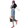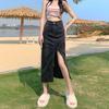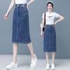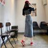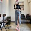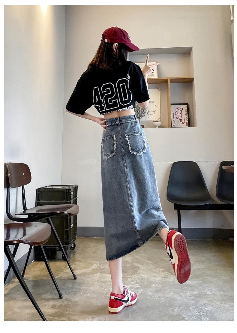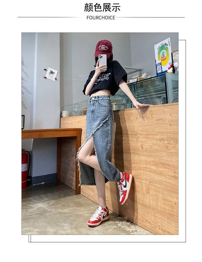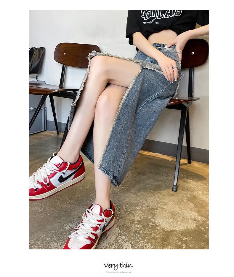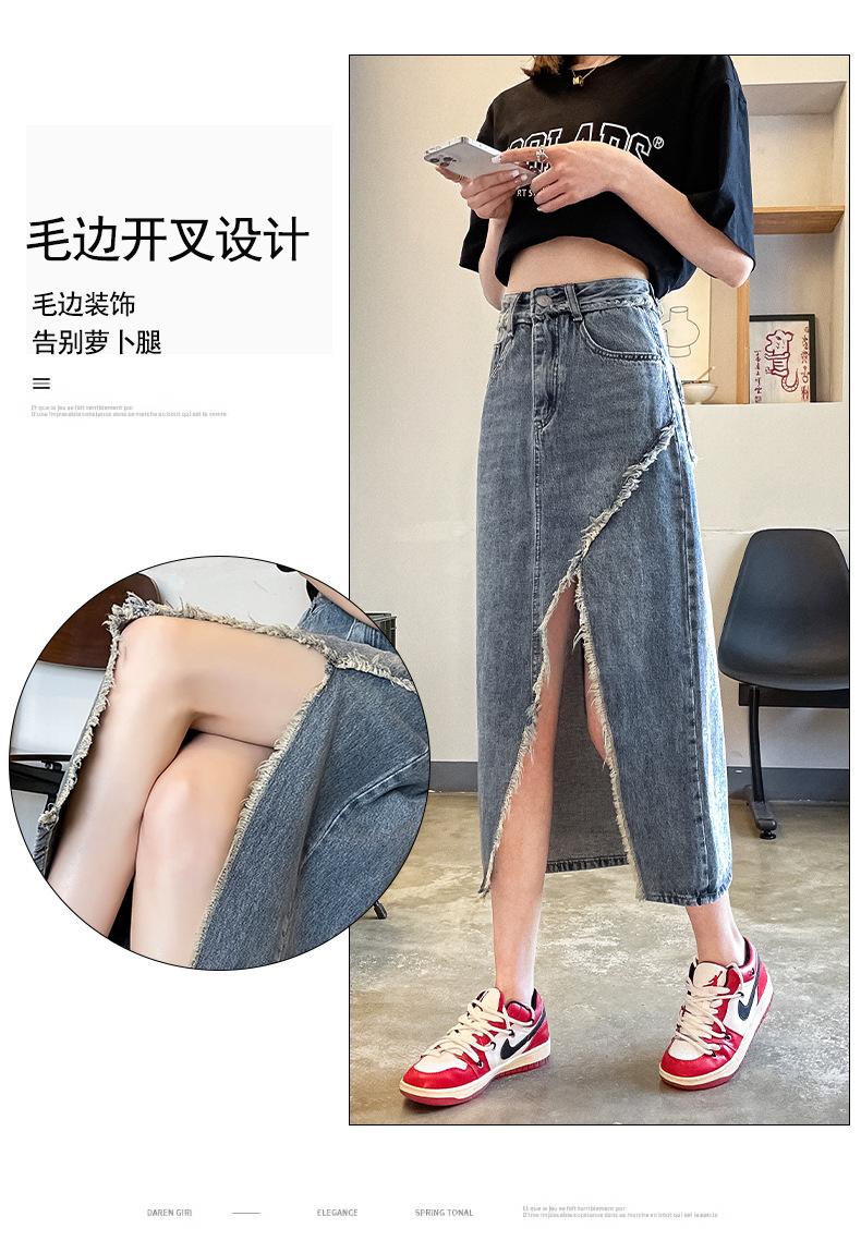 Falda vaquera dividida de primavera y verano para mujer, falda irregular de cintura alta, adelgazante, con borde sin rematar, falda de corte A, longitud media, de moda.