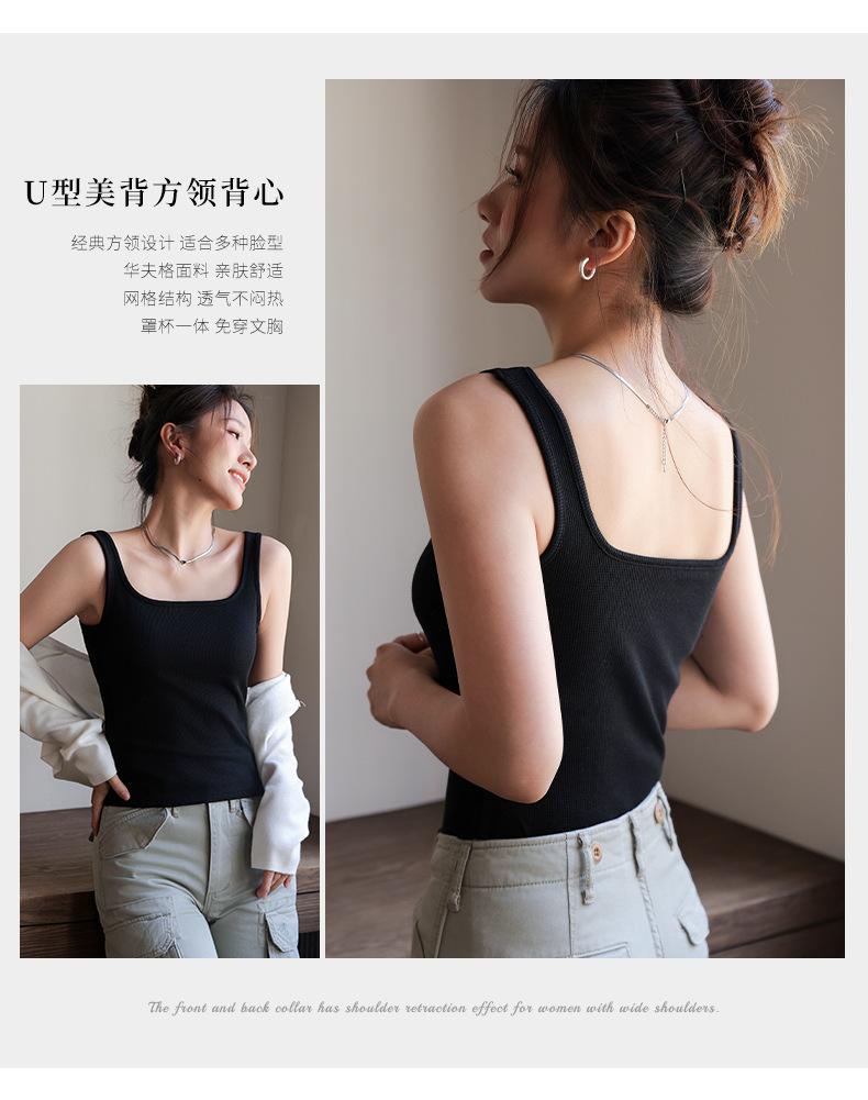 Camisola de mujer, sujetador de una pieza con almohadilla para el pecho para uso exterior de verano, ropa interior sin mangas con espalda en U