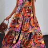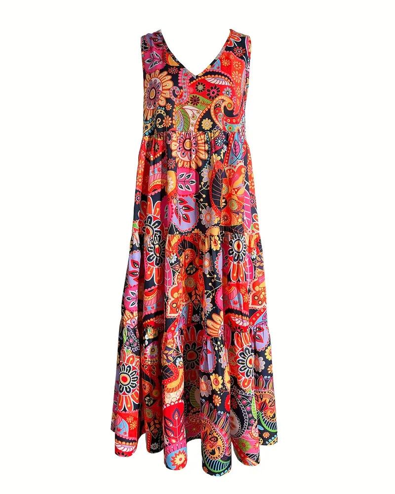 Vestido de mujer con cuello en V, sin mangas y costuras de color, estampado europeo y americano, Amazon 2024, novedad de verano