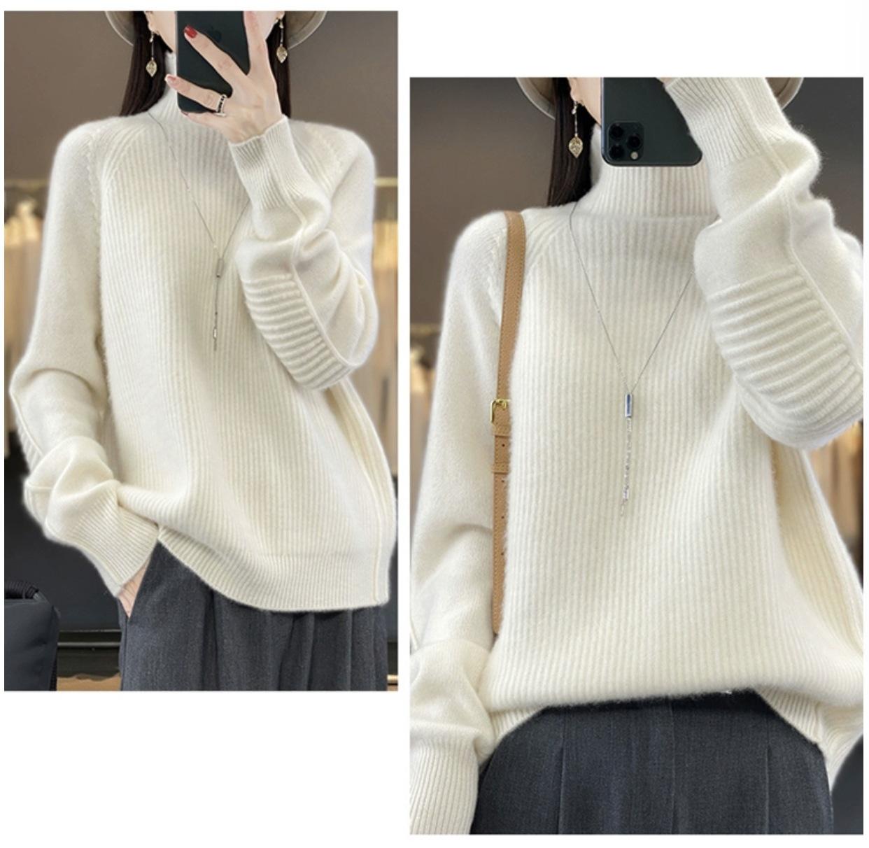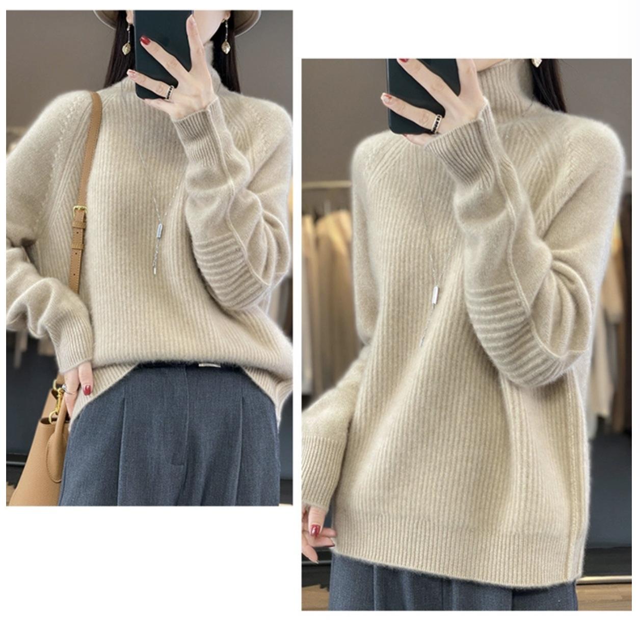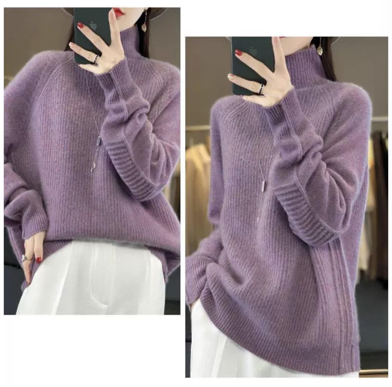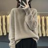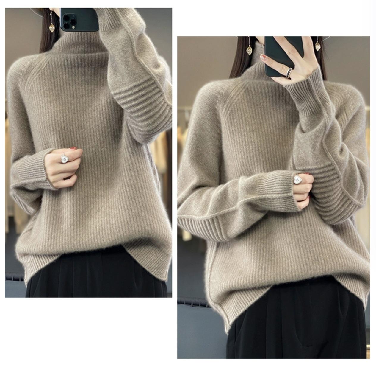 Suéter ligero de cachemira de lujo para mujer, otoño e invierno, nuevo, cuello alto, tejido, suéter holgado de lana gruesa.