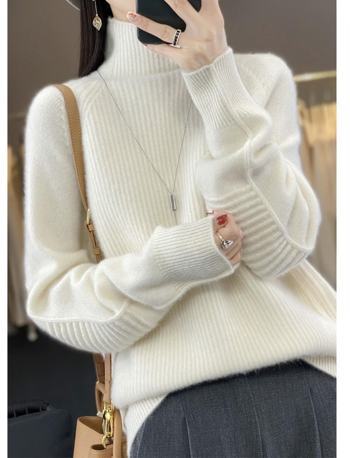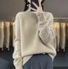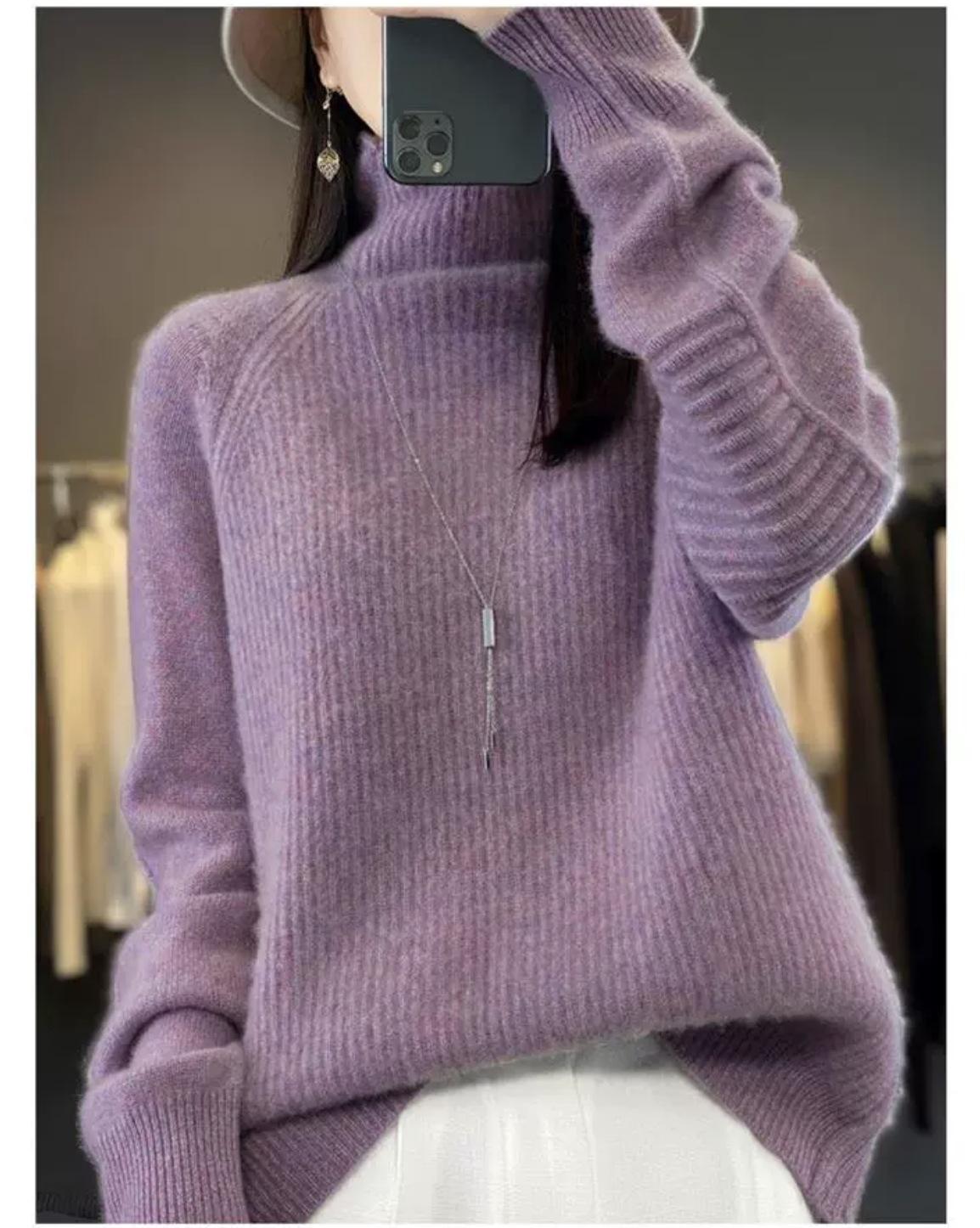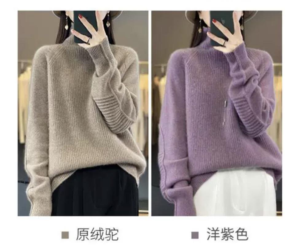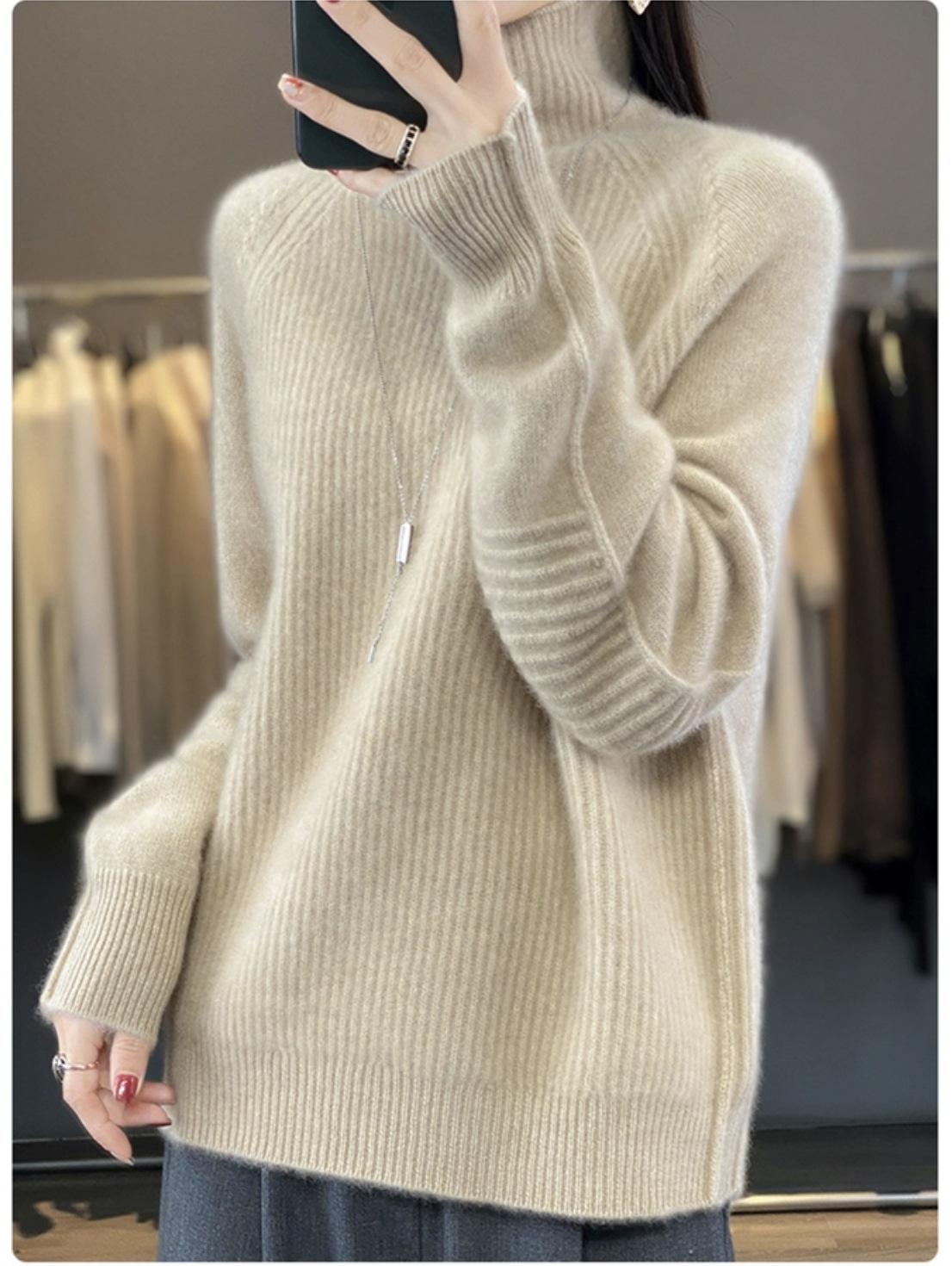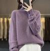 Suéter ligero de cachemira de lujo para mujer, otoño e invierno, nuevo, cuello alto, tejido, suéter holgado de lana gruesa.