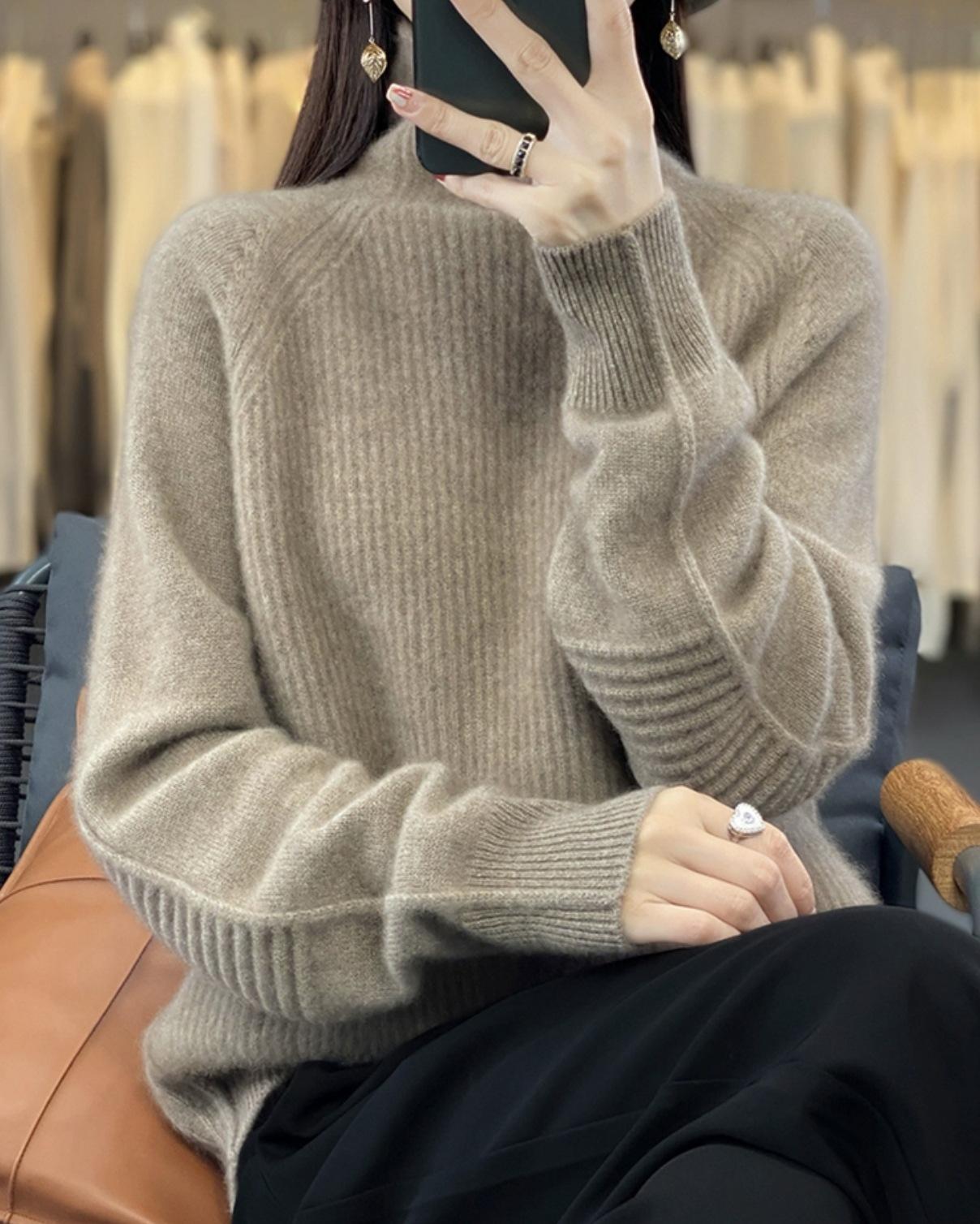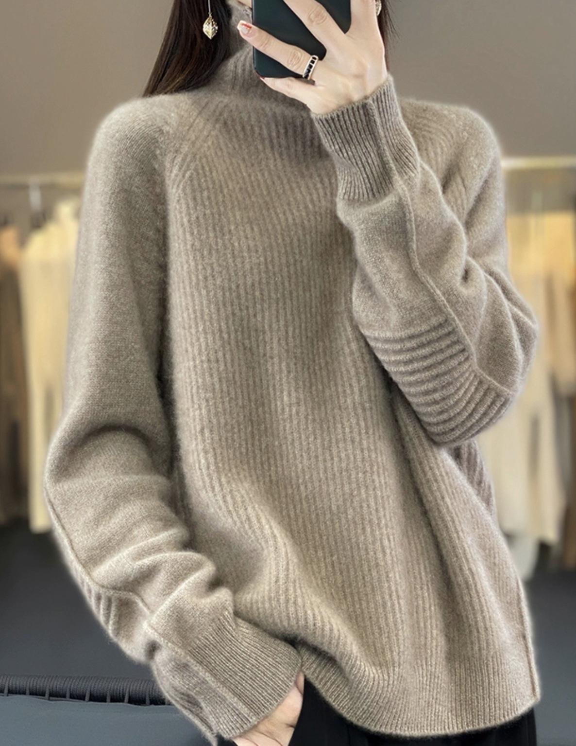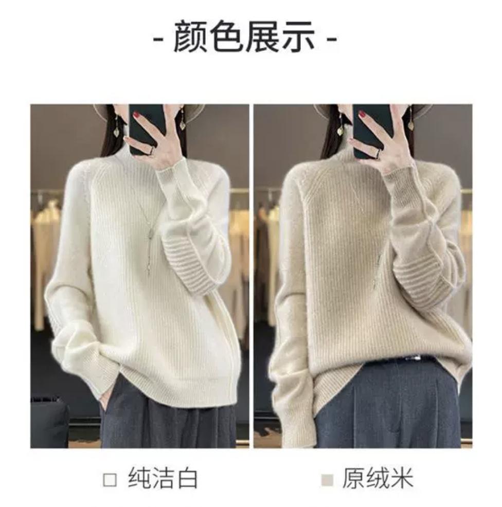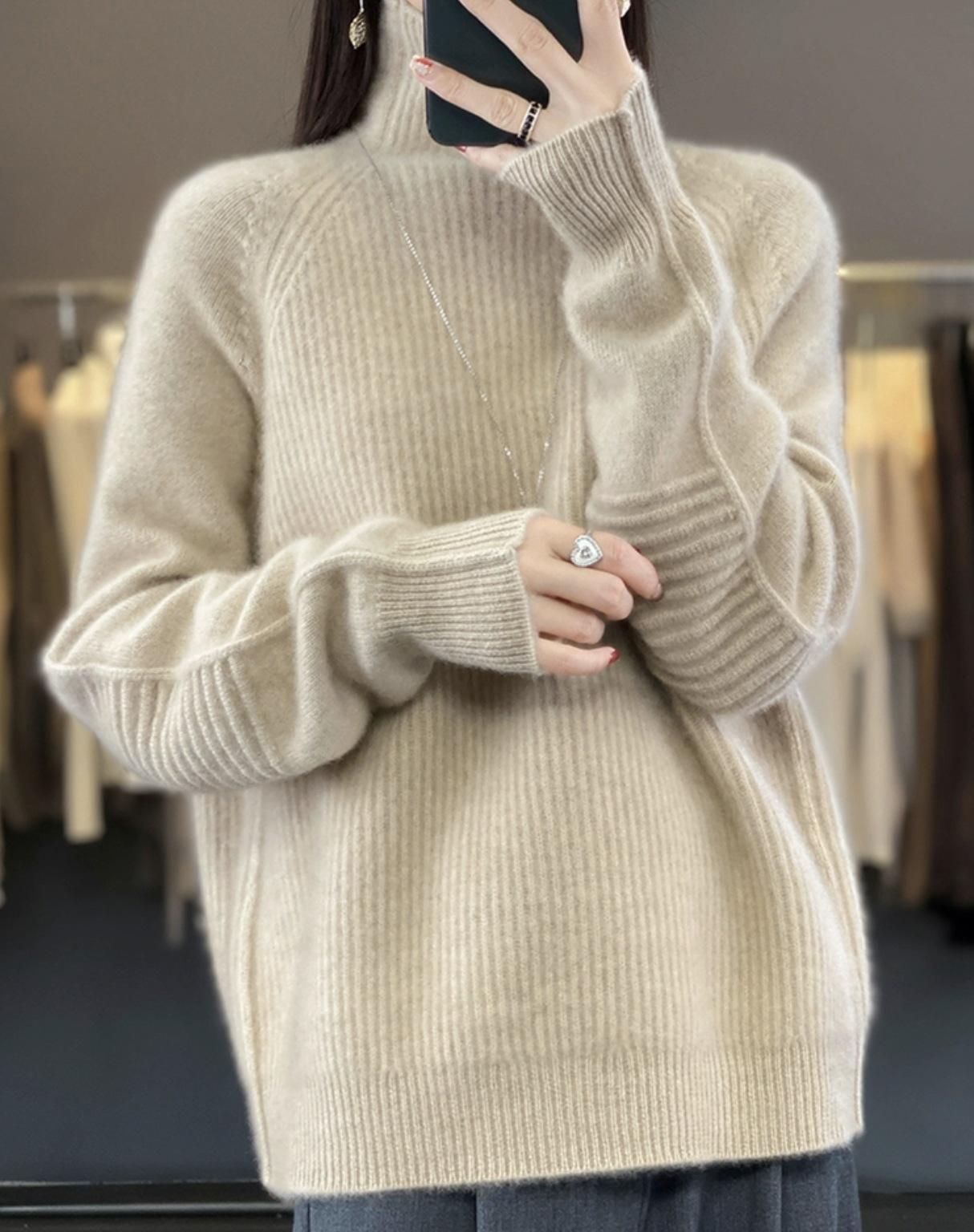 Suéter ligero de cachemira de lujo para mujer, otoño e invierno, nuevo, cuello alto, tejido, suéter holgado de lana gruesa.