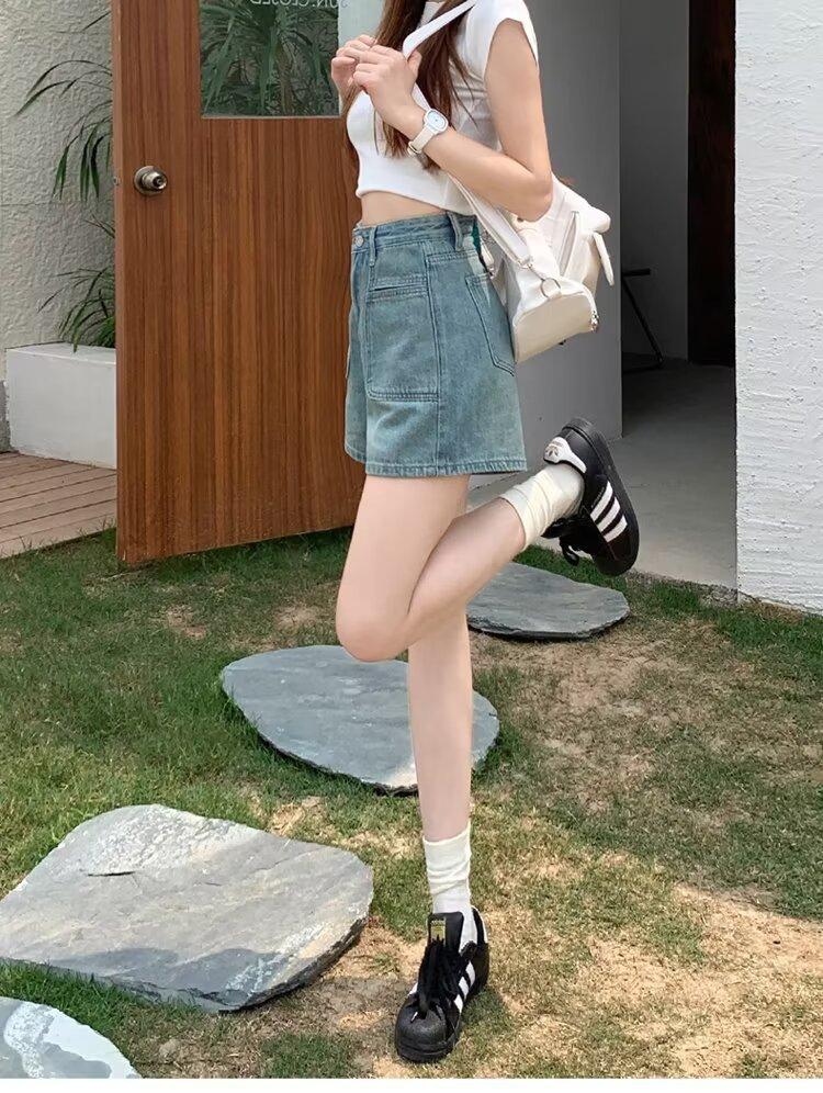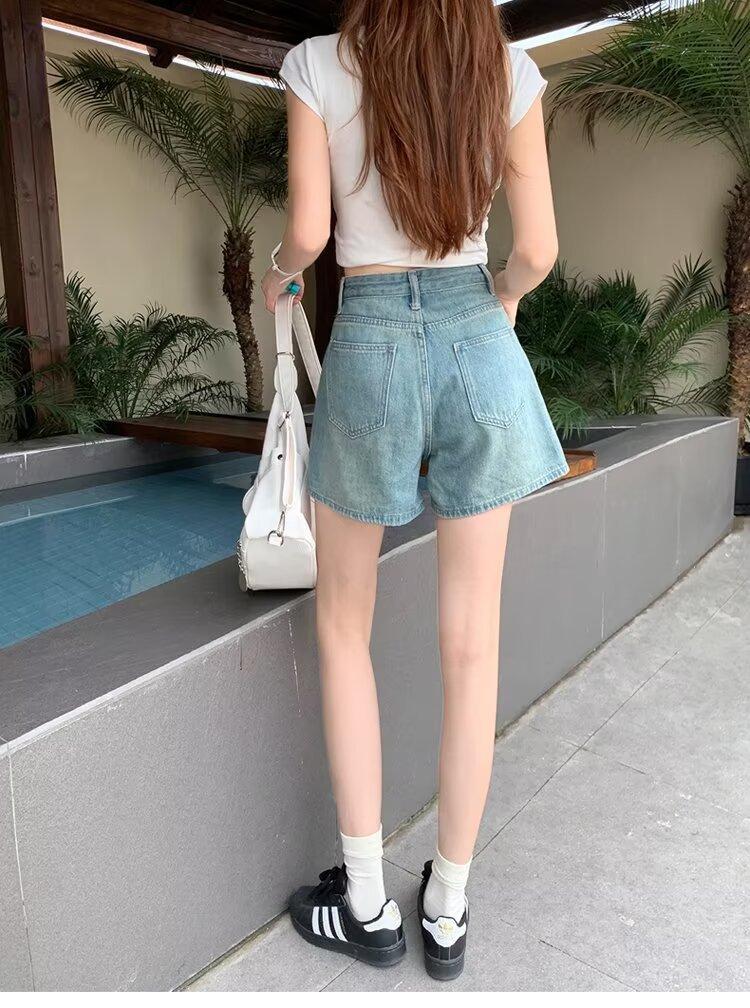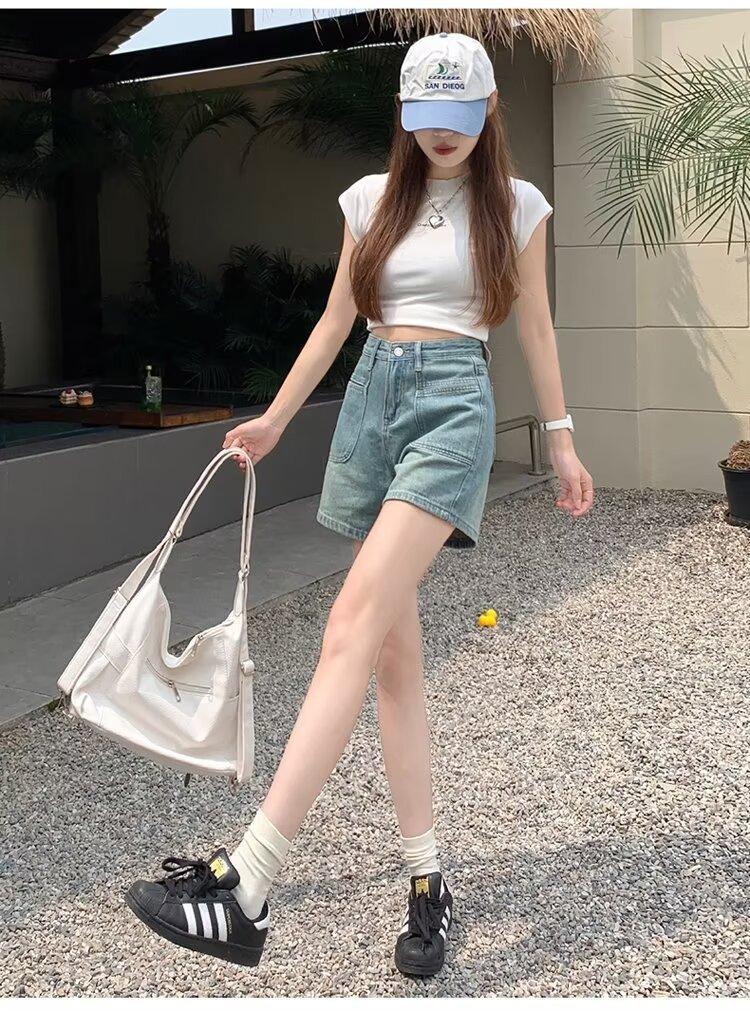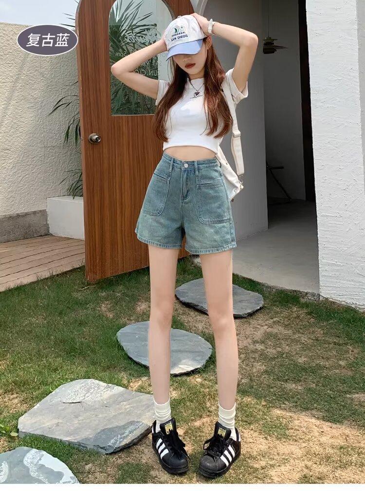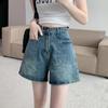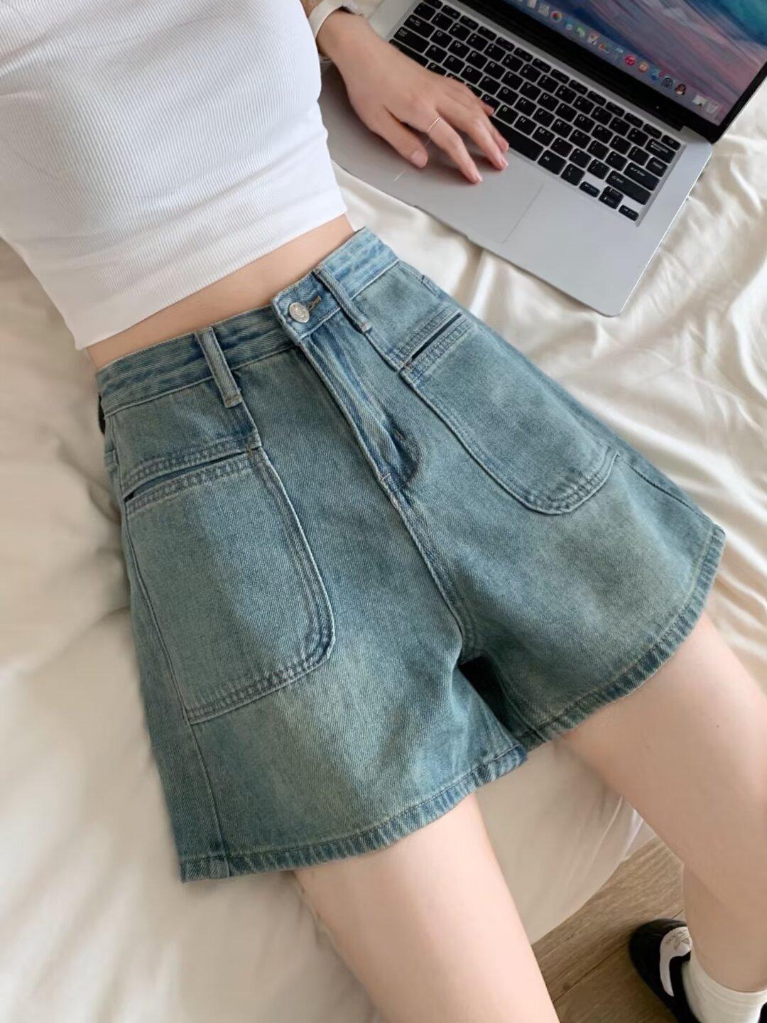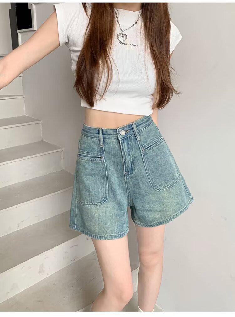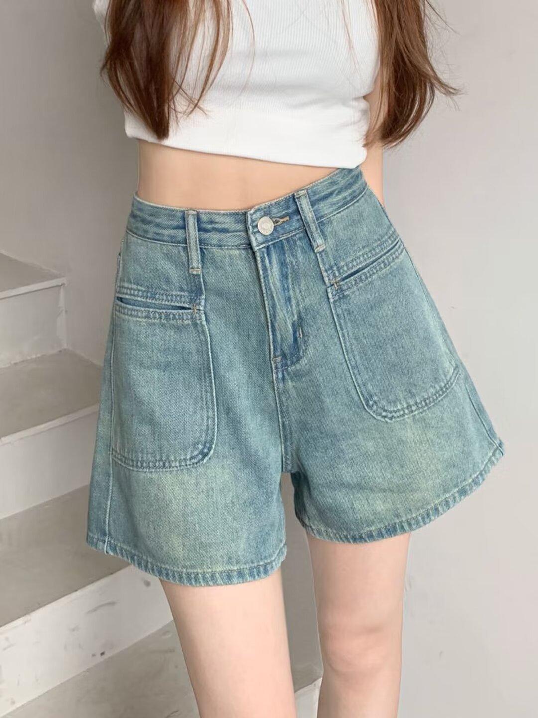 Shorts de Mezclilla para Mujer Verano 2024 Nuevos de Cintura Alta Línea A Sueltos Adelgazantes Hot Pants para Ropa Exterior