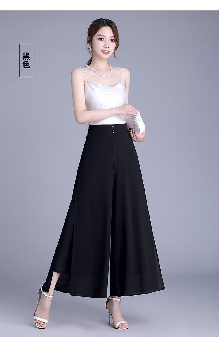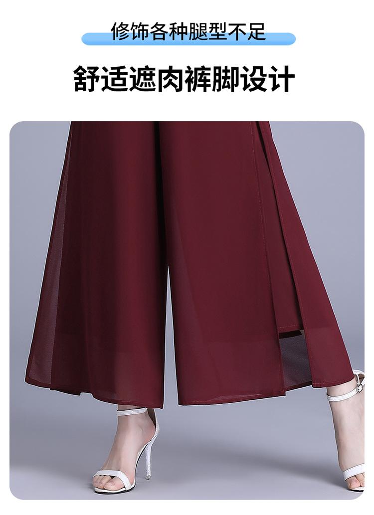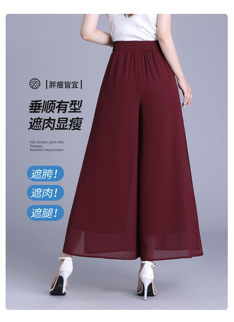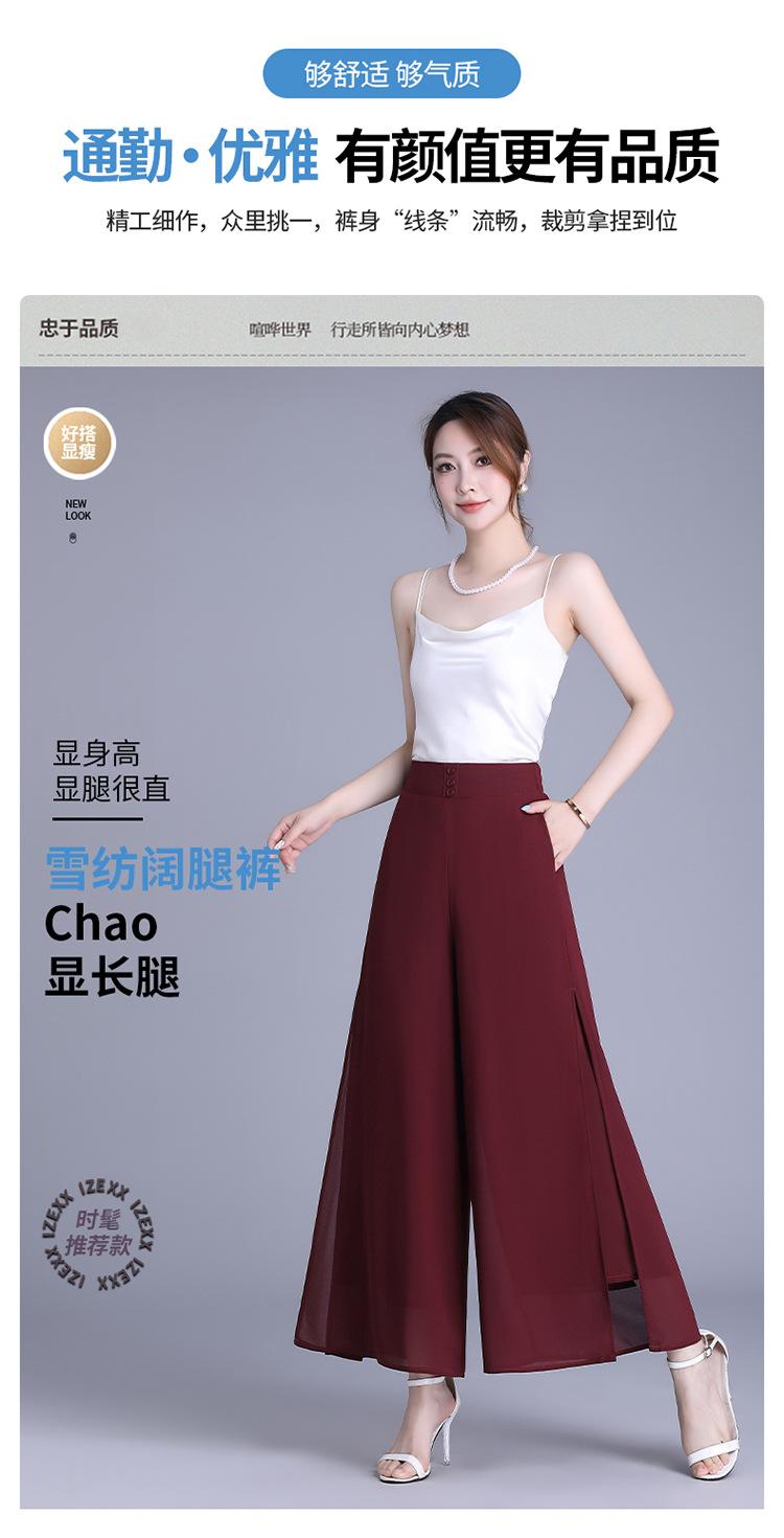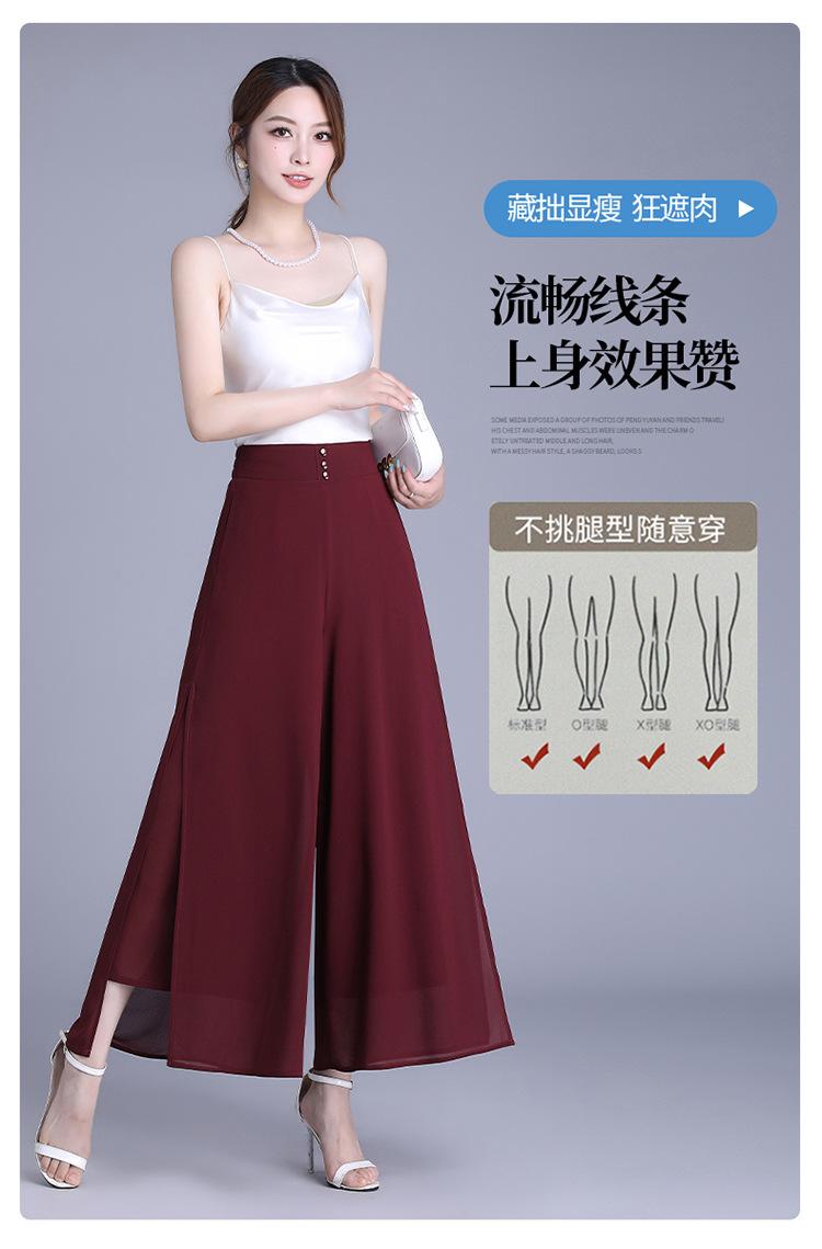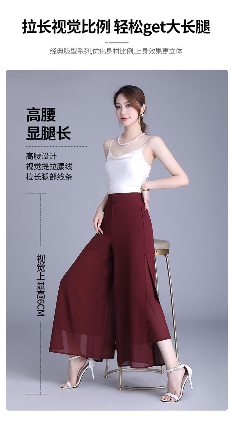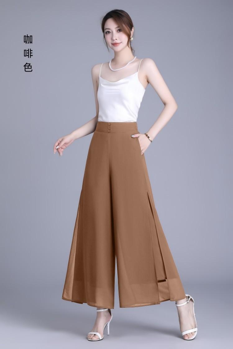 Pantalones de Pierna Ancha con Abertura para Mujer 2025 Nuevo Verano Culottes Drapeados de Chifón de Nueve Puntos para Mujer de Cintura Alta Sueltos con Aspecto Adelgazante