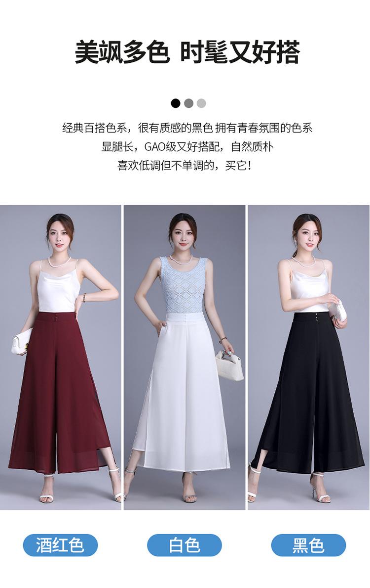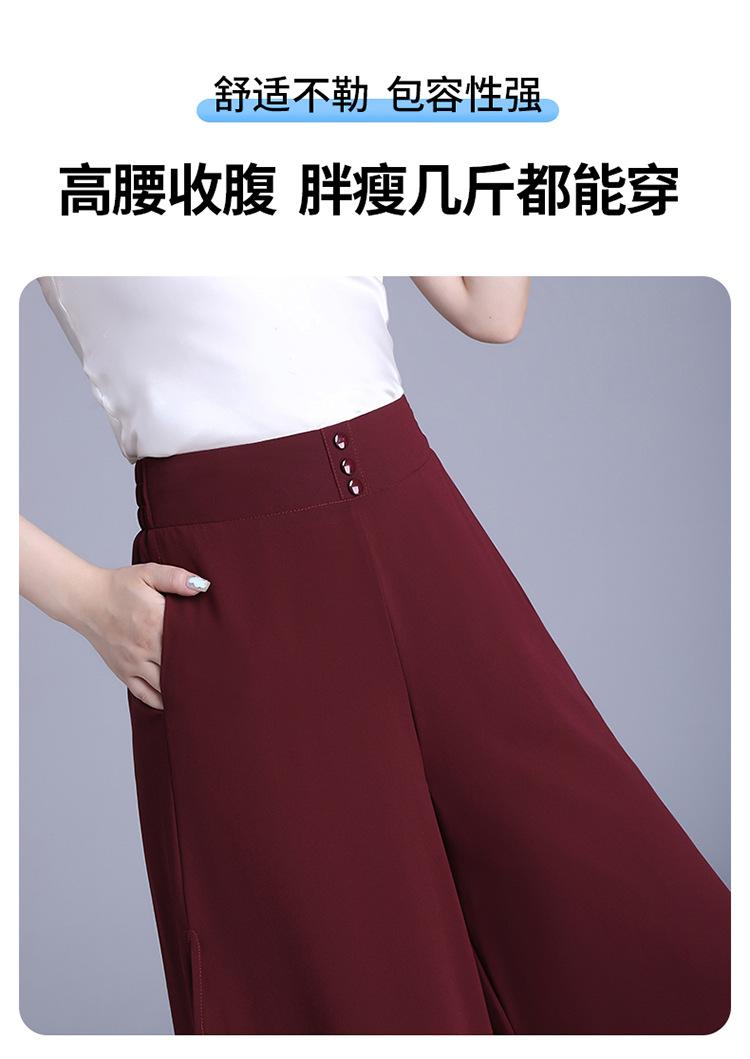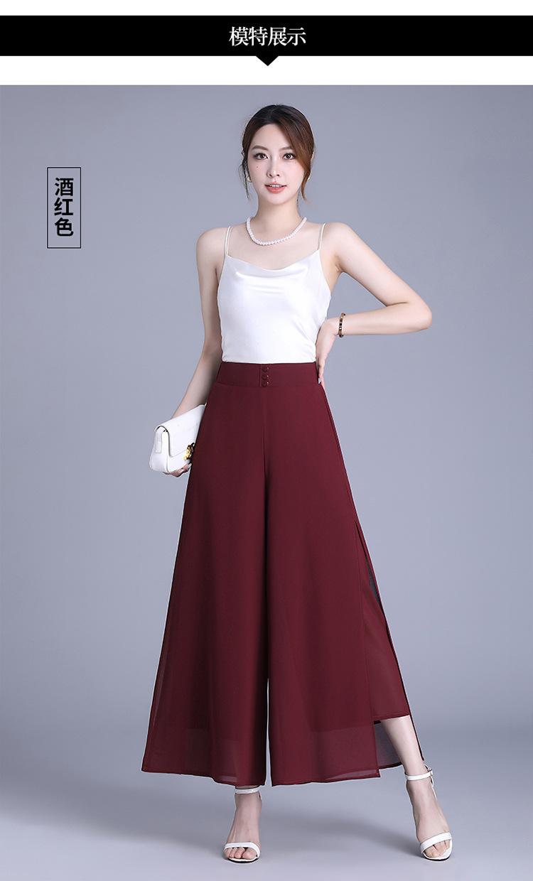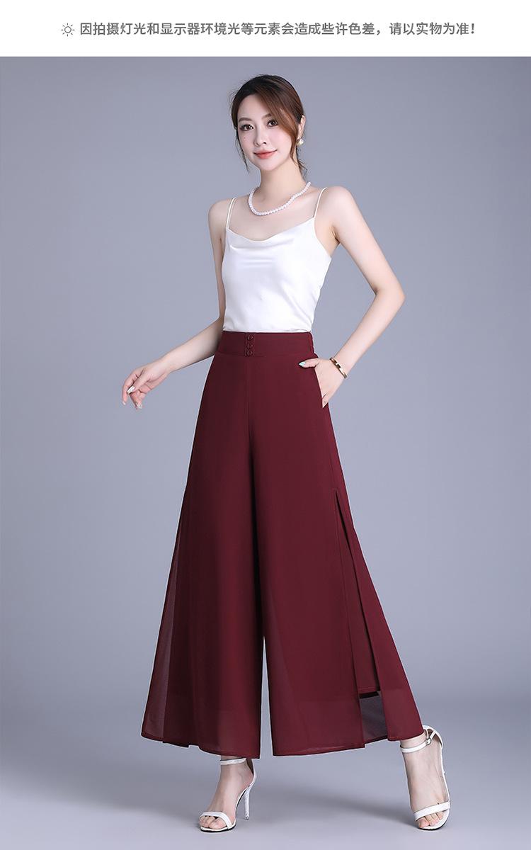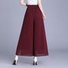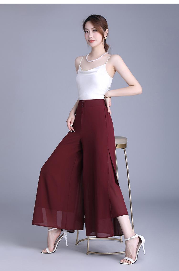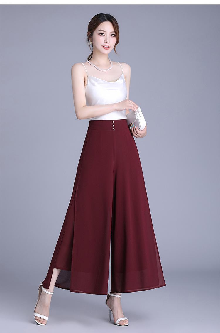 Pantalones de Pierna Ancha con Abertura para Mujer 2025 Nuevo Verano Culottes Drapeados de Chifón de Nueve Puntos para Mujer de Cintura Alta Sueltos con Aspecto Adelgazante