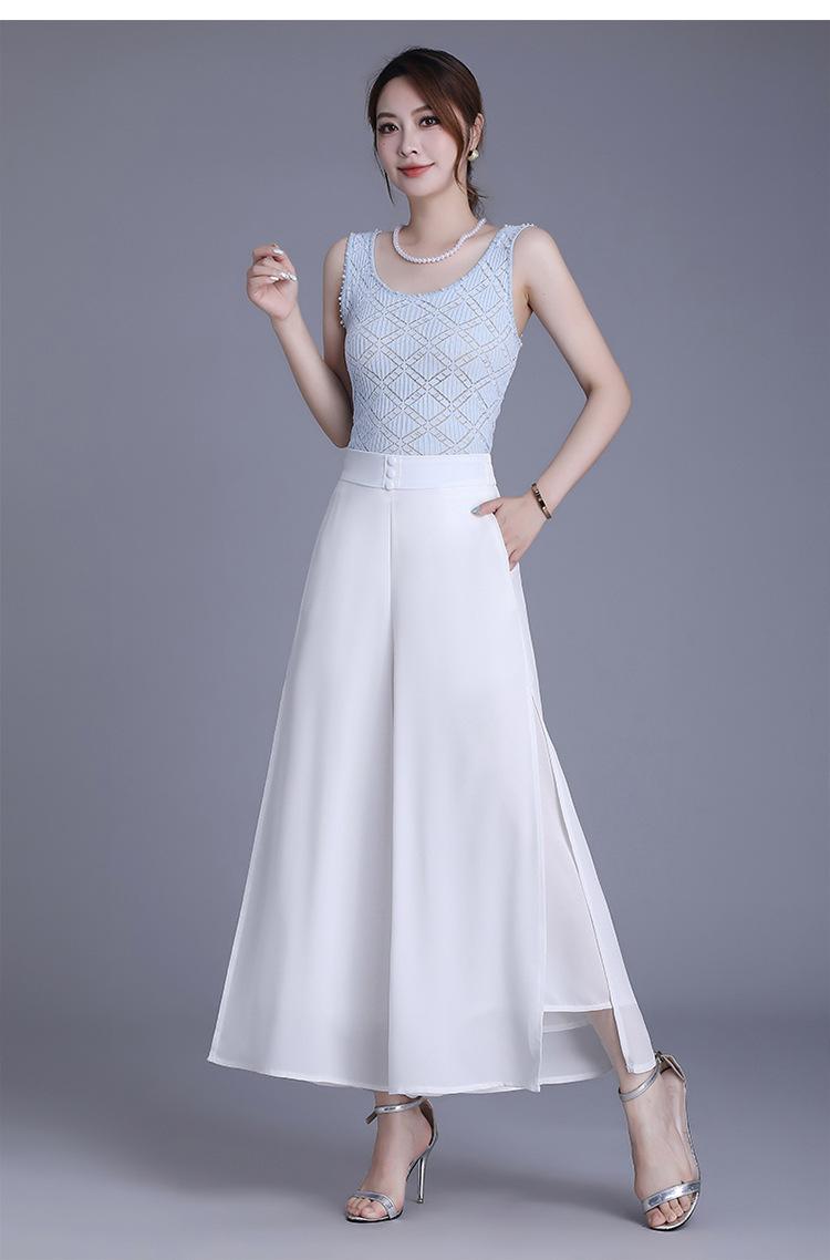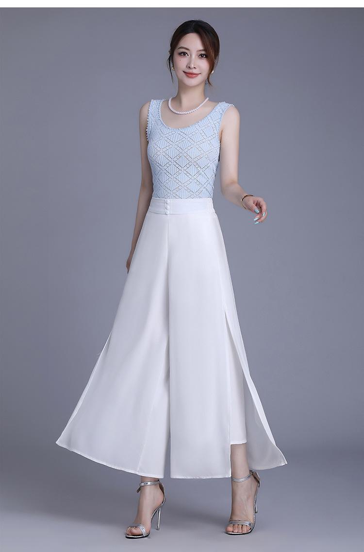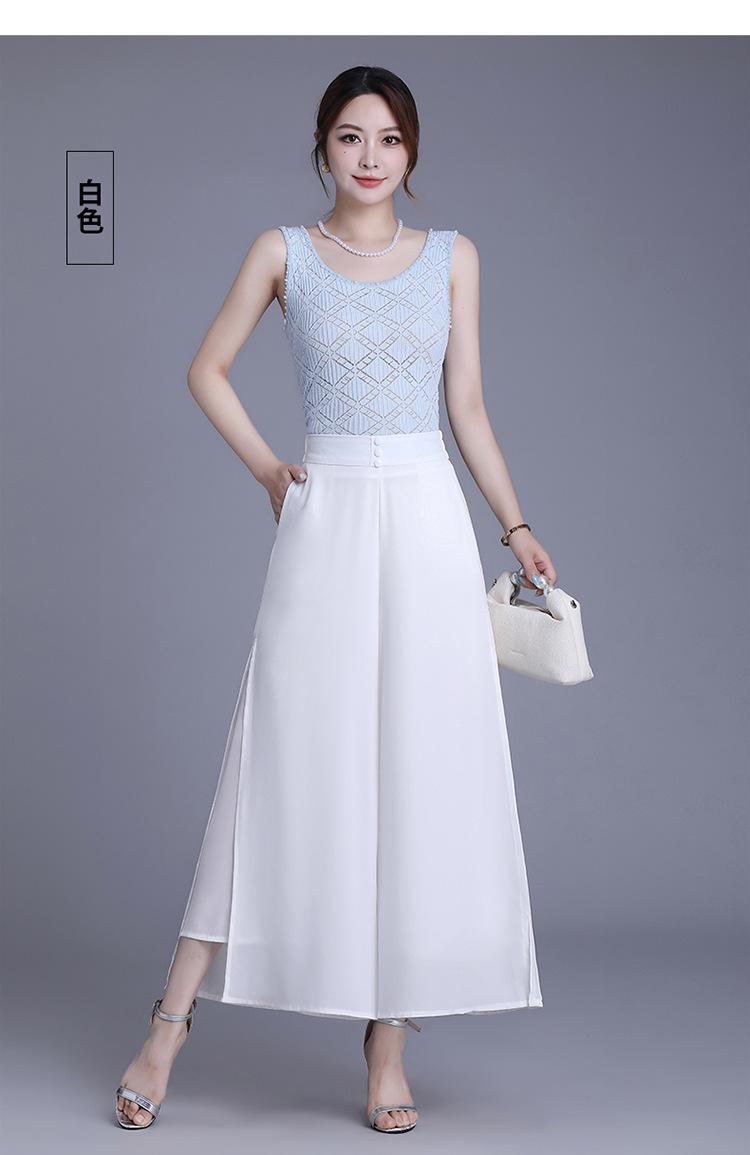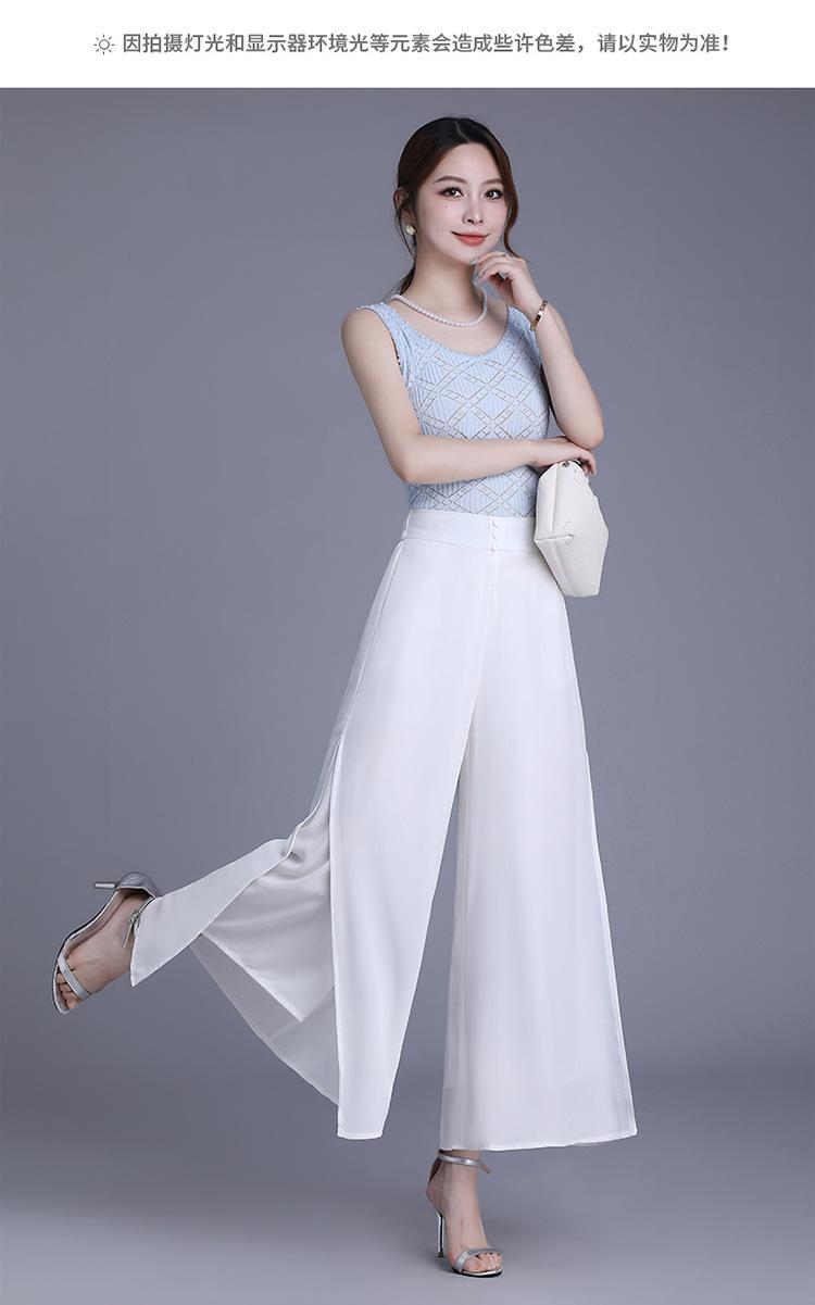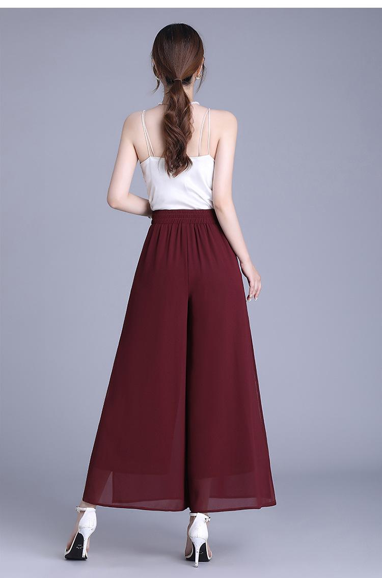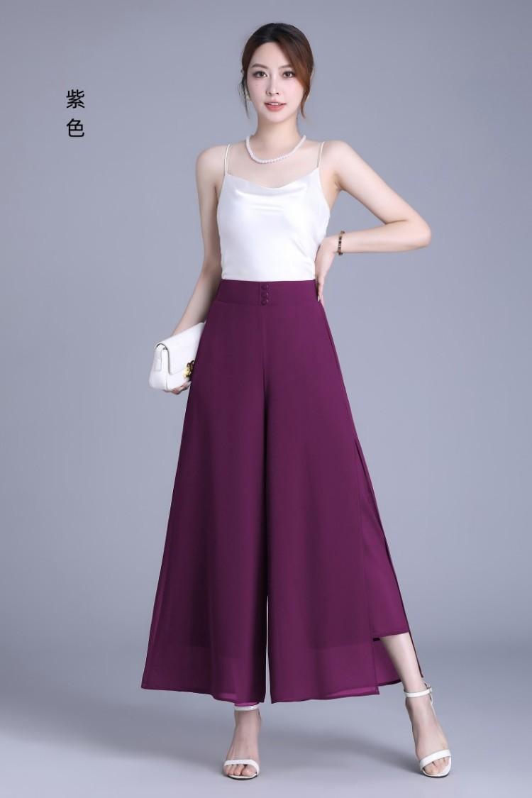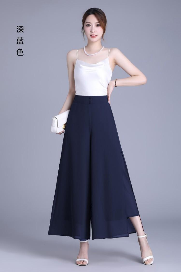 Pantalones de Pierna Ancha con Abertura para Mujer 2025 Nuevo Verano Culottes Drapeados de Chifón de Nueve Puntos para Mujer de Cintura Alta Sueltos con Aspecto Adelgazante