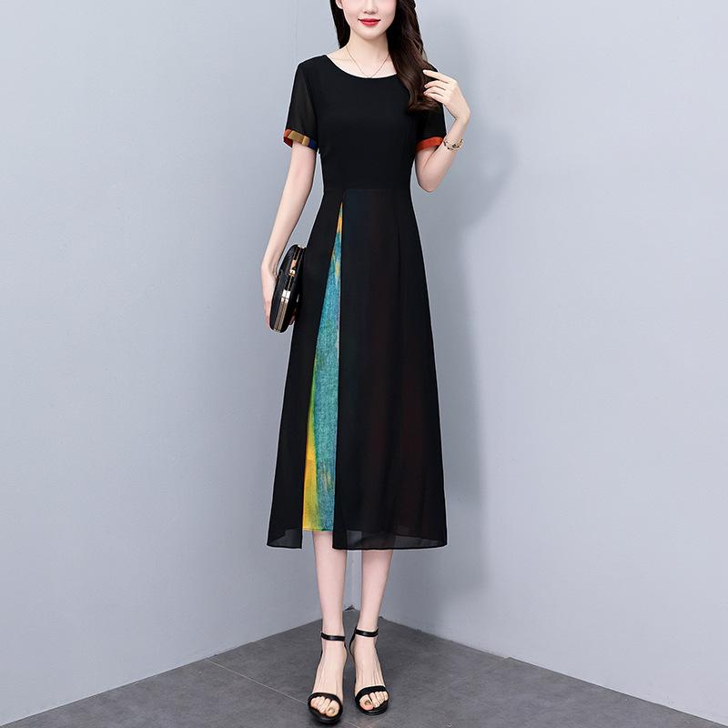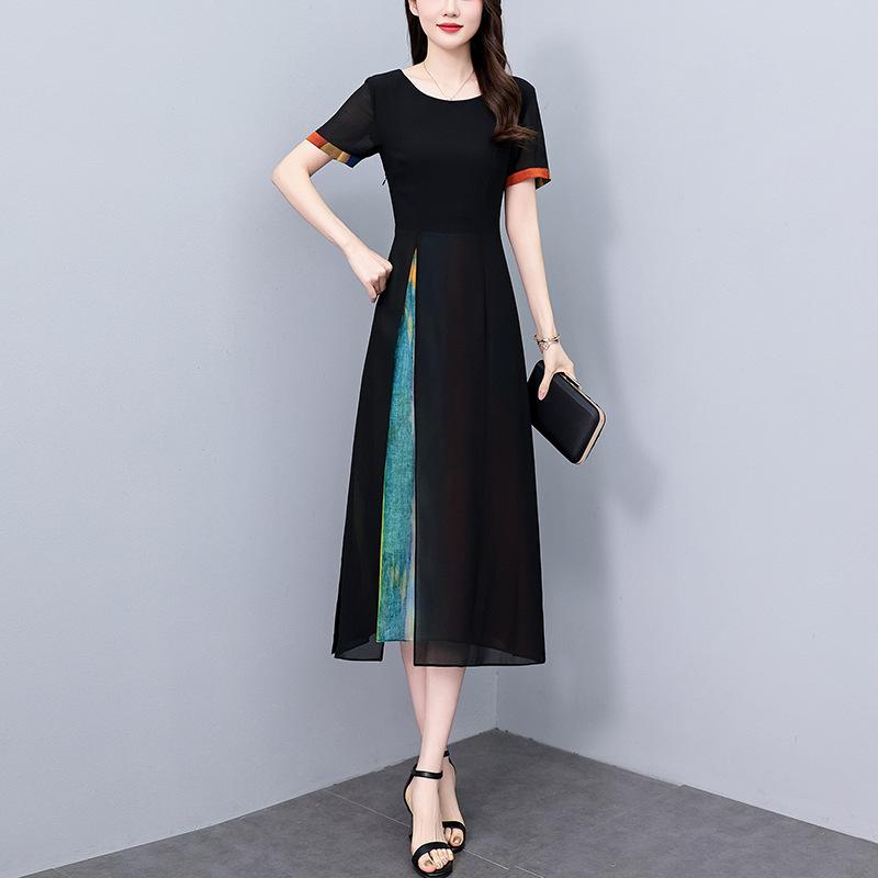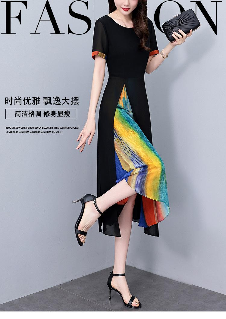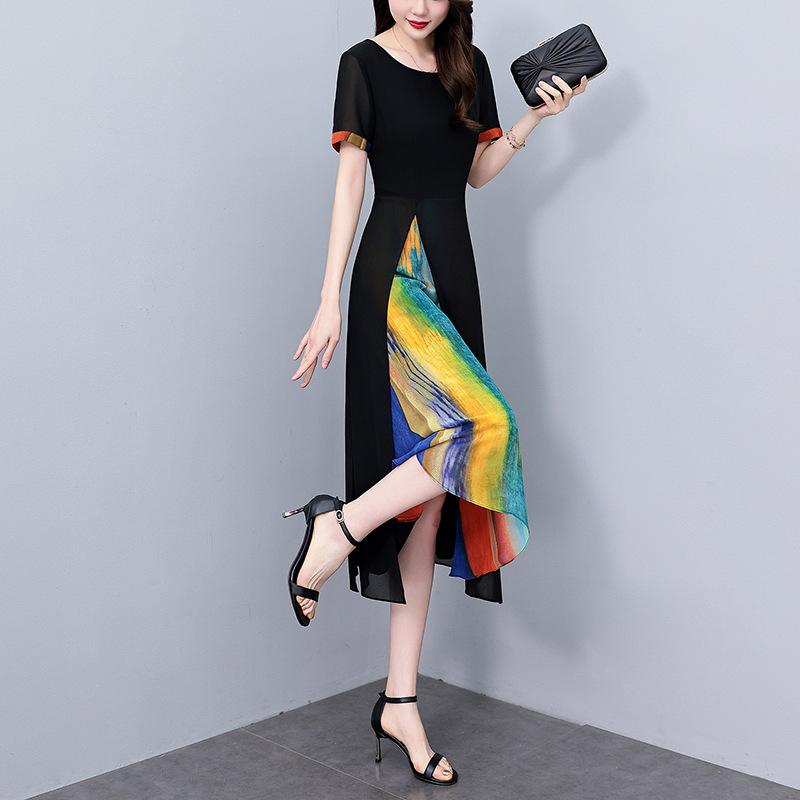 Vestido de gasa floral de talla grande para mujer, novedad de verano 2024, vestido largo a la moda para chica gordita que adelgaza la cintura y cubre el vientre.
