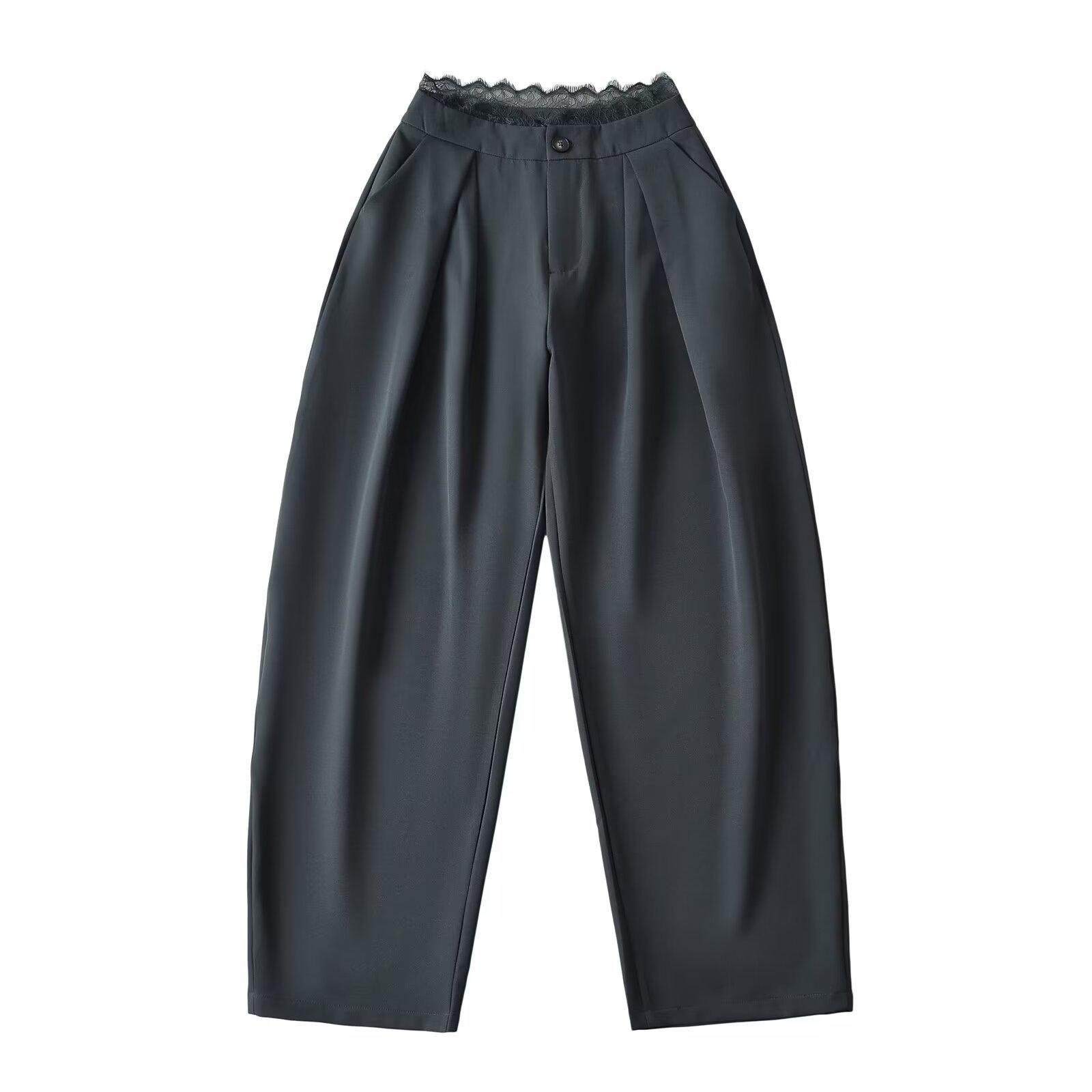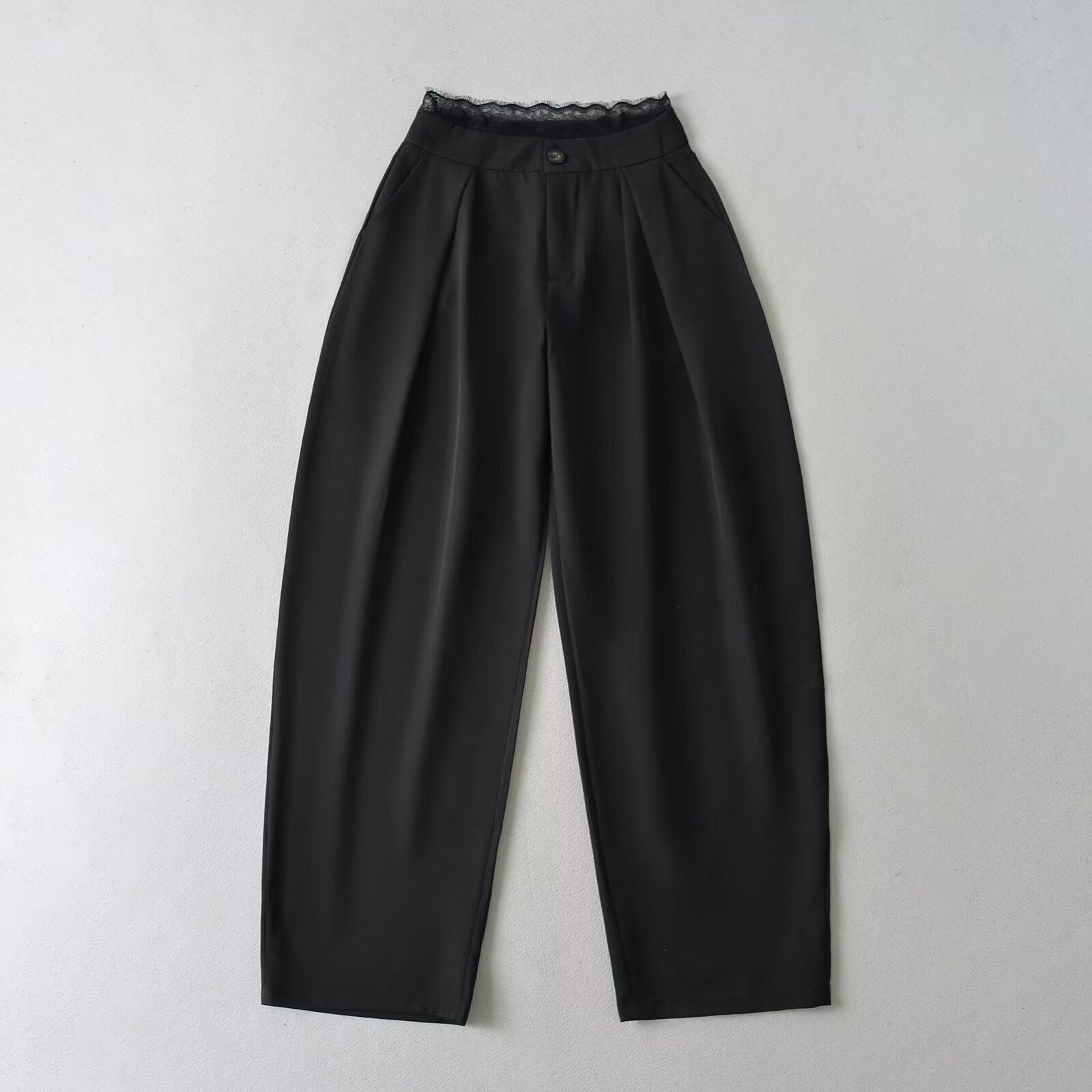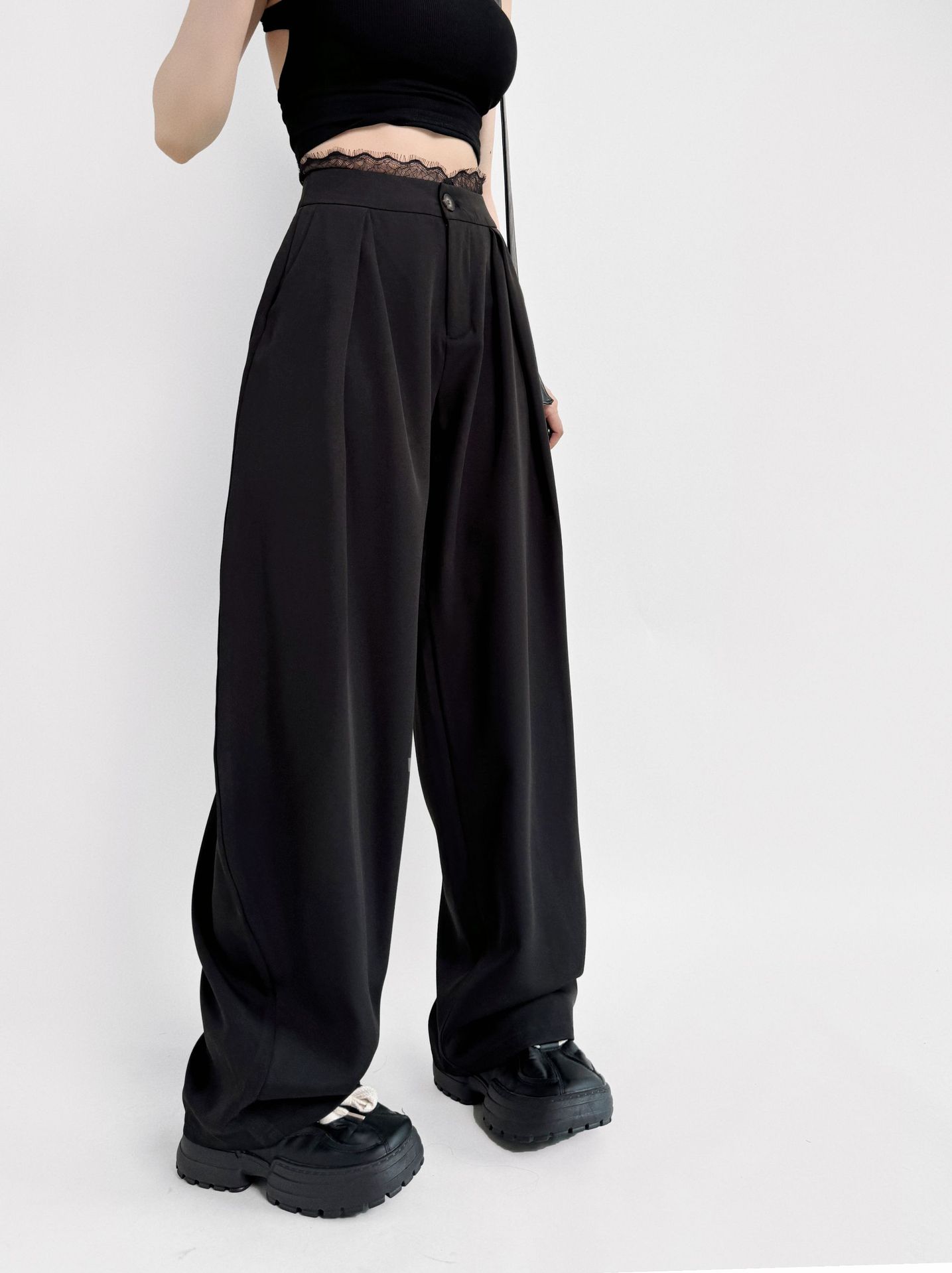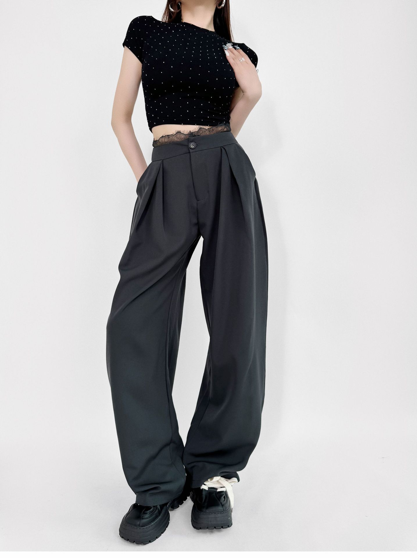 Pantalones de traje rectos de pierna ancha con encaje de estilo de diseño para mujer, otoño de 2024, nuevo estilo, pantalones holgados ajustados