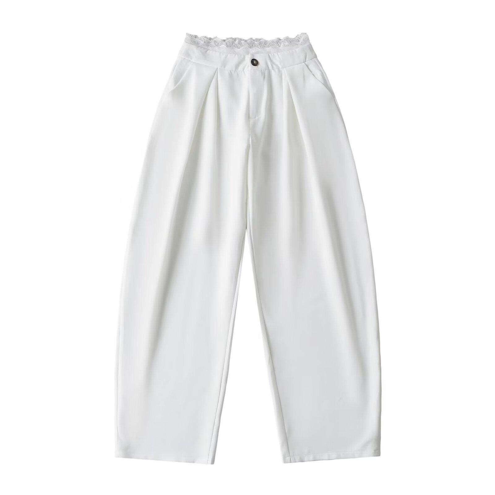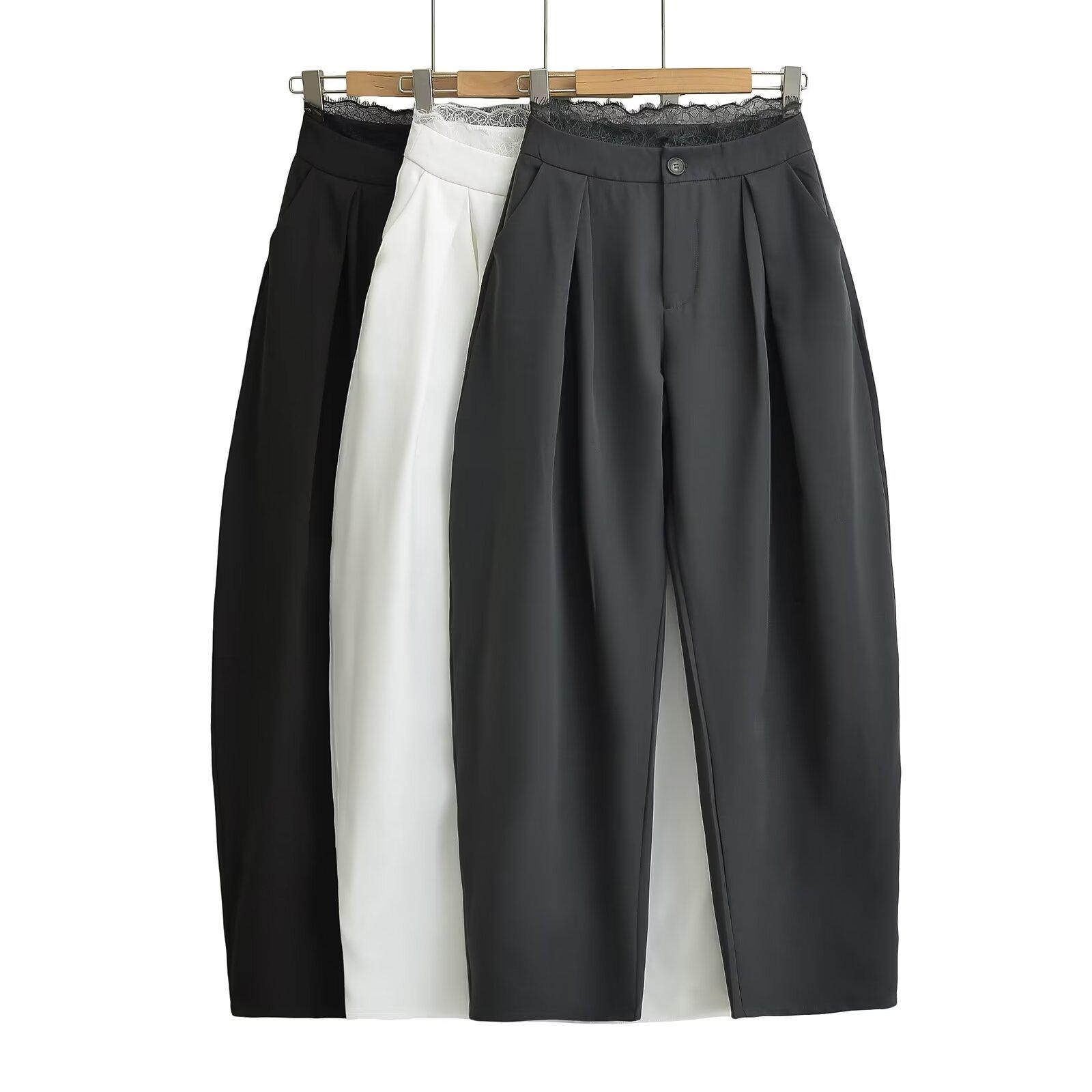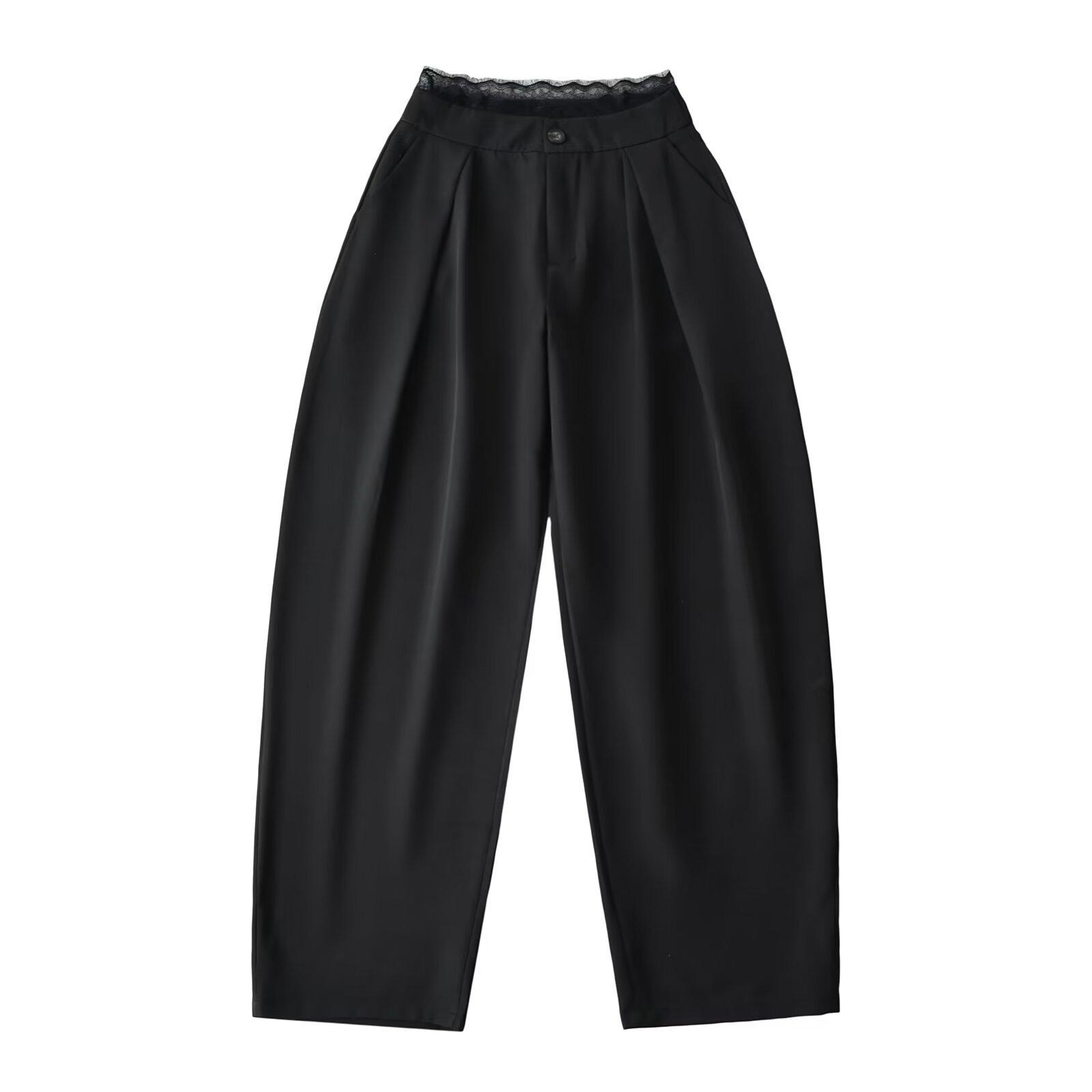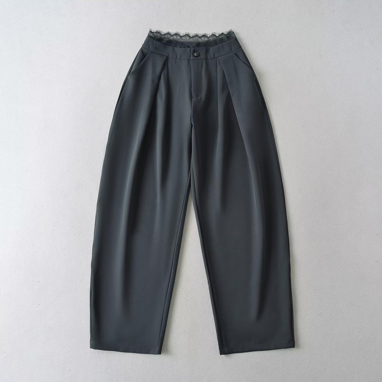 Pantalones de traje rectos de pierna ancha con encaje de estilo de diseño para mujer, otoño de 2024, nuevo estilo, pantalones holgados ajustados