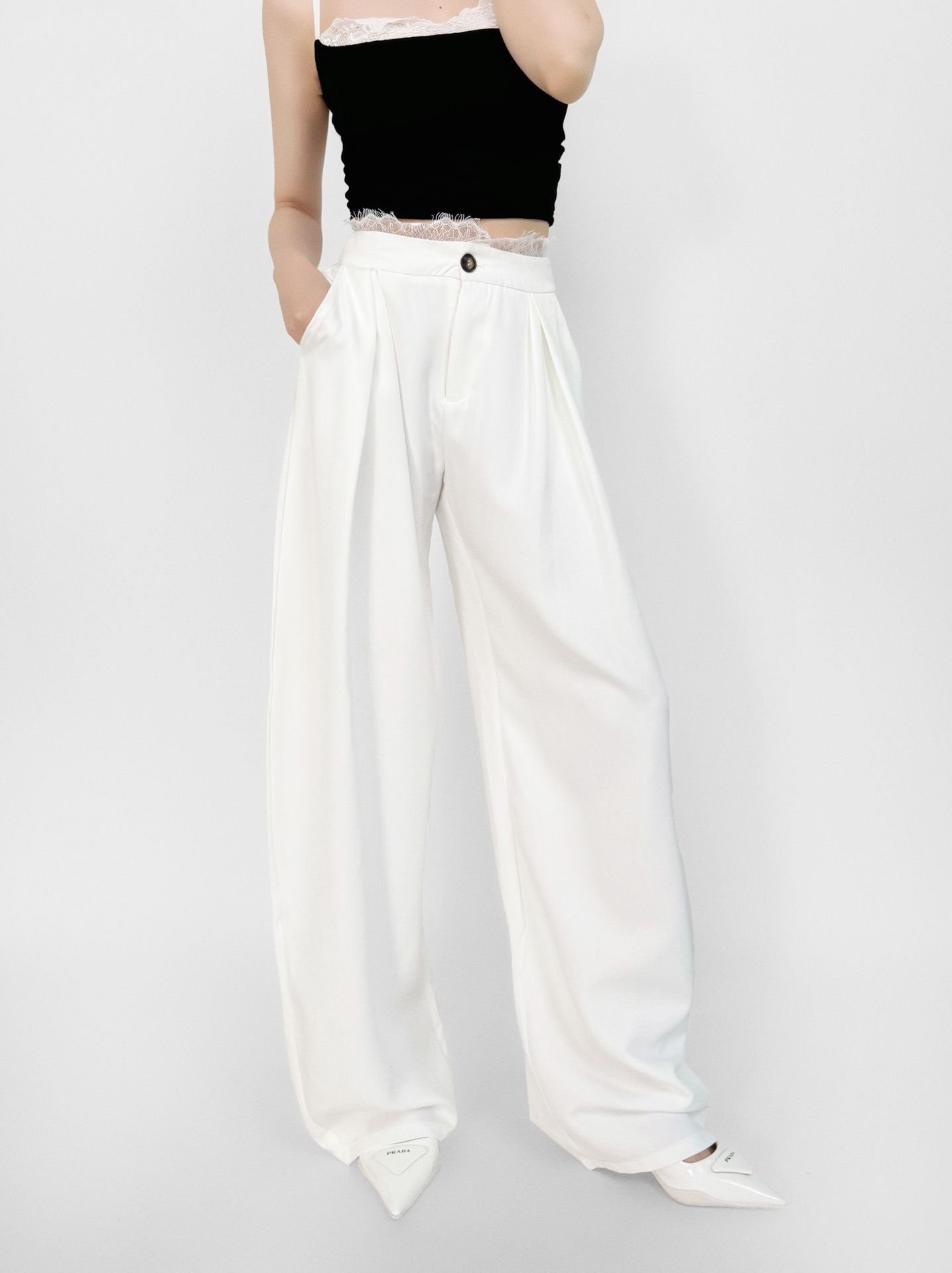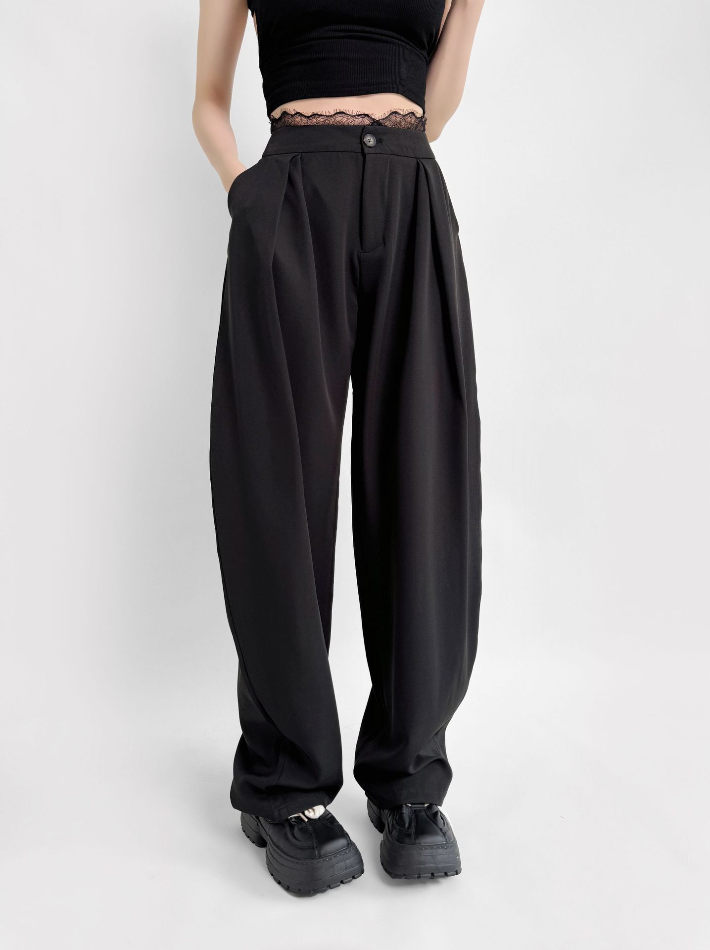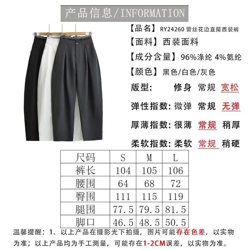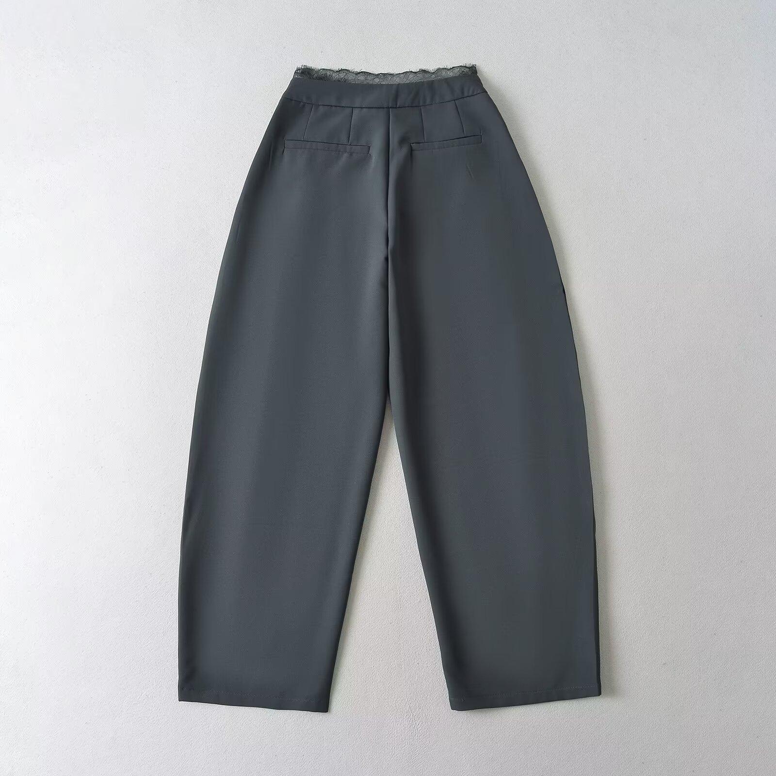 Pantalones de traje rectos de pierna ancha con encaje de estilo de diseño para mujer, otoño de 2024, nuevo estilo, pantalones holgados ajustados