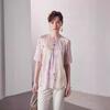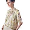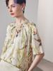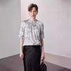 Camiseta de Manga Corta de Seda de Morera para Mujer 2025 Primavera y Verano Nuevo Estilo Nacional Estampado Chinoiserie Holgada Transpirable Top de Seda Satinada