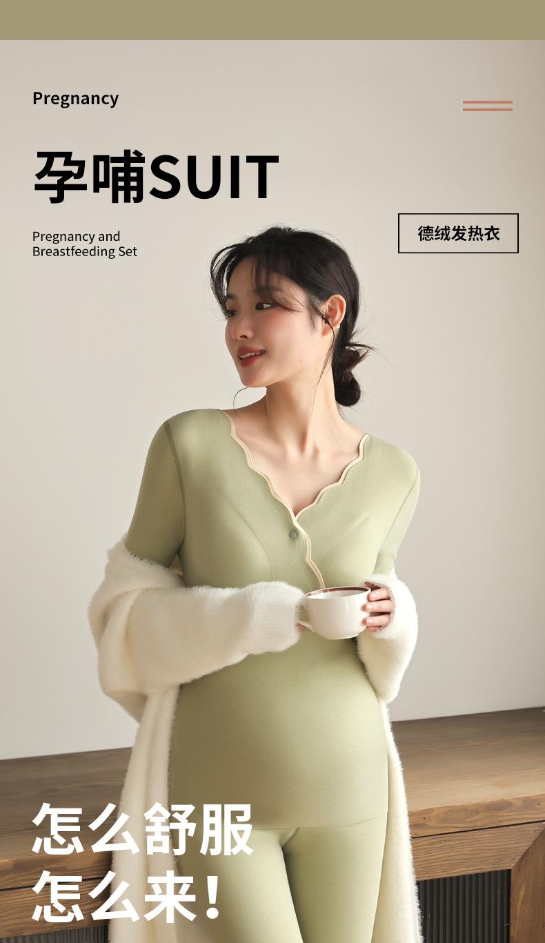 Ropa y pantalones de otoño para embarazadas, ropa interior térmica de terciopelo, pijamas de lactancia, ropa de luna gruesa con forro polar para posparto, otoño e invierno.