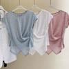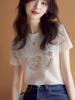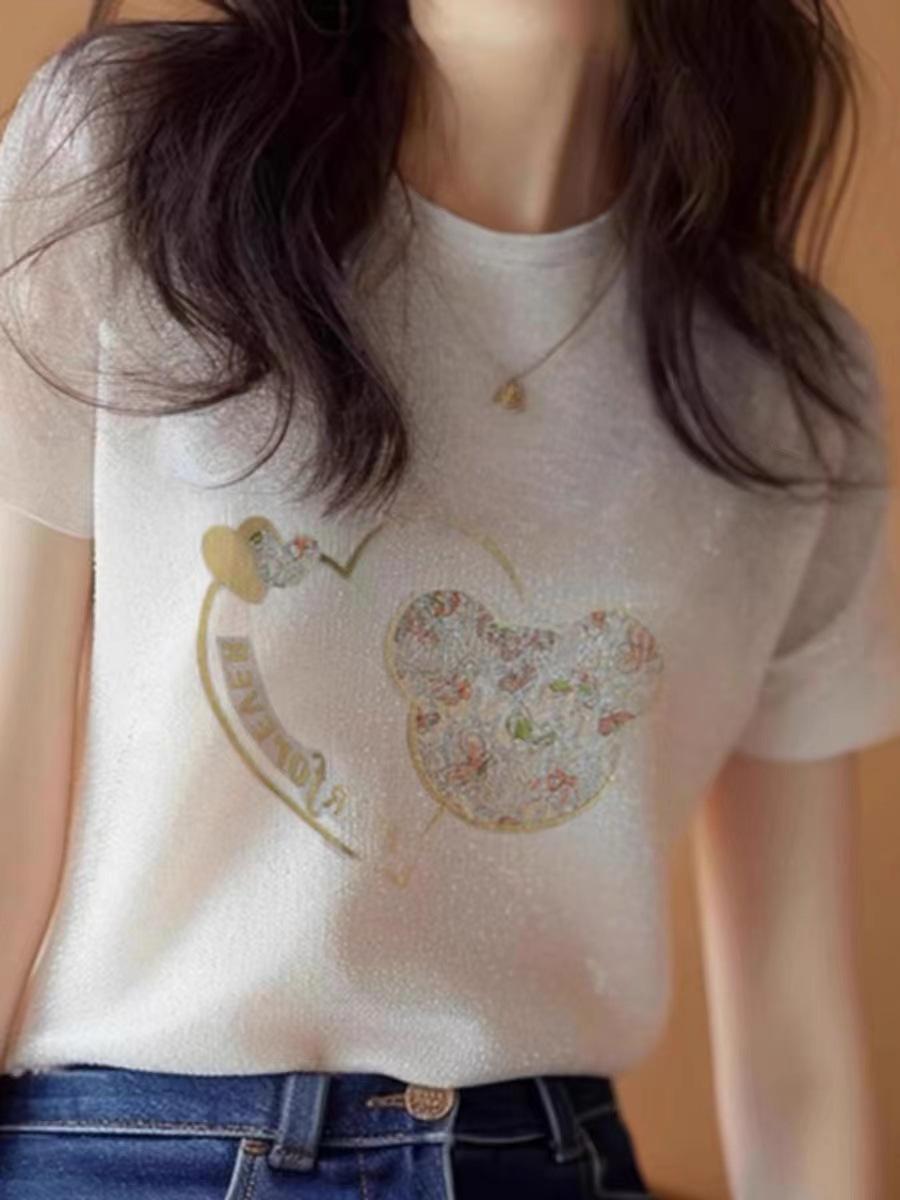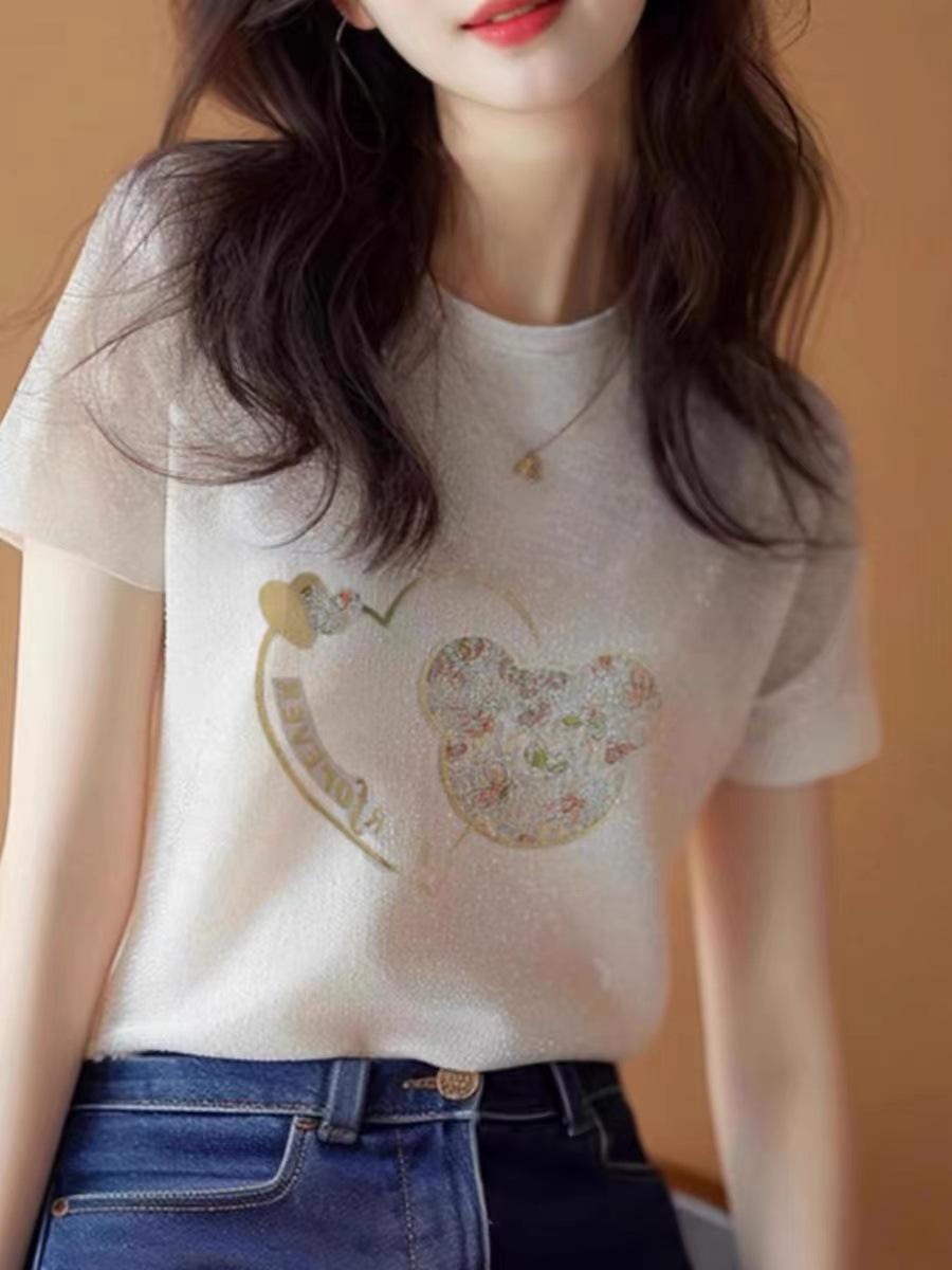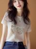 Camiseta blanca de manga corta estampada para mujer, novedad de verano 2024, camiseta sencilla con hombros descubiertos y diseño Sense Top