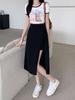 Falda de mujer otoño 2024 negra talla grande chica gordita cintura alta adelgazante abertura lateral longitud media falda de línea A falda de cadera