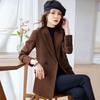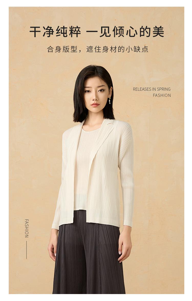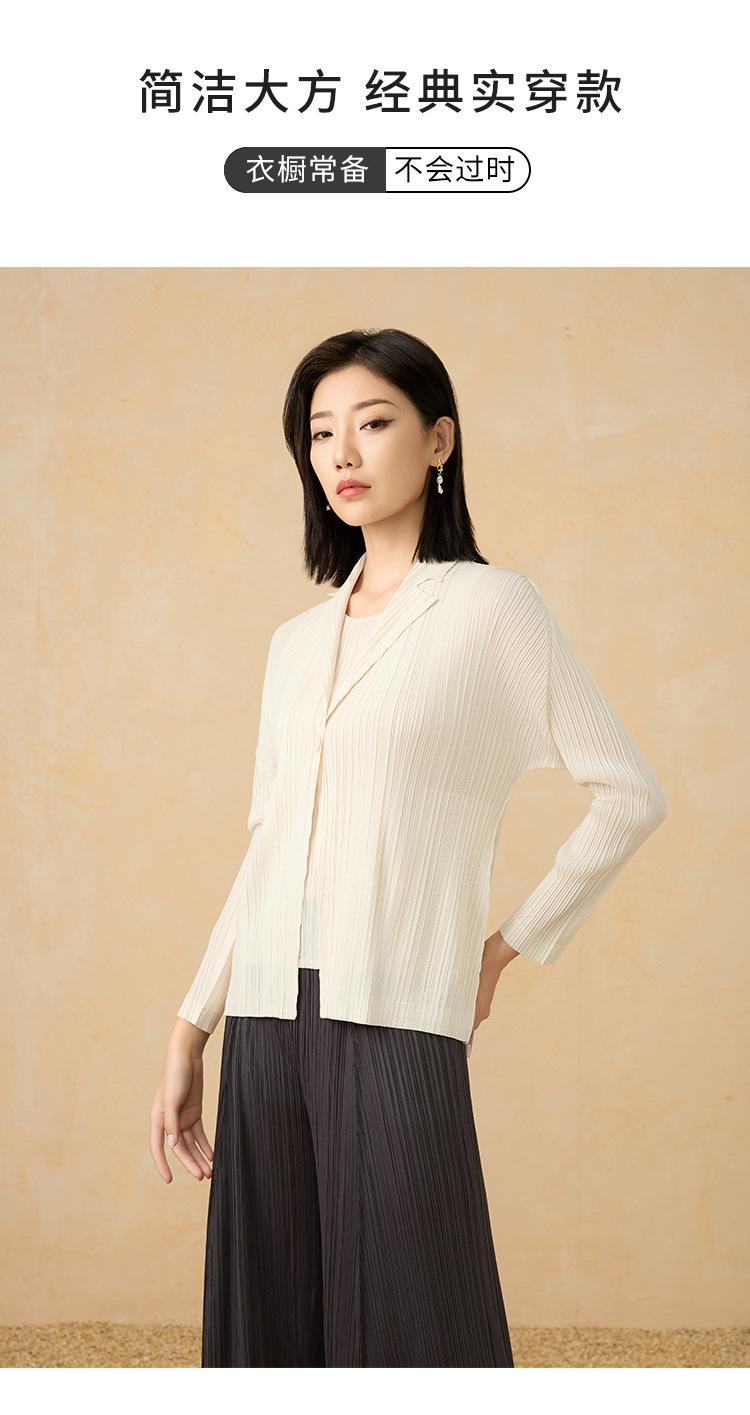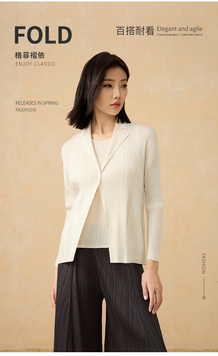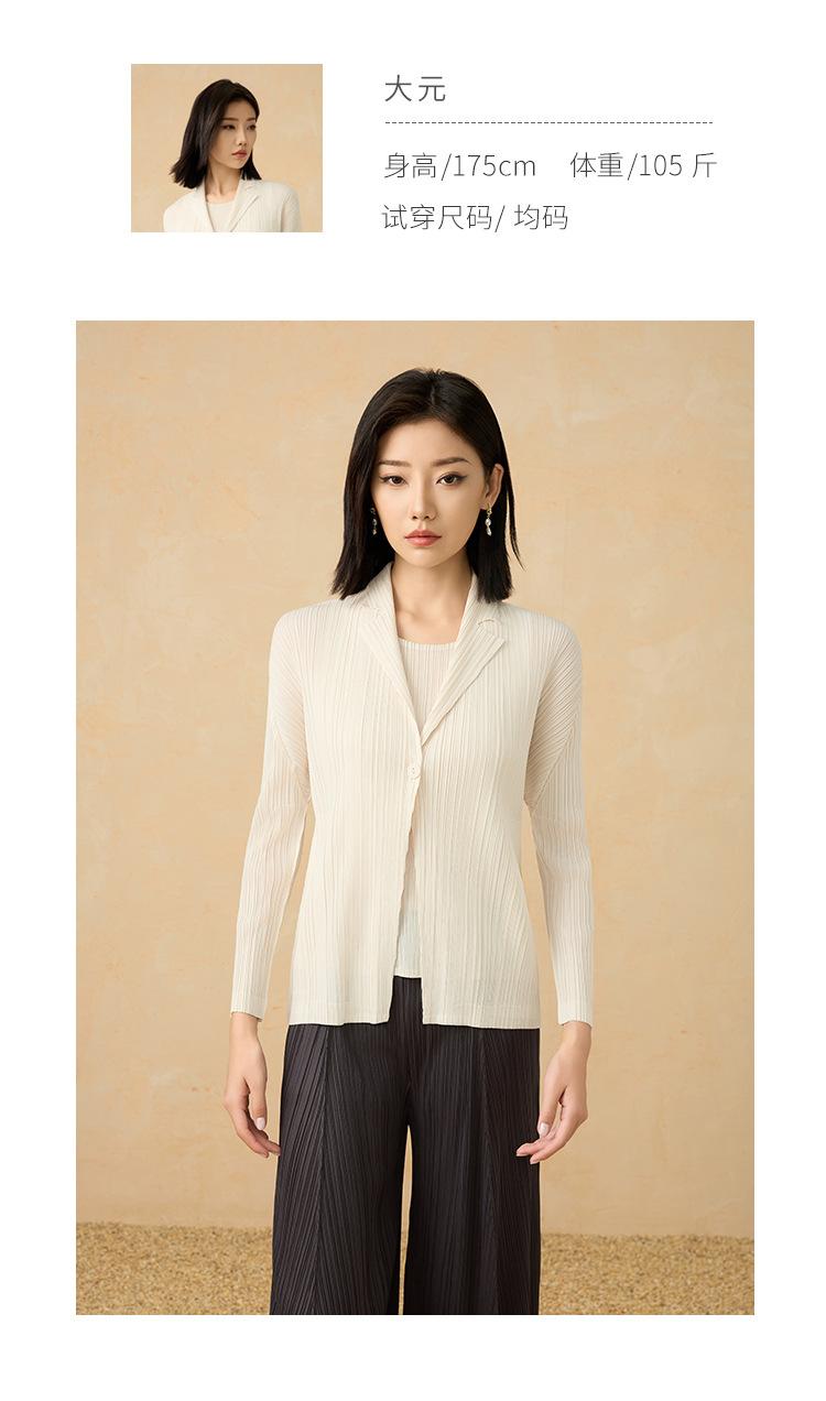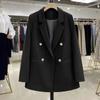 Chaqueta de Traje de Manga Larga 2025 Nueva Color Puro Holgada Casual Versátil Ropa de Trabajo Ligeramente Gorda Reductora de Edad Top Plisado para Mujer