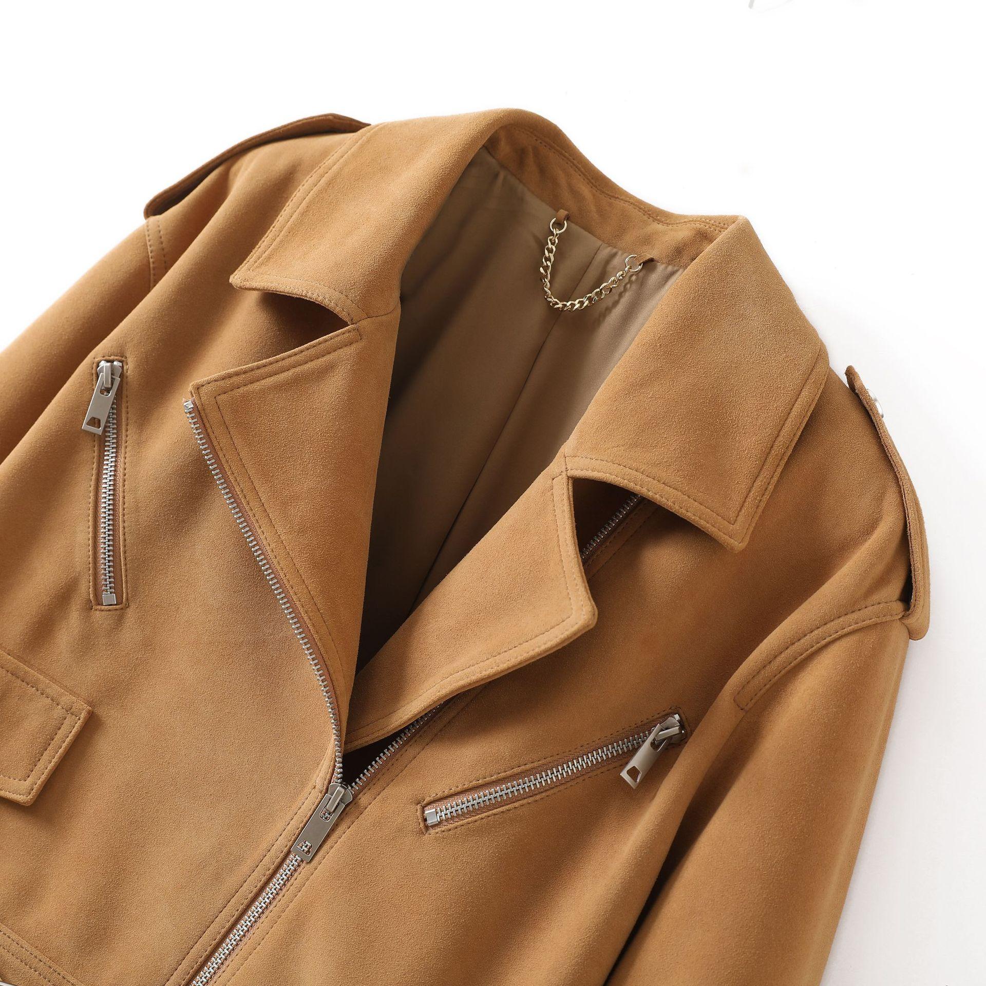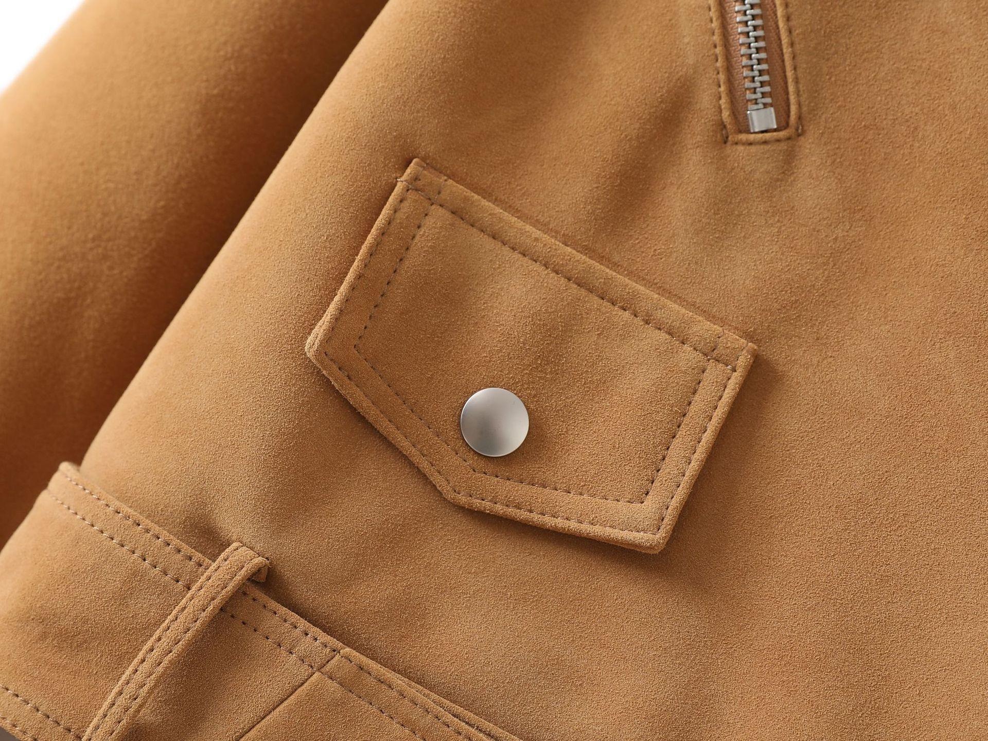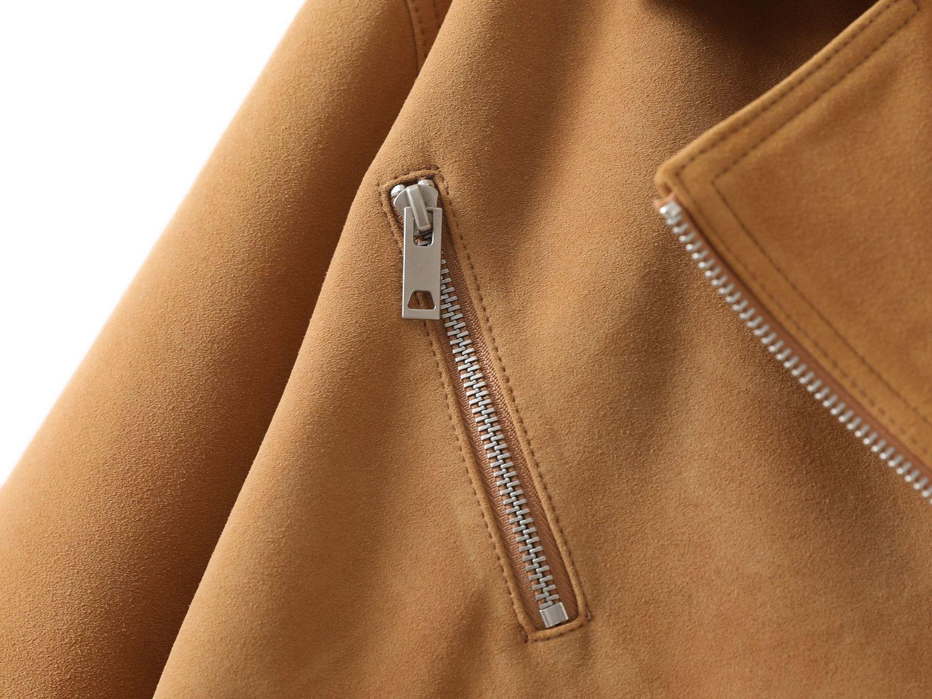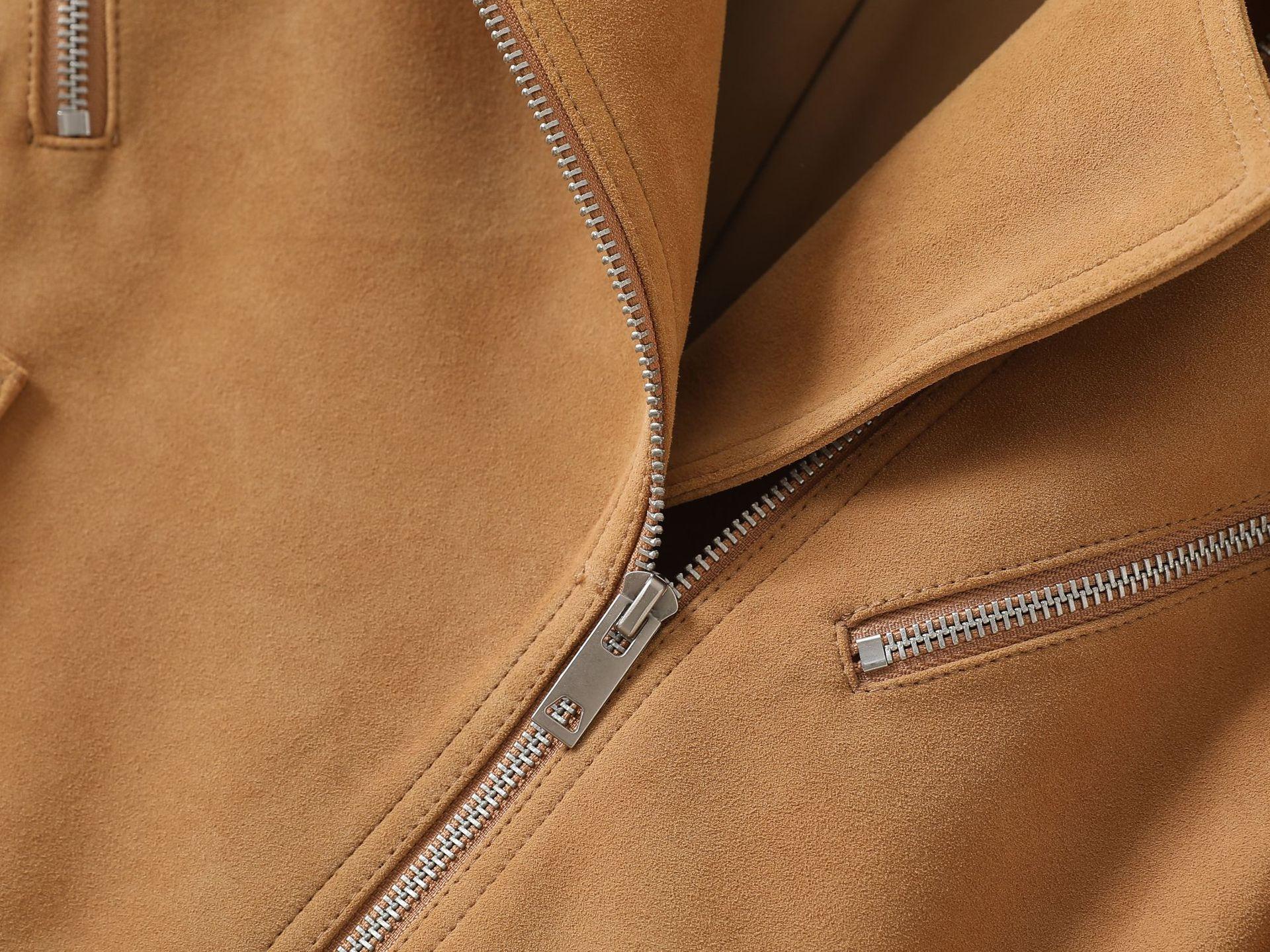 Chaqueta de Cuero Genuino 4162 Otoño Nuevo Gamuza de Piel de Cabra Maillard Cremallera de Gama Alta Versátil Chaqueta Corta Top