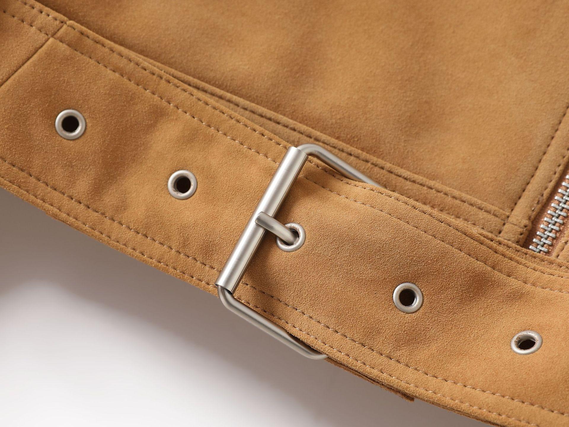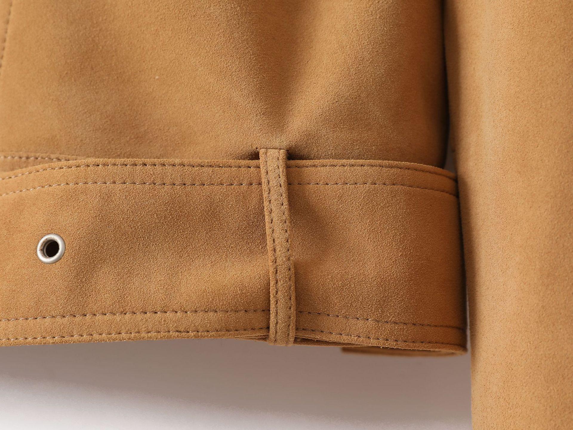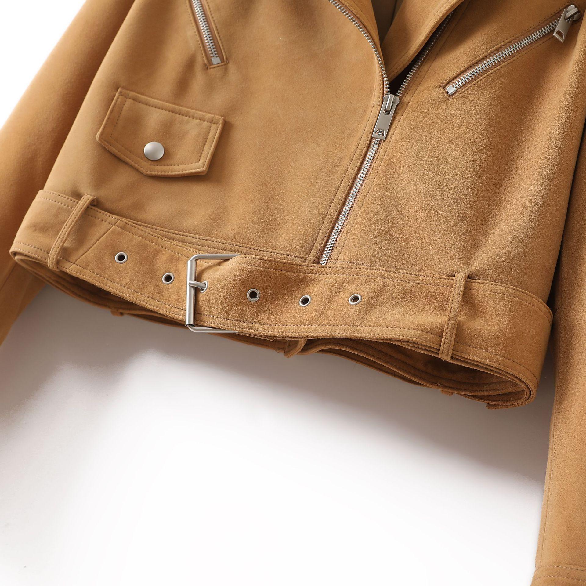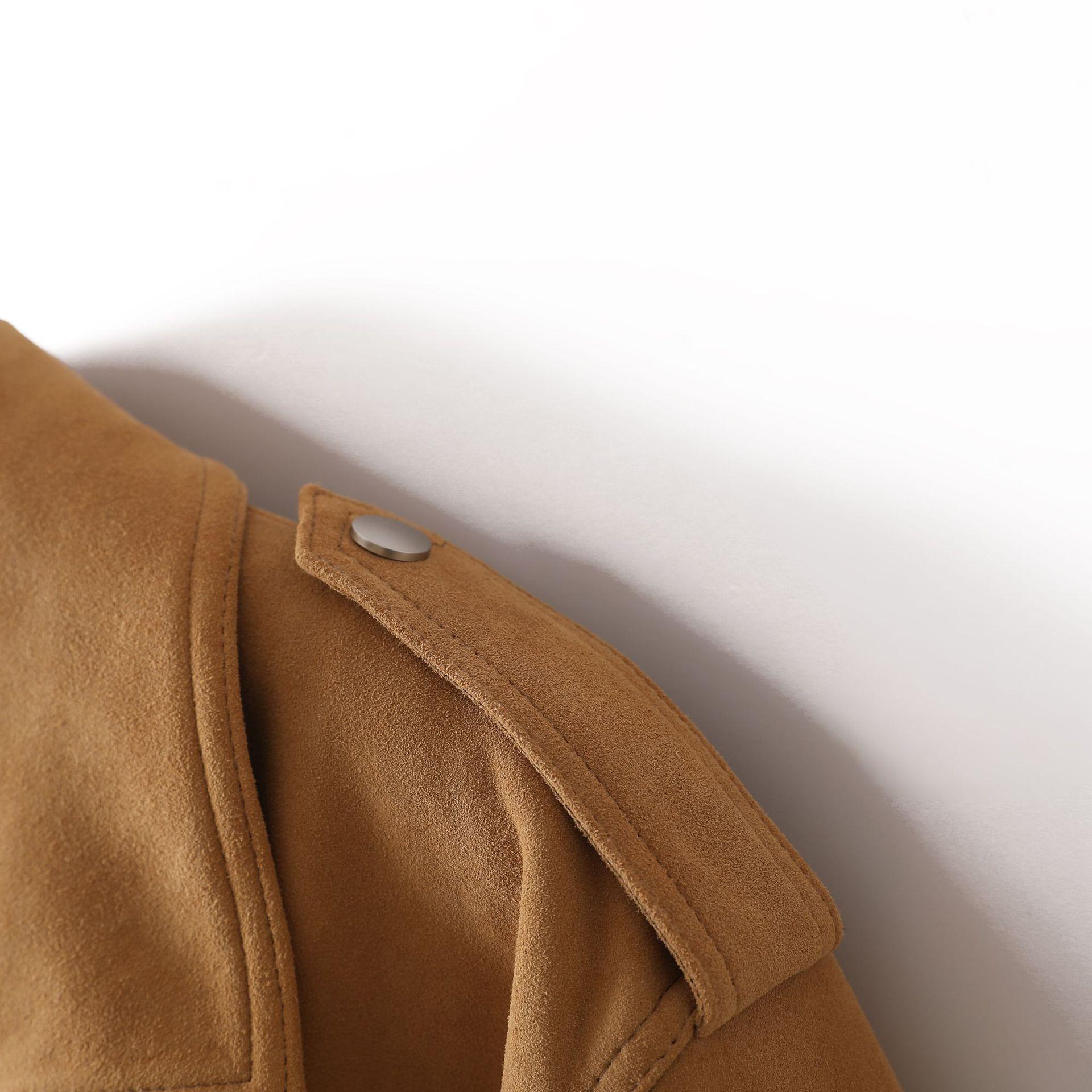 Chaqueta de Cuero Genuino 4162 Otoño Nuevo Gamuza de Piel de Cabra Maillard Cremallera de Gama Alta Versátil Chaqueta Corta Top
