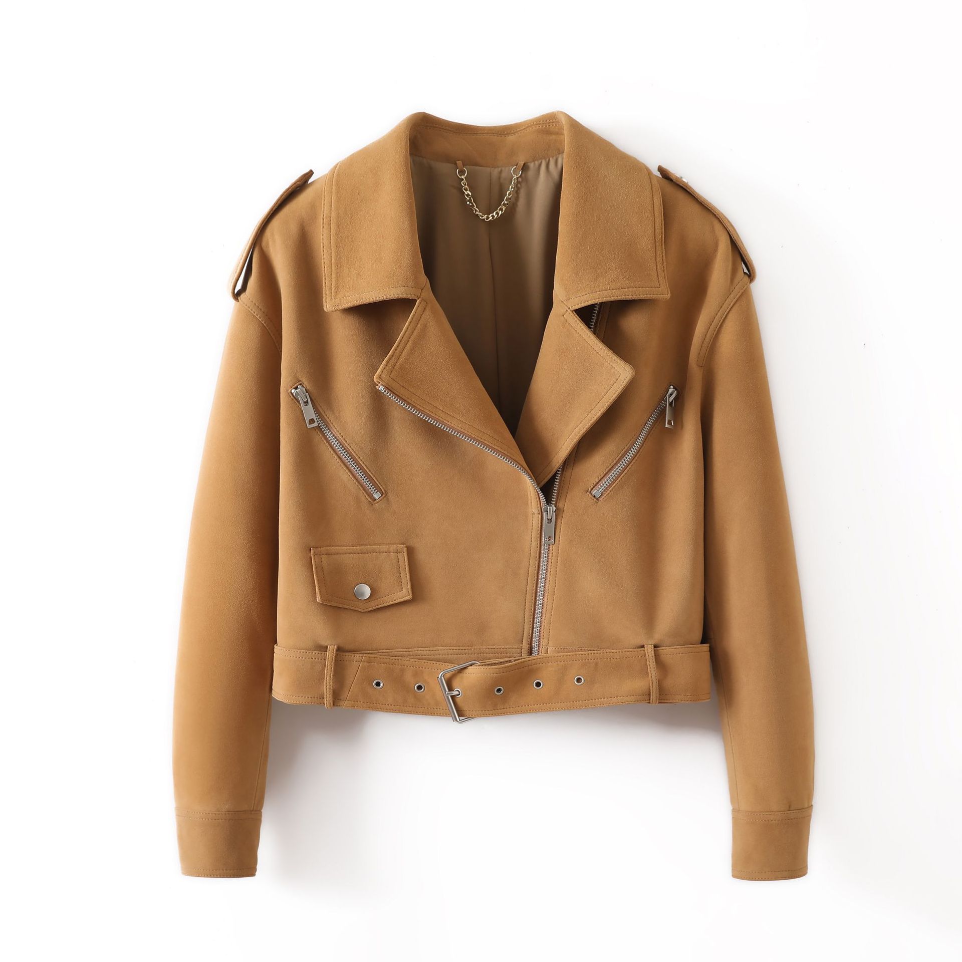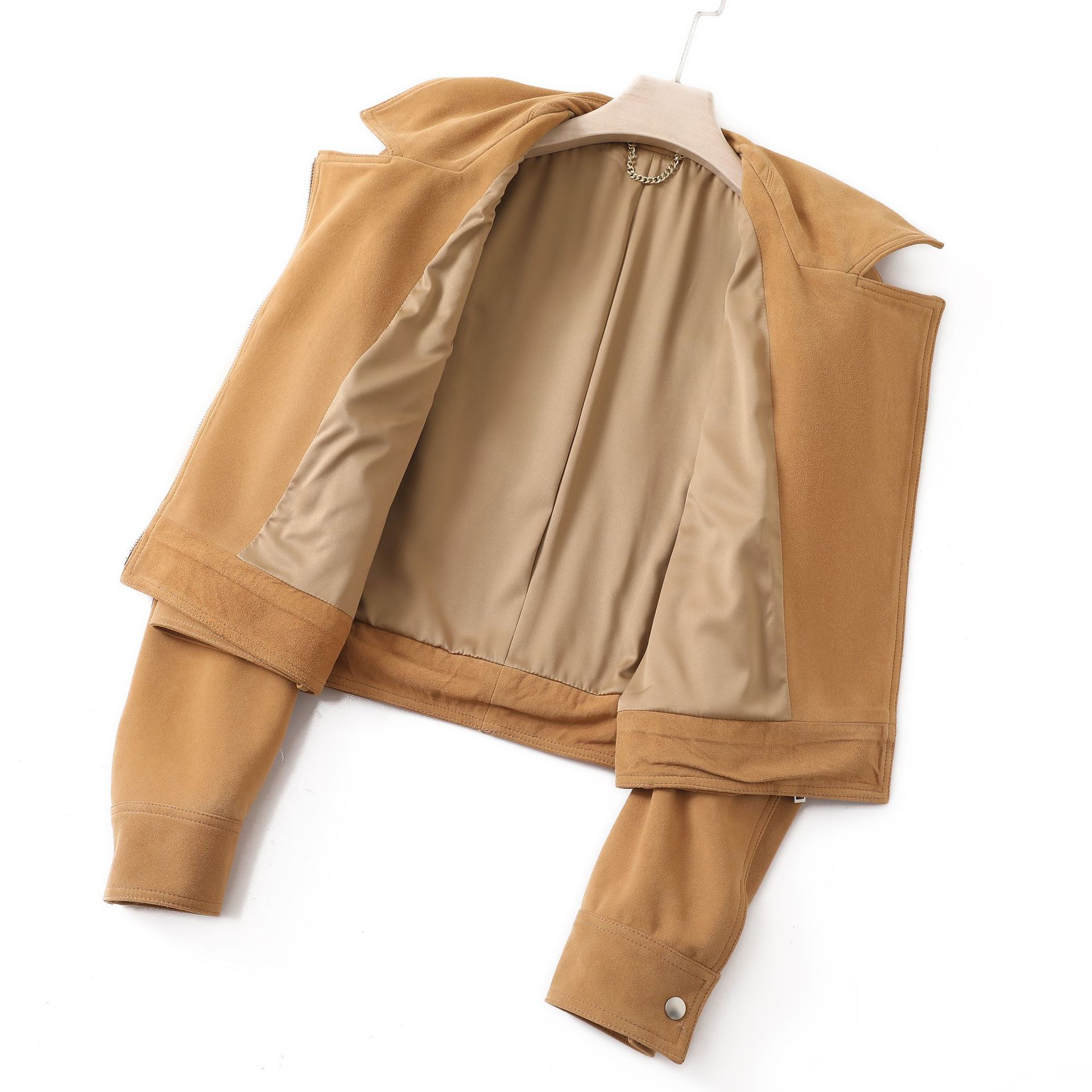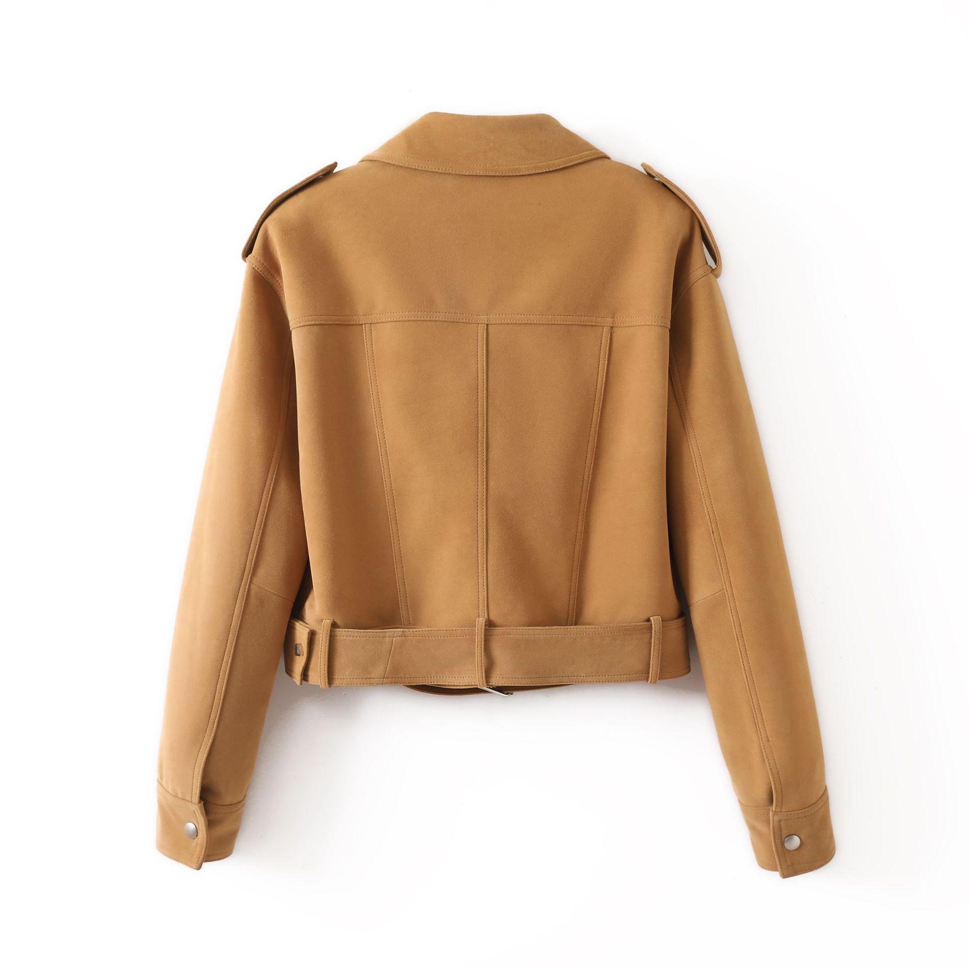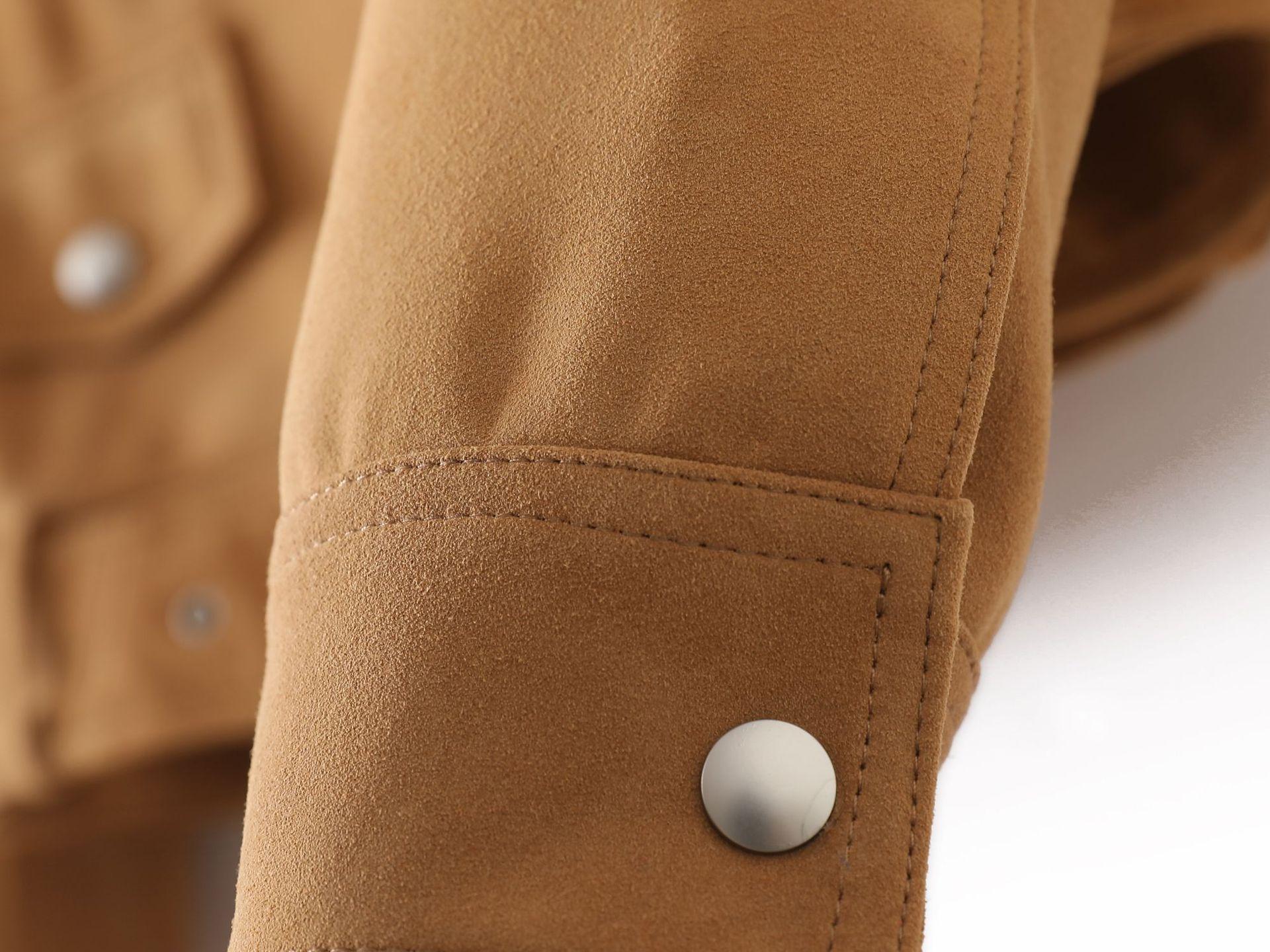 Chaqueta de Cuero Genuino 4162 Otoño Nuevo Gamuza de Piel de Cabra Maillard Cremallera de Gama Alta Versátil Chaqueta Corta Top