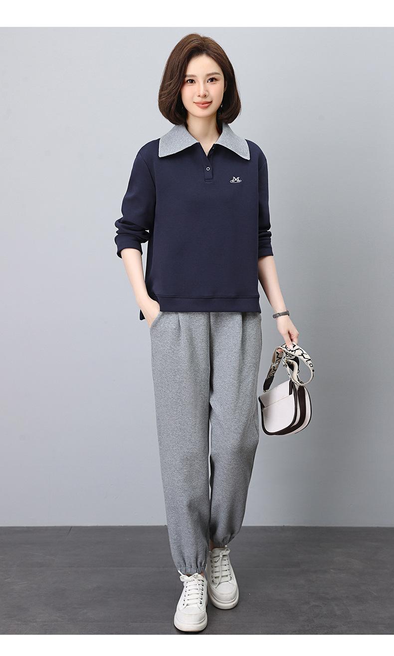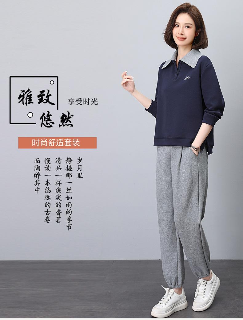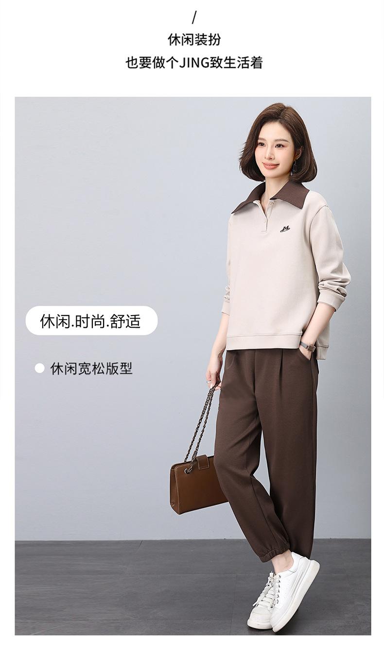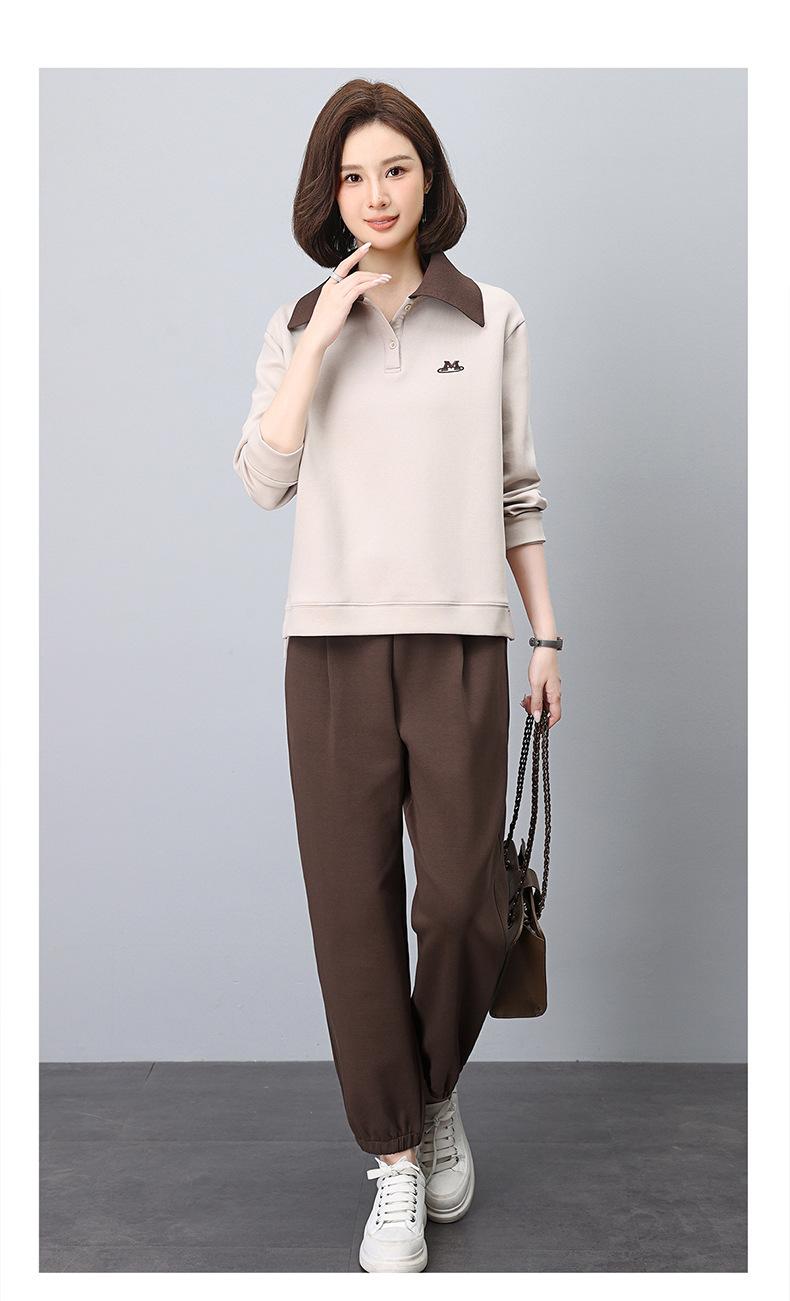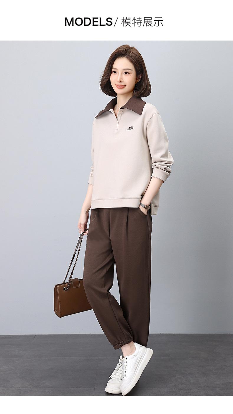 Vestido de Madre Otoñal Estilo Occidental Traje Casual Nuevo Deportivo Pantalones Pierna Ancha Dos Piezas Ropa Deportiva Primavera y Otoño Sudadera Solapa