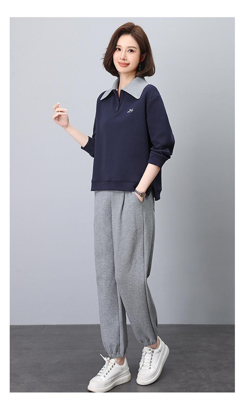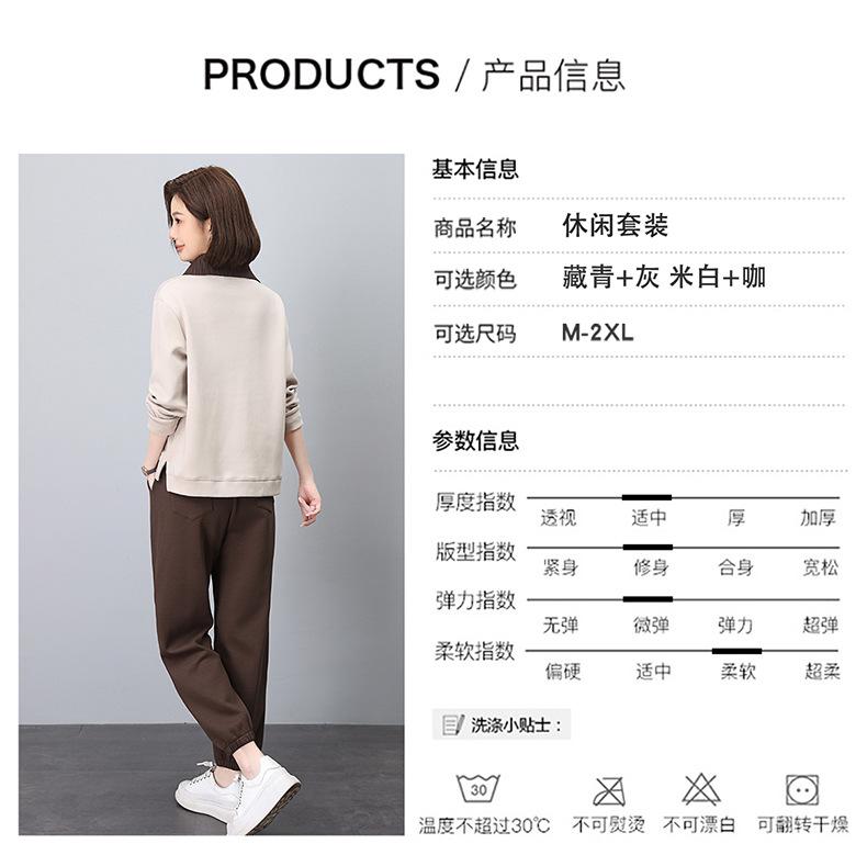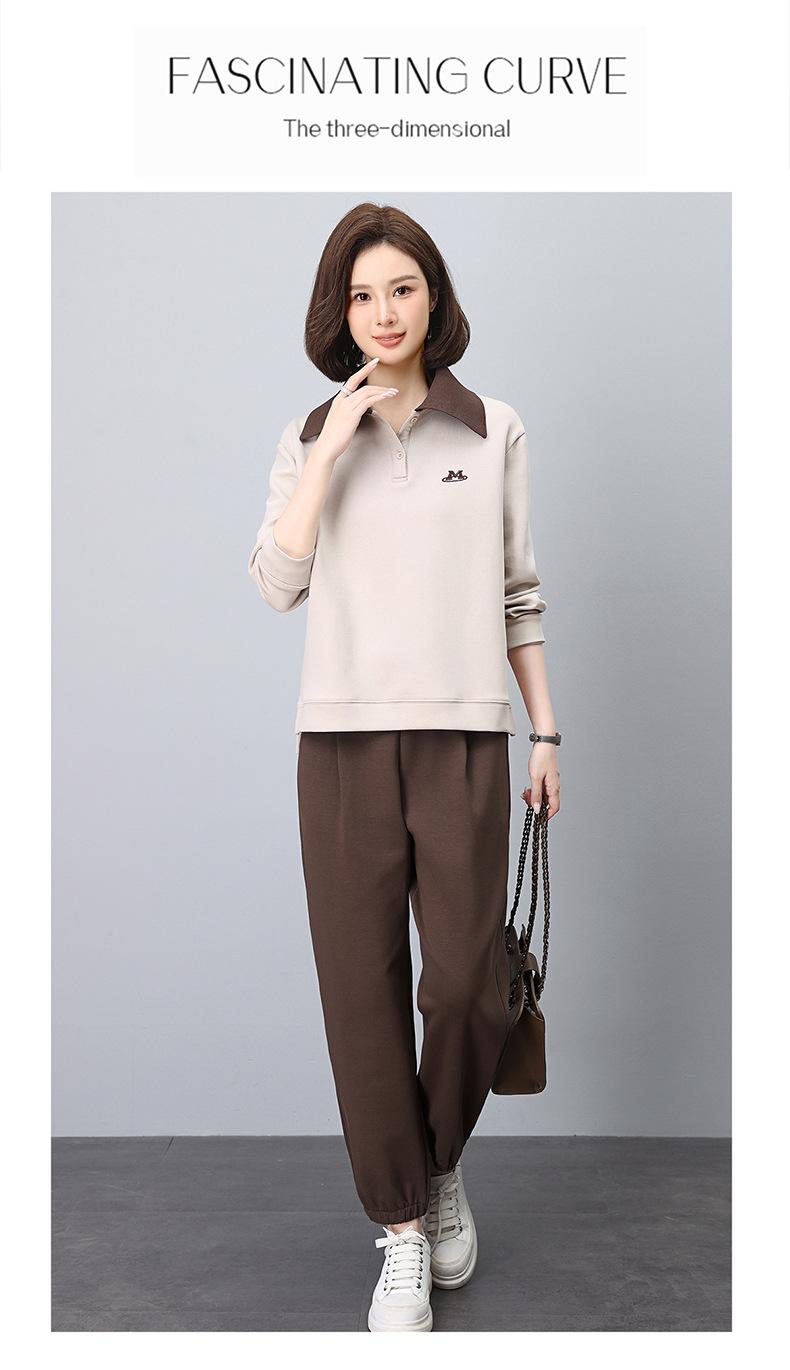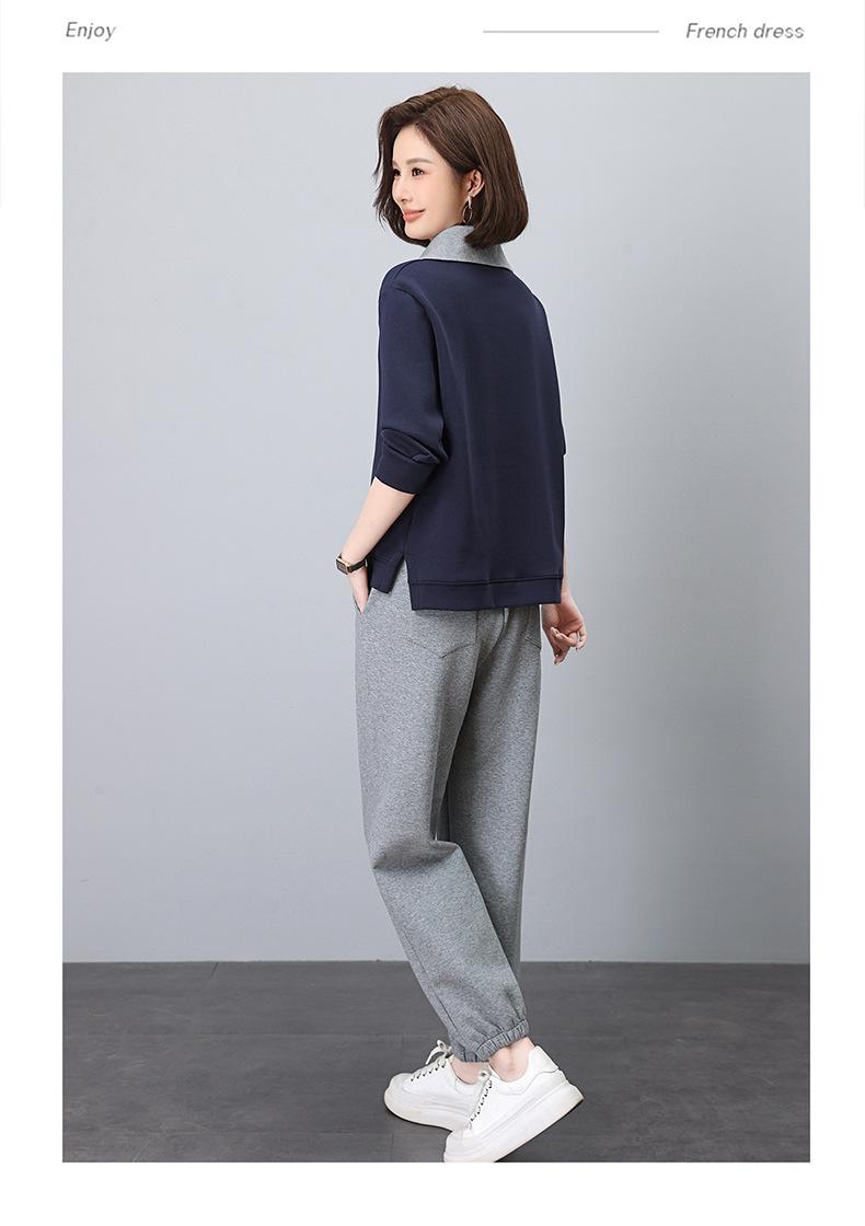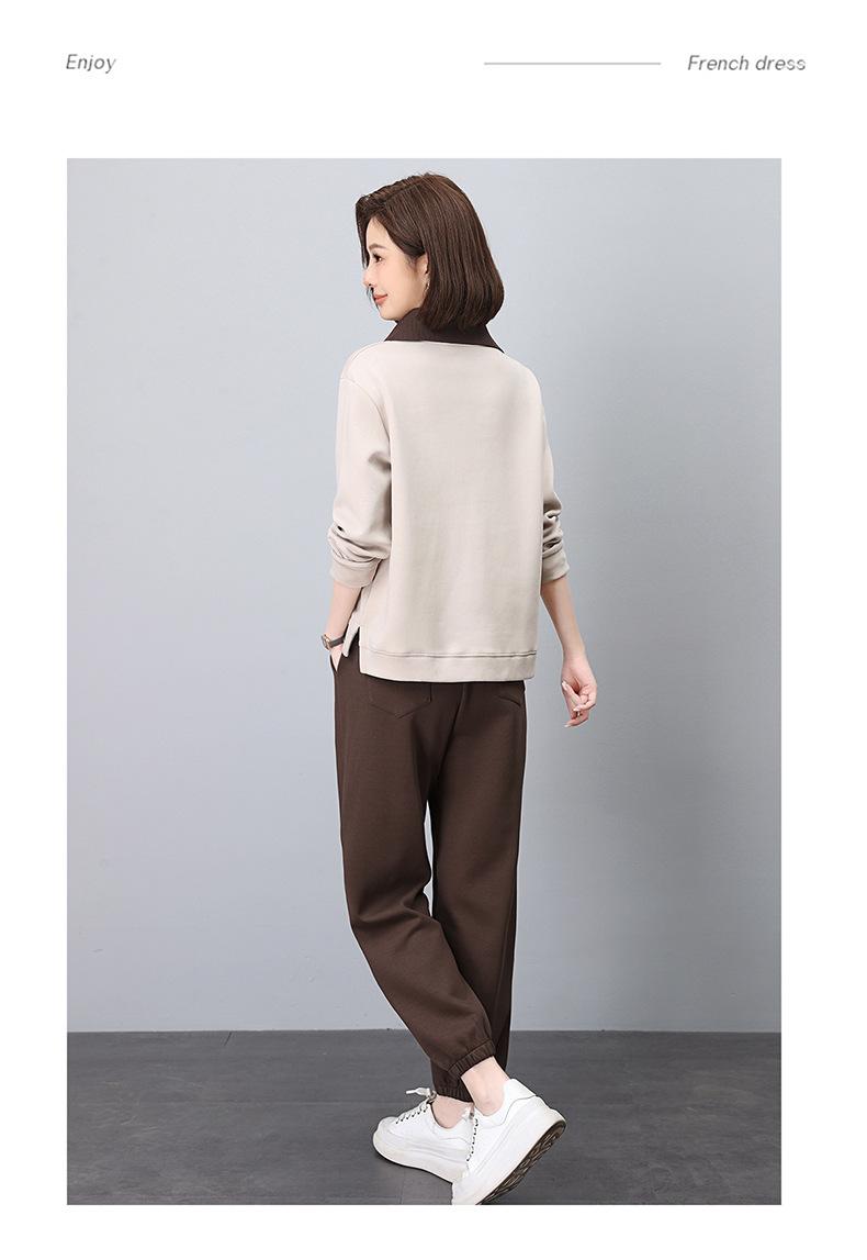 Vestido de Madre Otoñal Estilo Occidental Traje Casual Nuevo Deportivo Pantalones Pierna Ancha Dos Piezas Ropa Deportiva Primavera y Otoño Sudadera Solapa