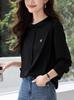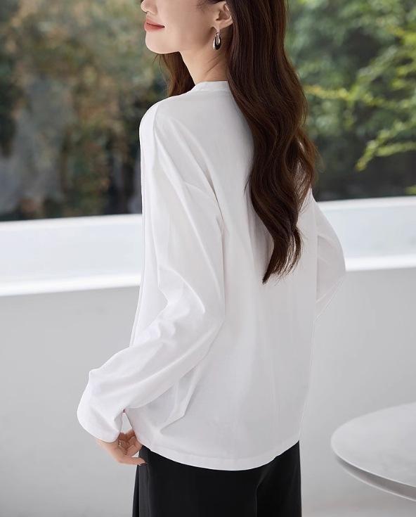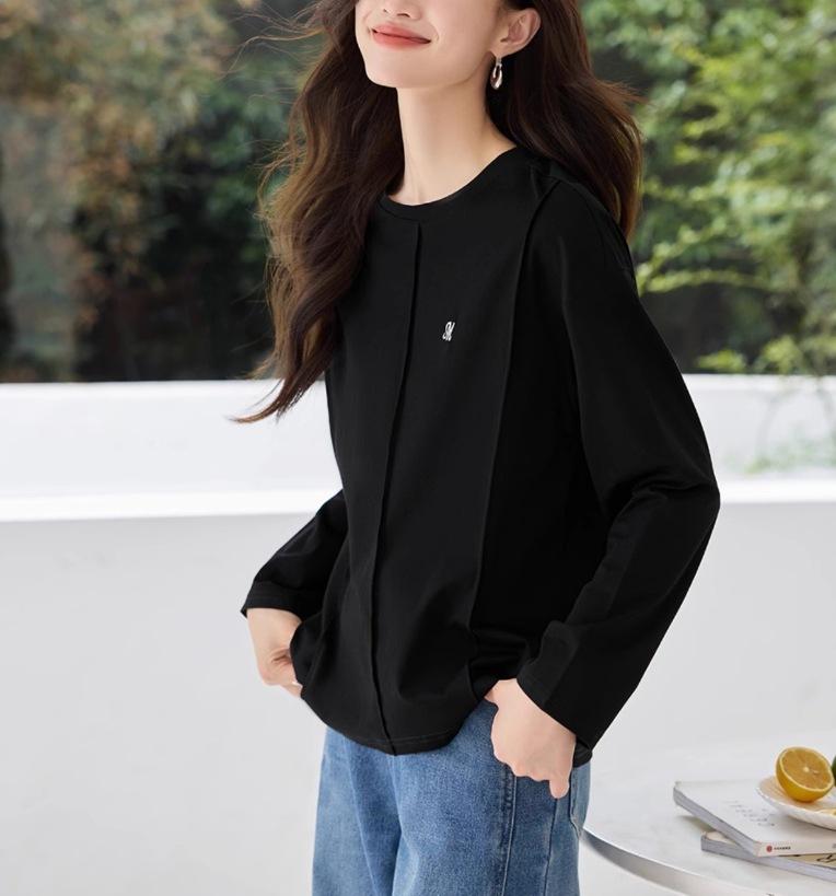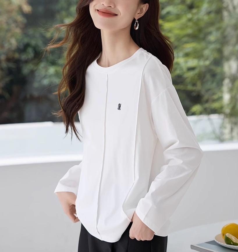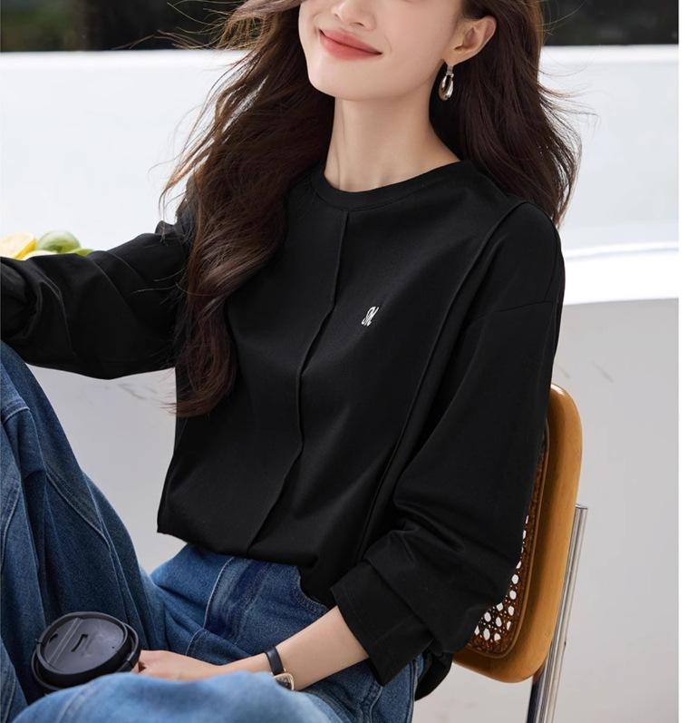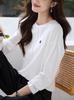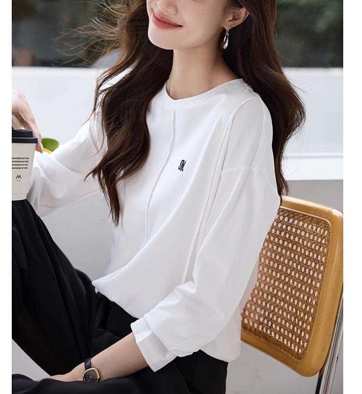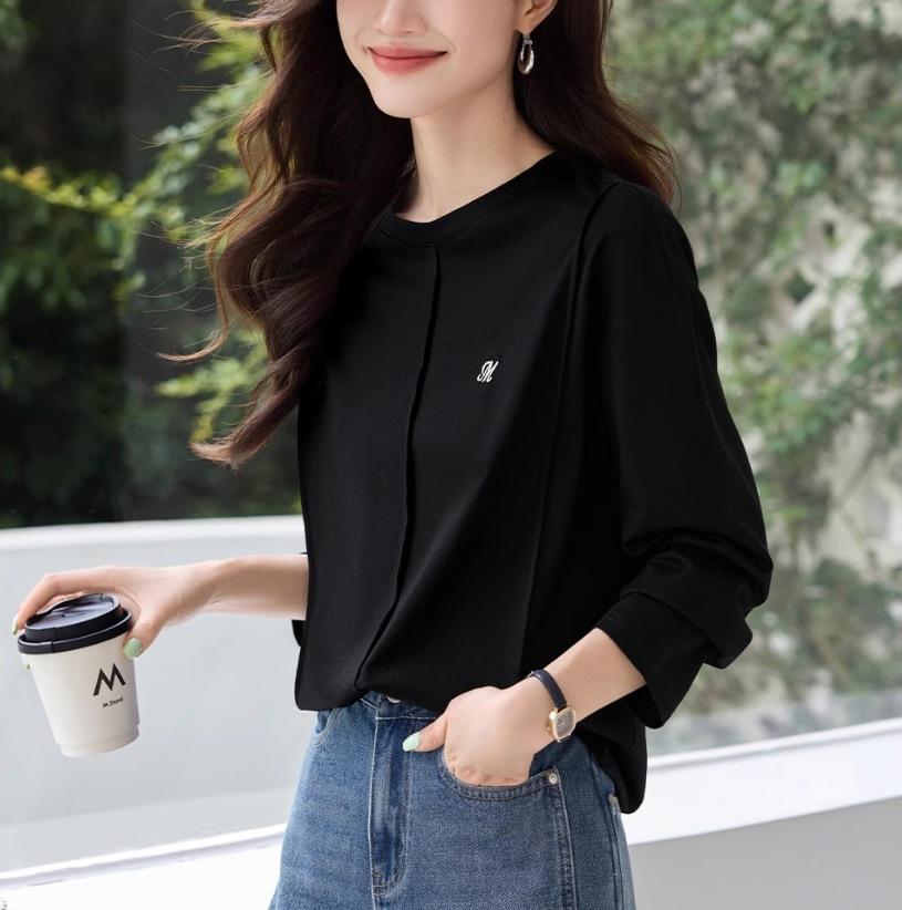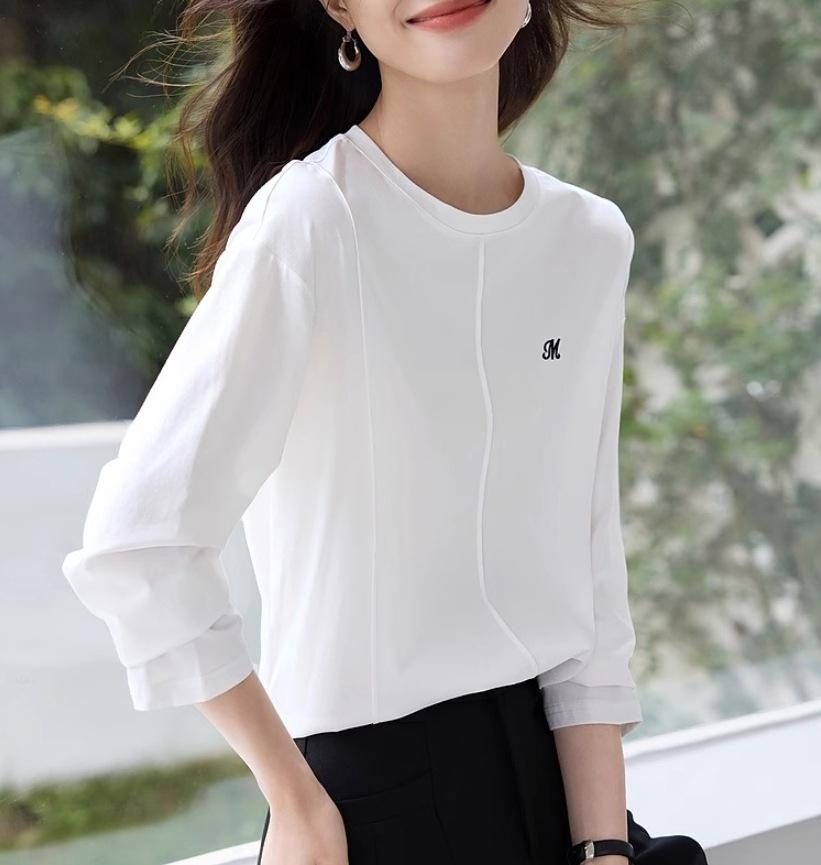 Camiseta de manga larga con cuello redondo, sencilla, para otoño de 2024, nueva moda para mujer, top básico informal que combina con todo.