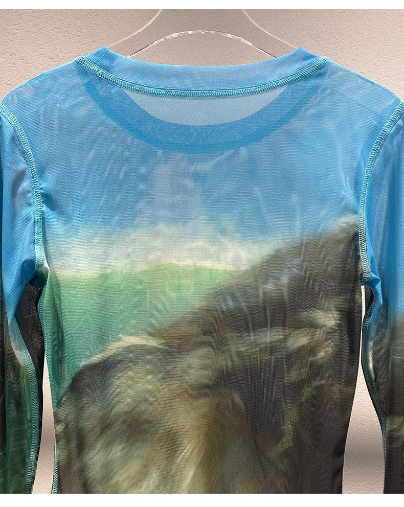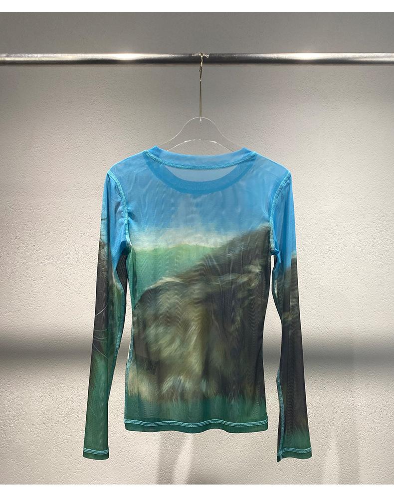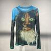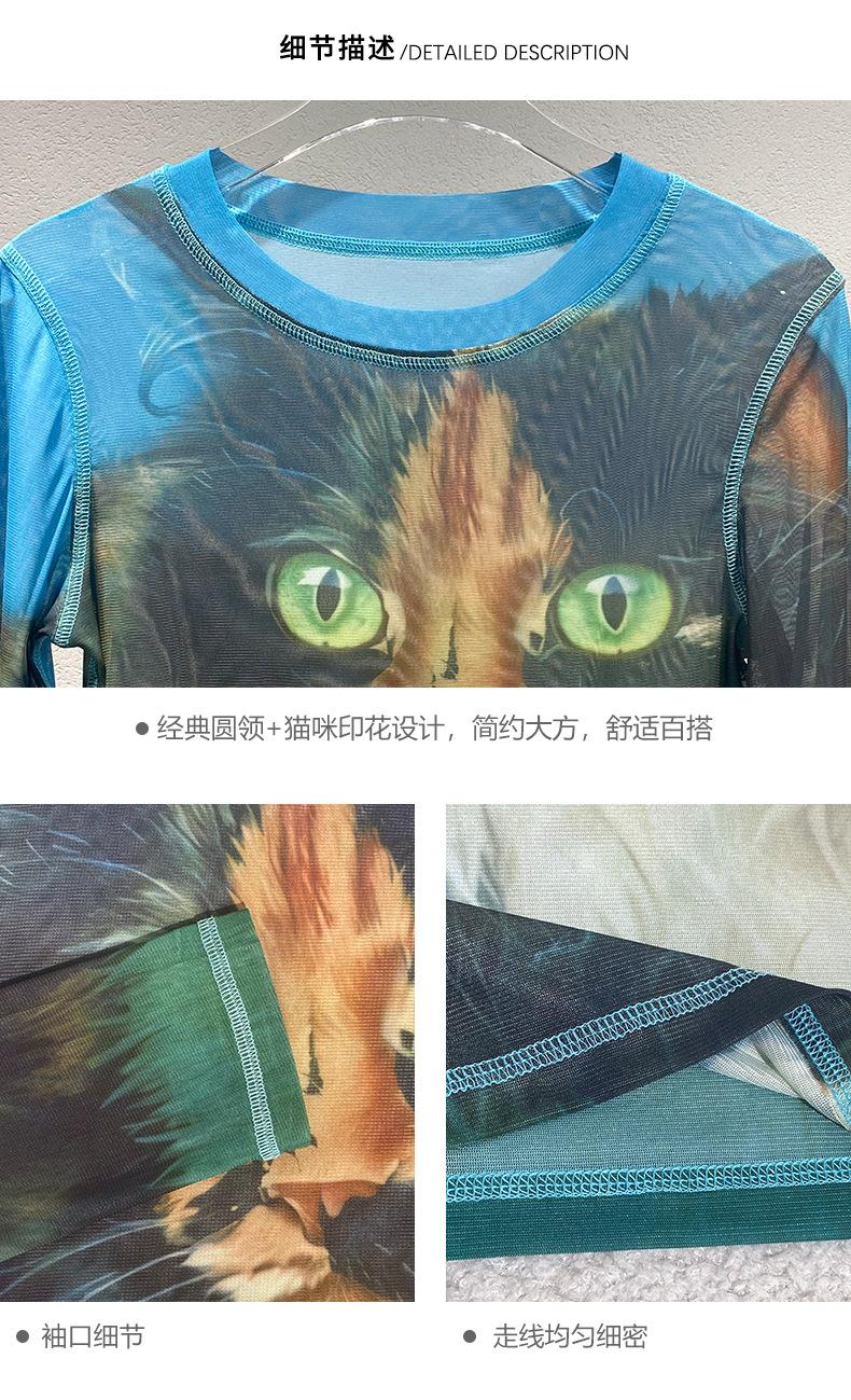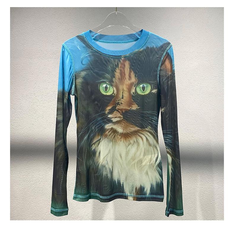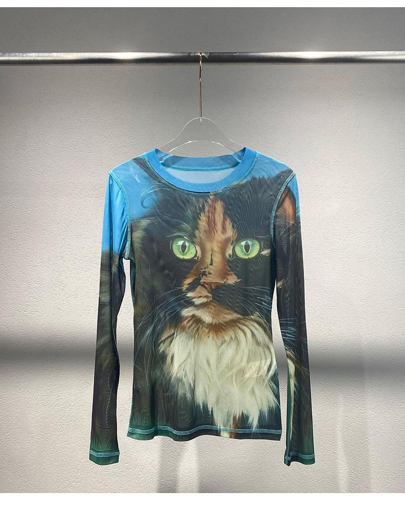 Spot Nicho 2024 Otoño Nuevo Color Mezclado Cuello Redondo Manga Larga Gato Slim Camiseta Tops para Mujer