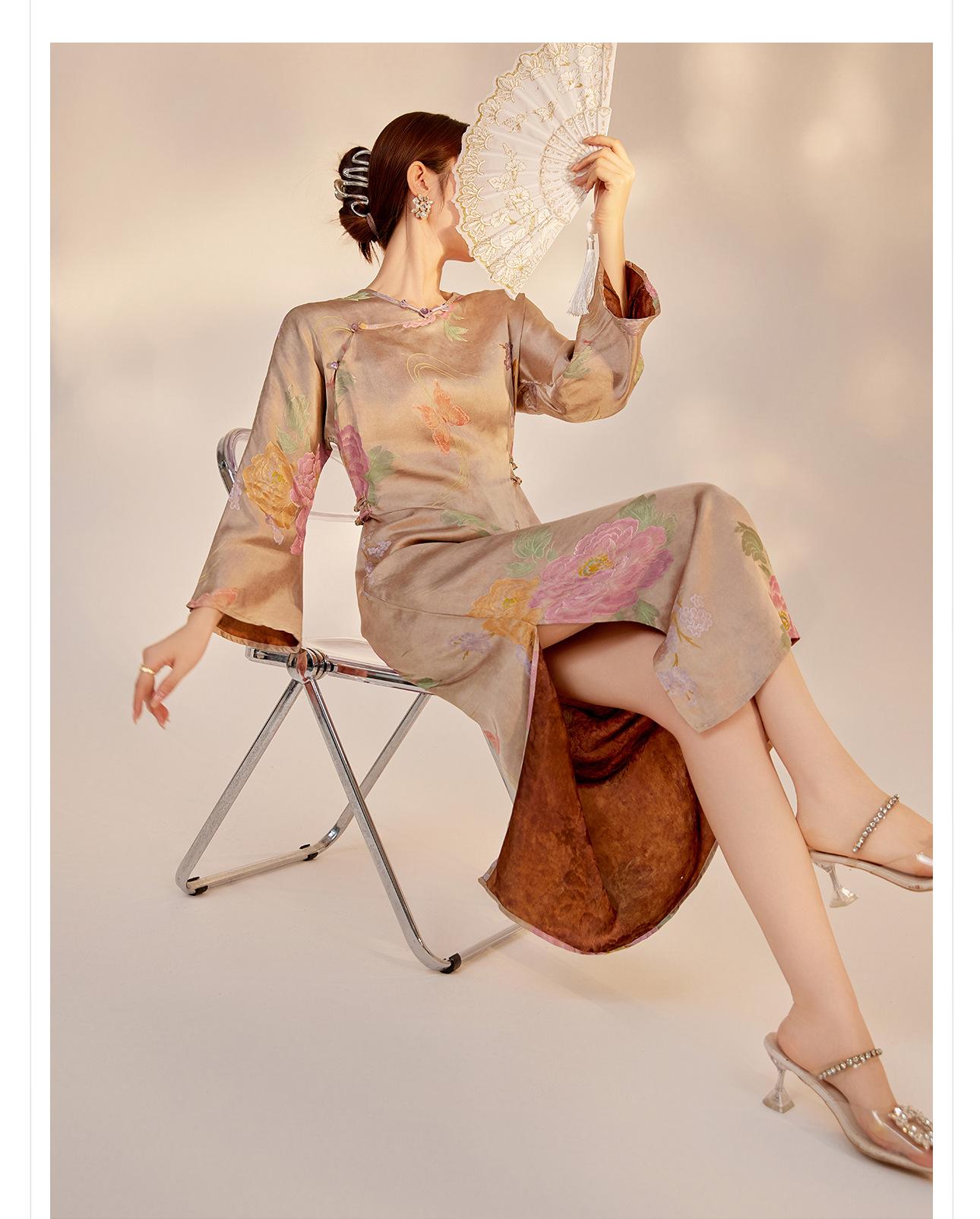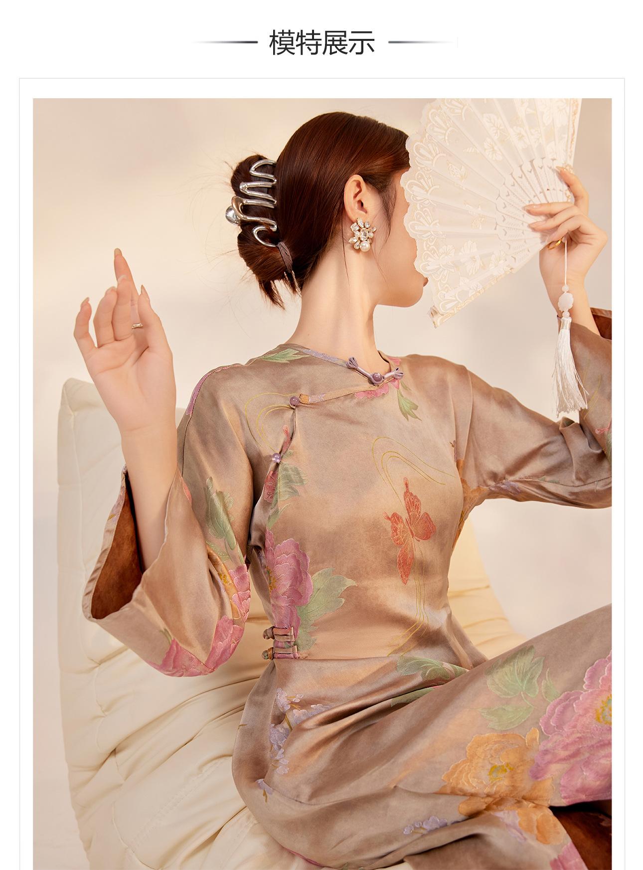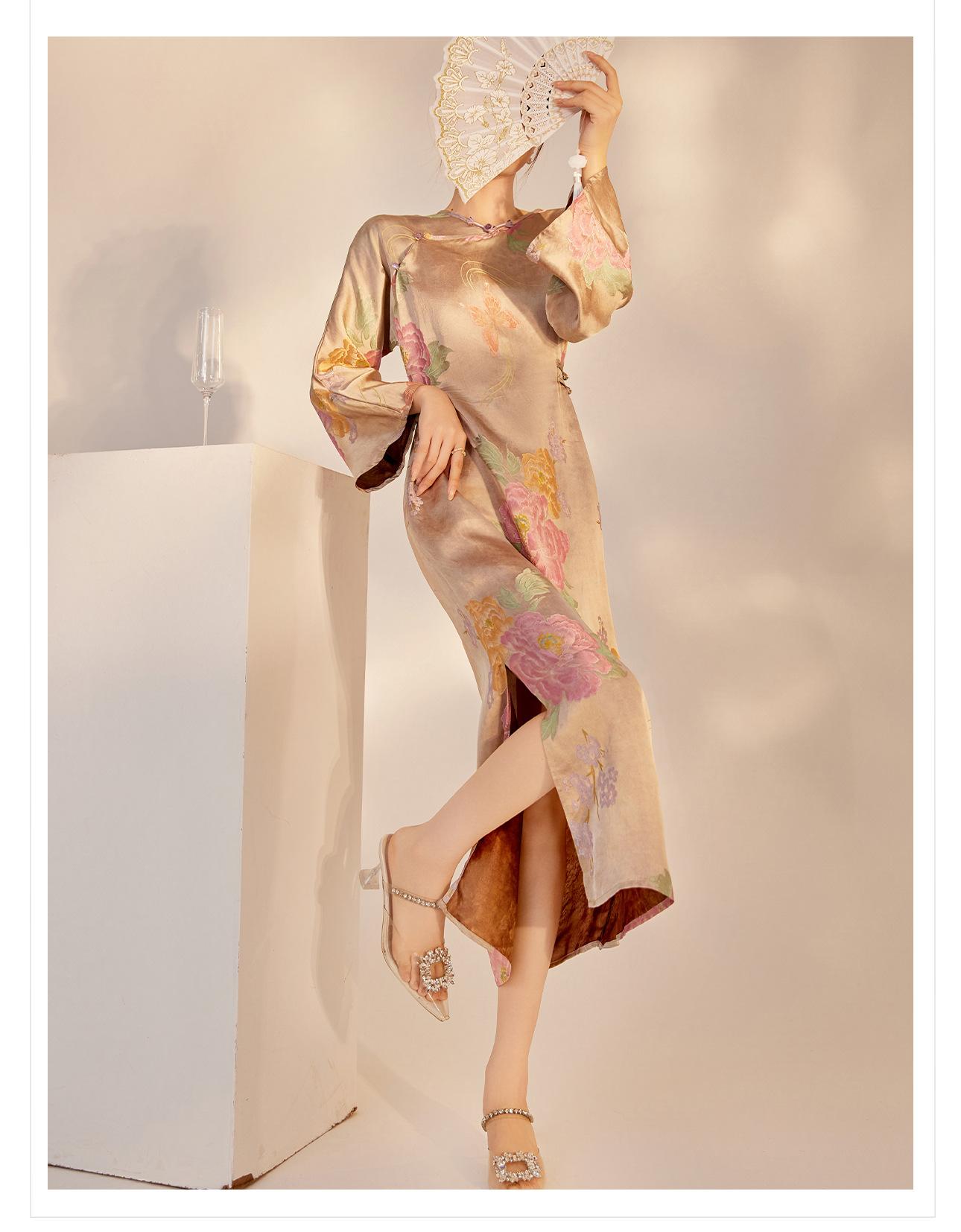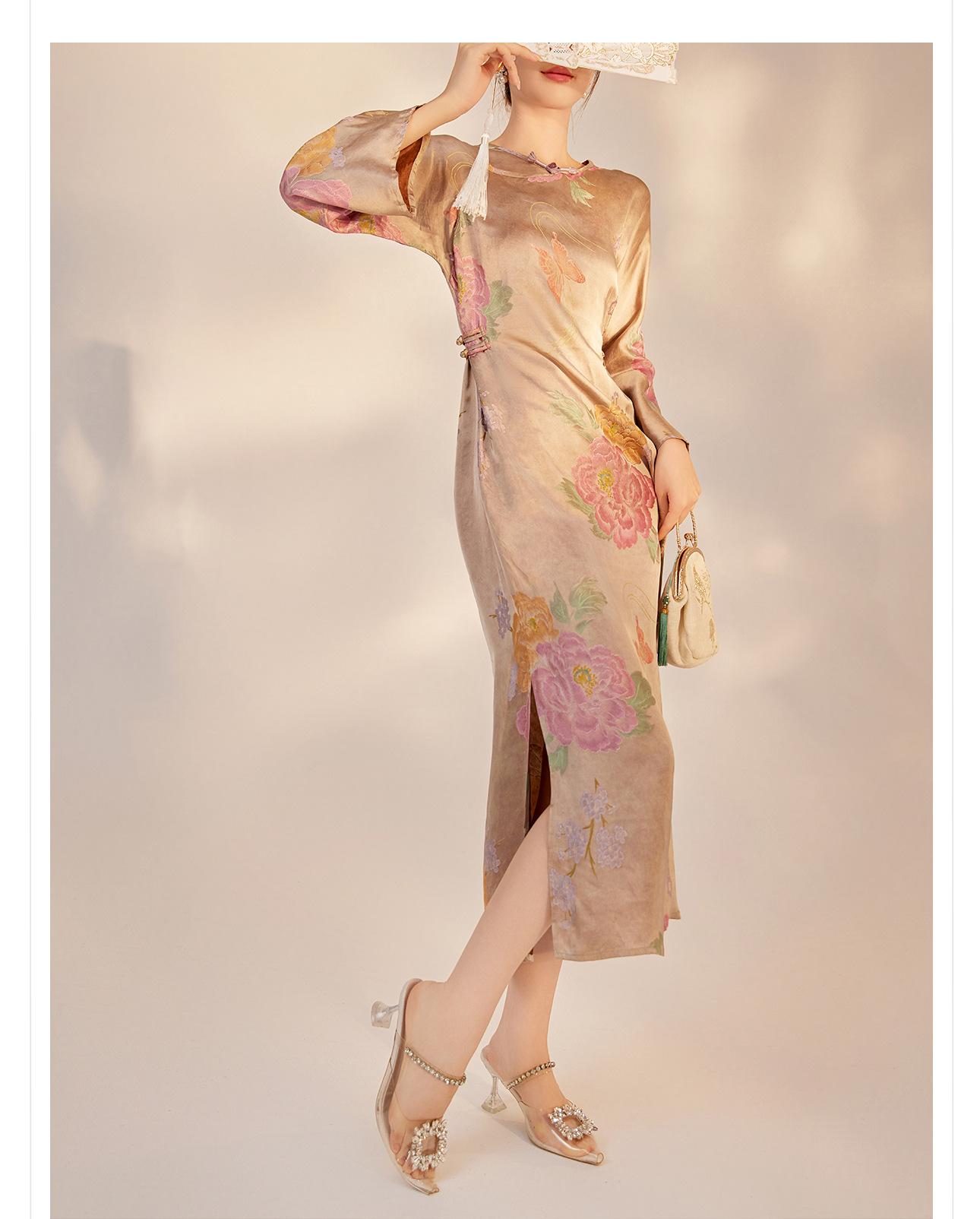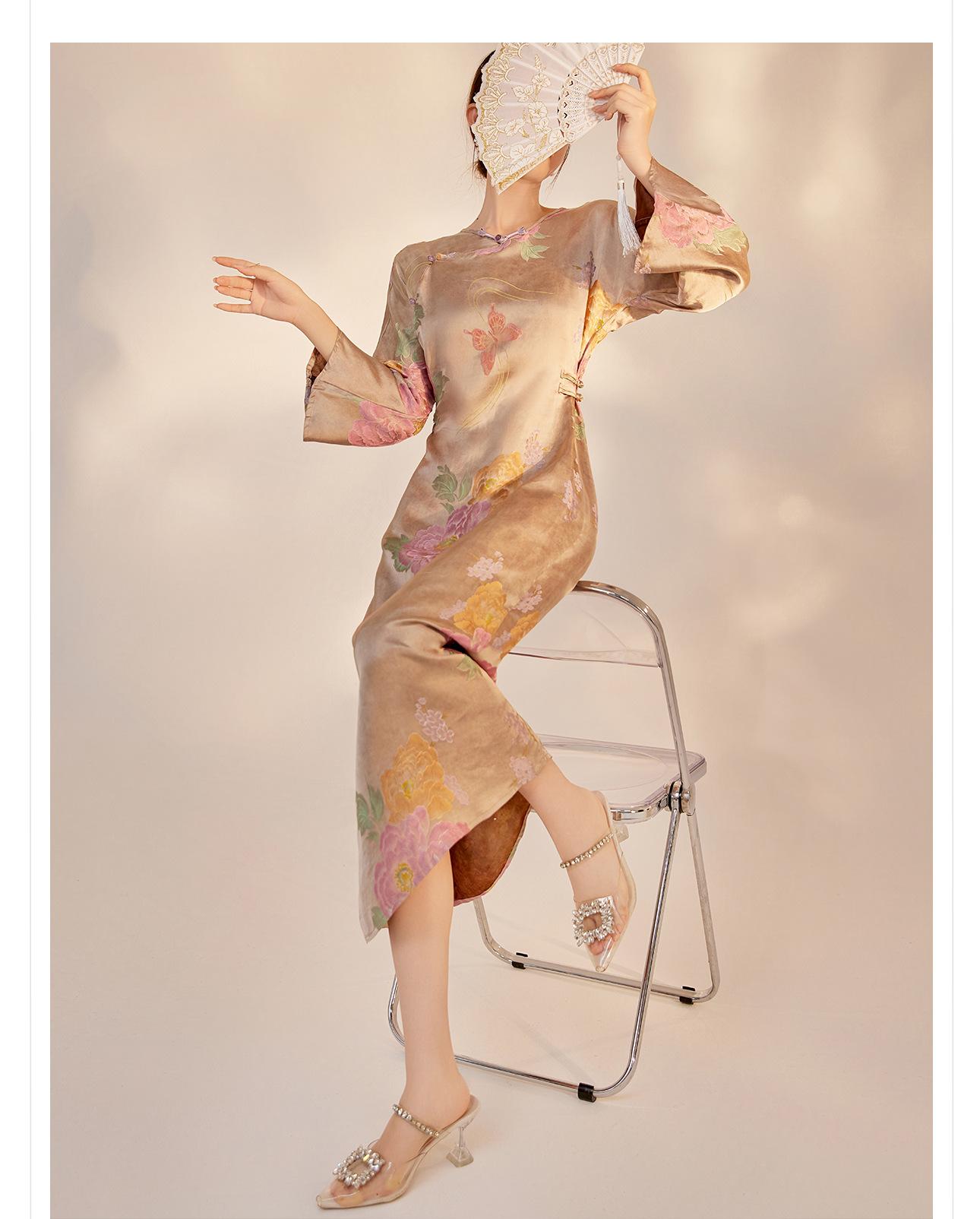 Vestido cheongsam de seda jacquard de estilo chino, estilo nacional, mejorado, con diseño de hebilla, falda ajustada para mujer M6065