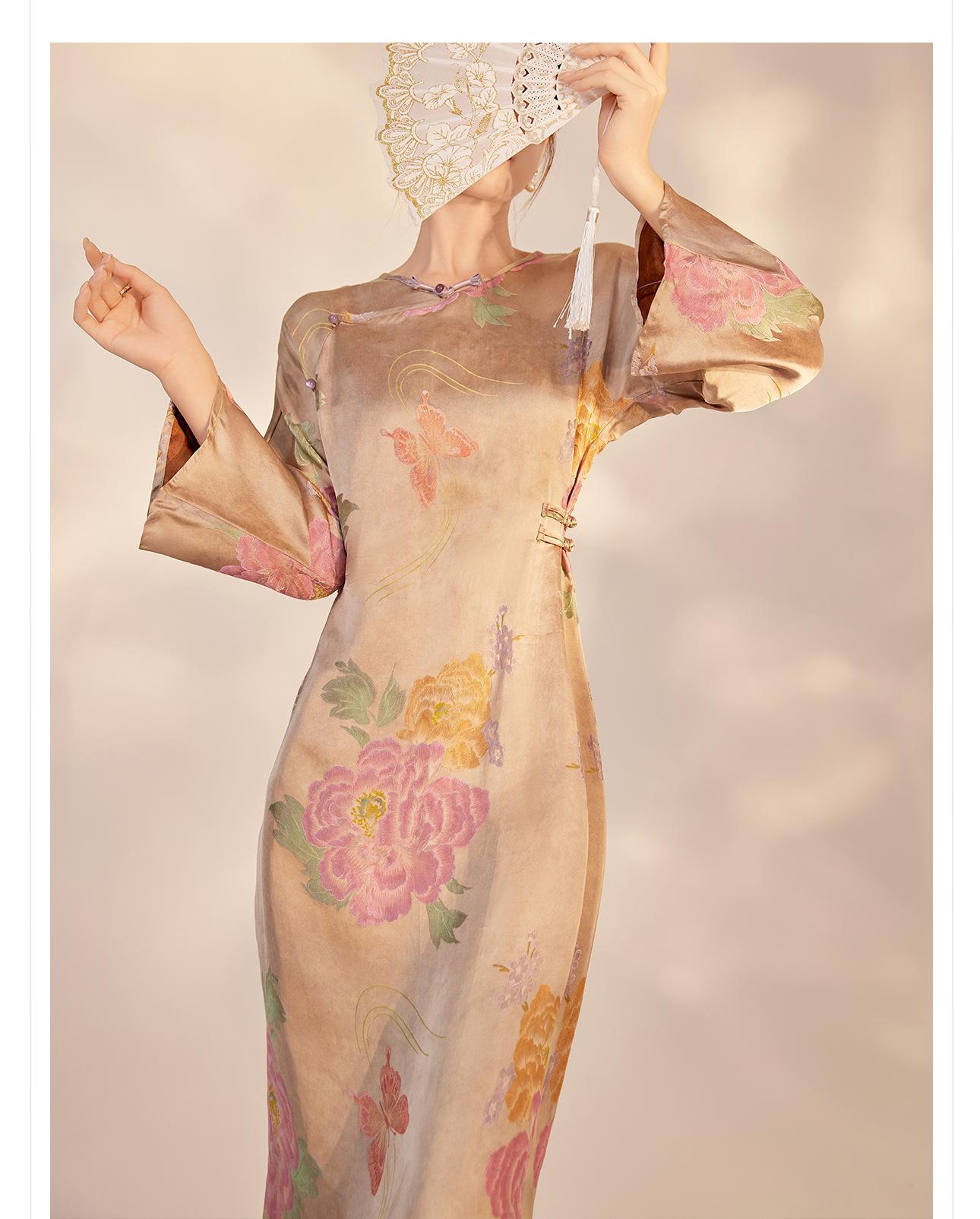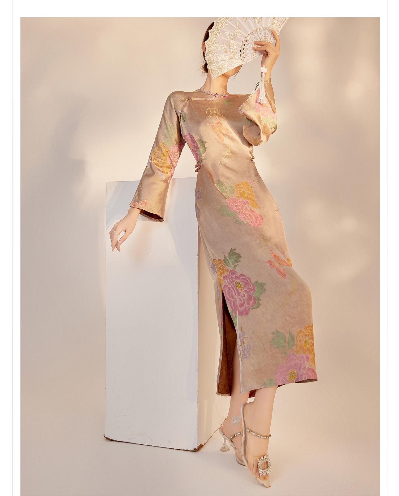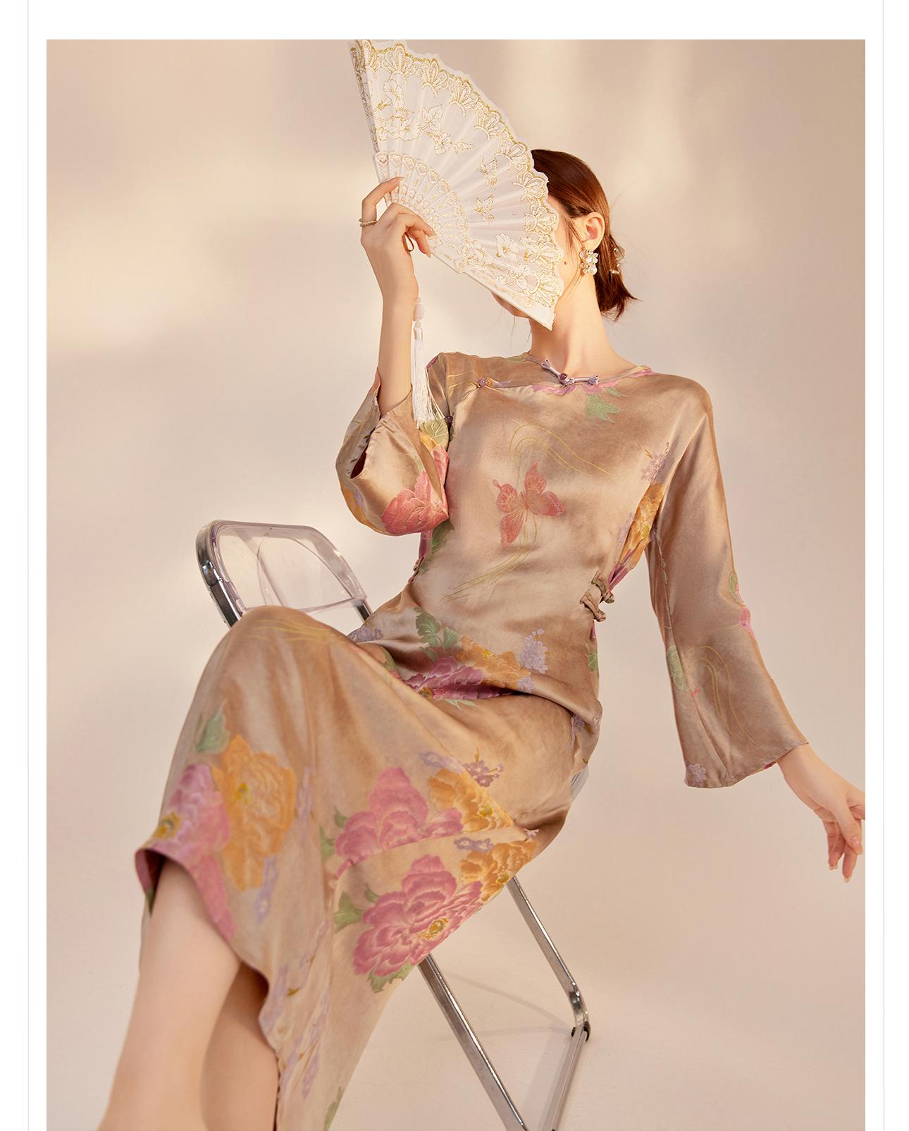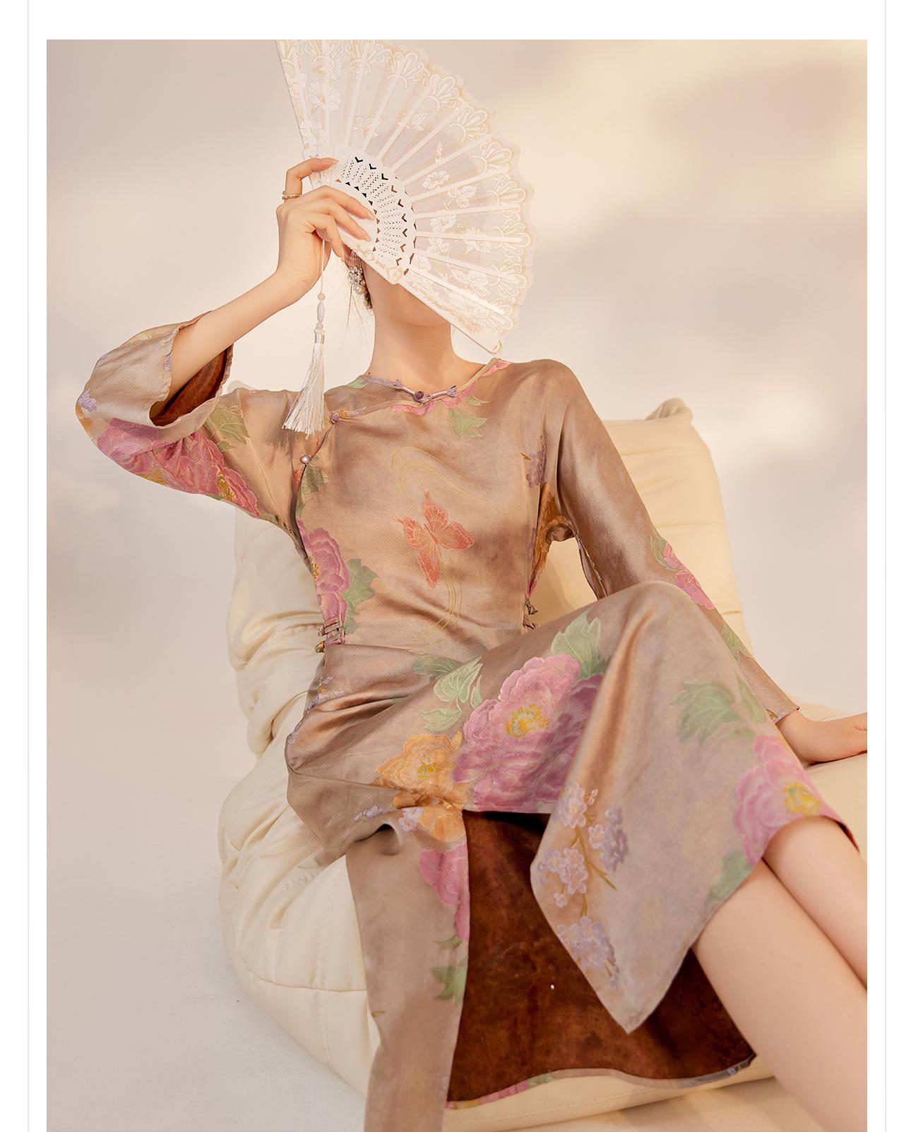 Vestido cheongsam de seda jacquard de estilo chino, estilo nacional, mejorado, con diseño de hebilla, falda ajustada para mujer M6065