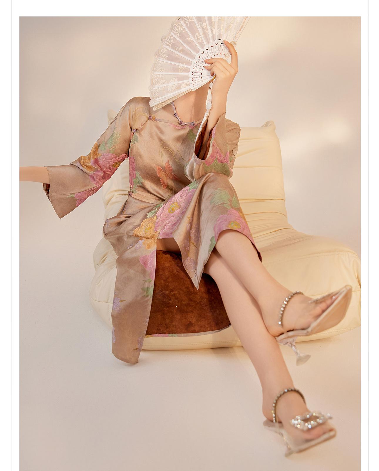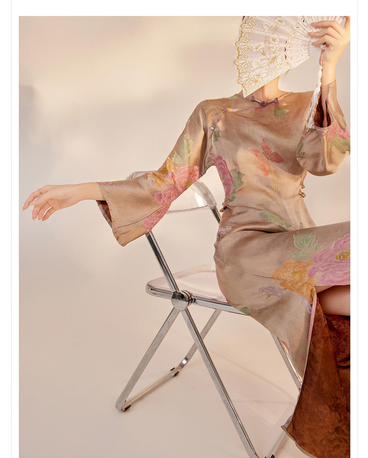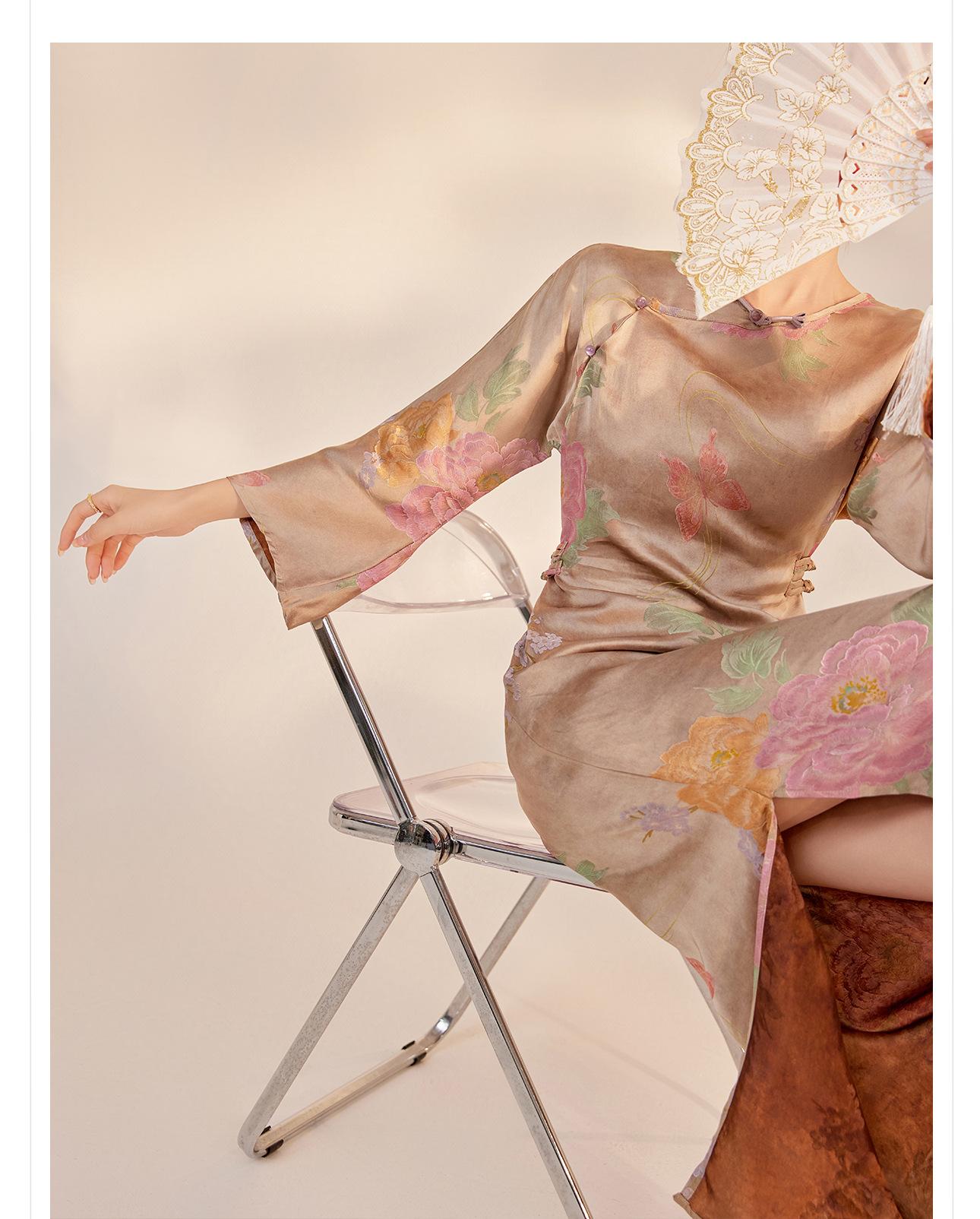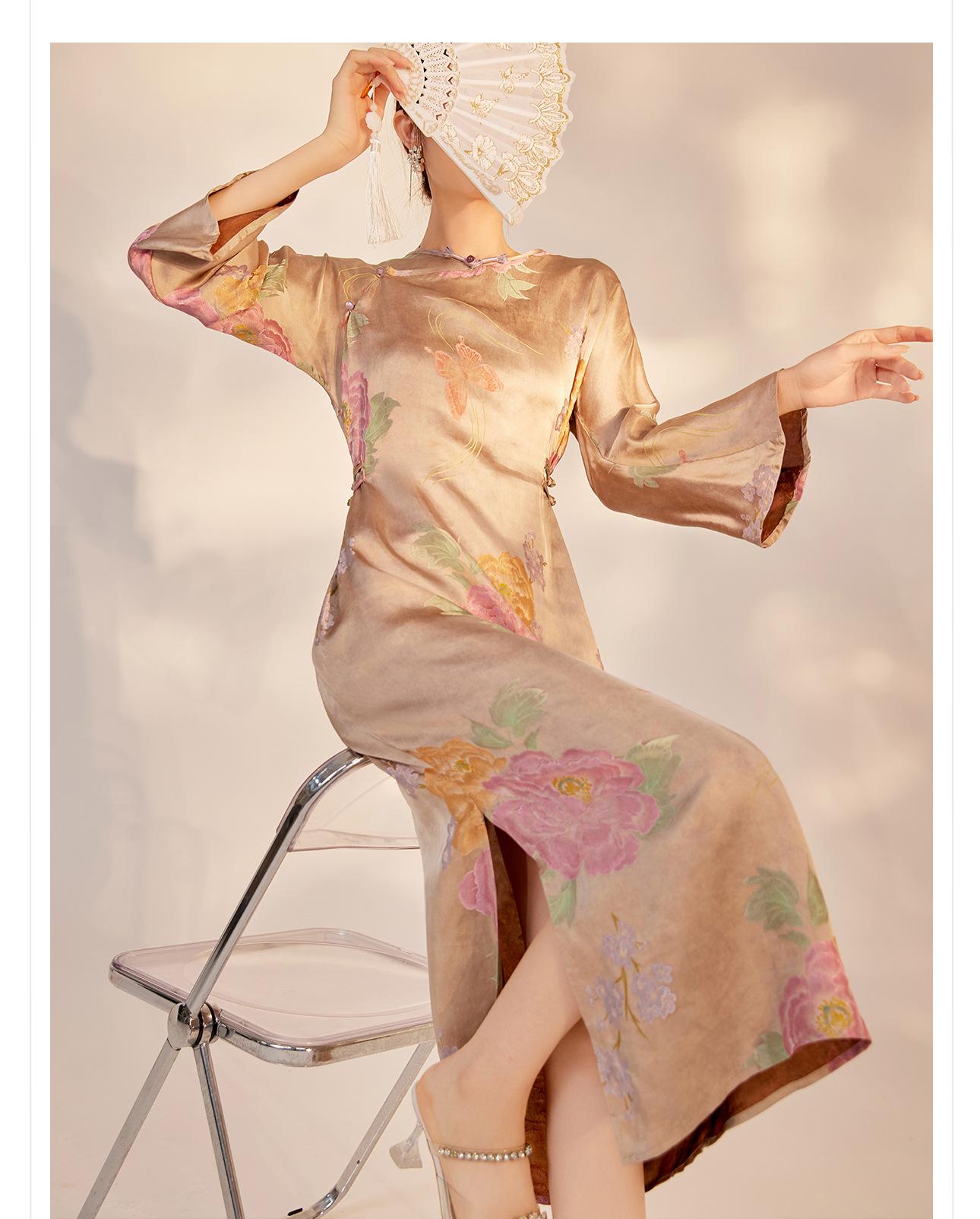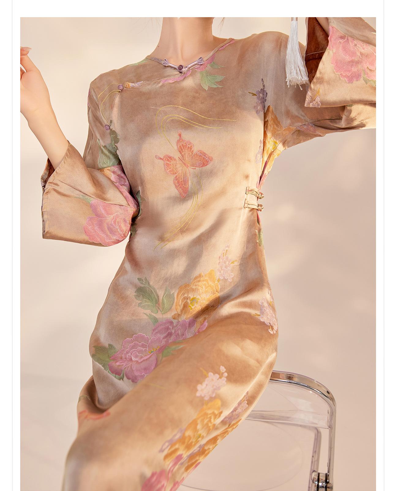 Vestido cheongsam de seda jacquard de estilo chino, estilo nacional, mejorado, con diseño de hebilla, falda ajustada para mujer M6065