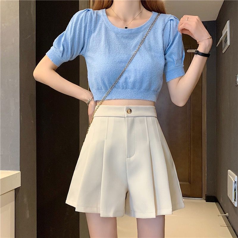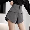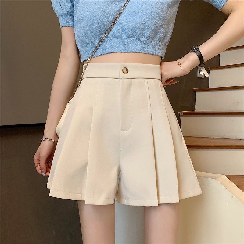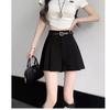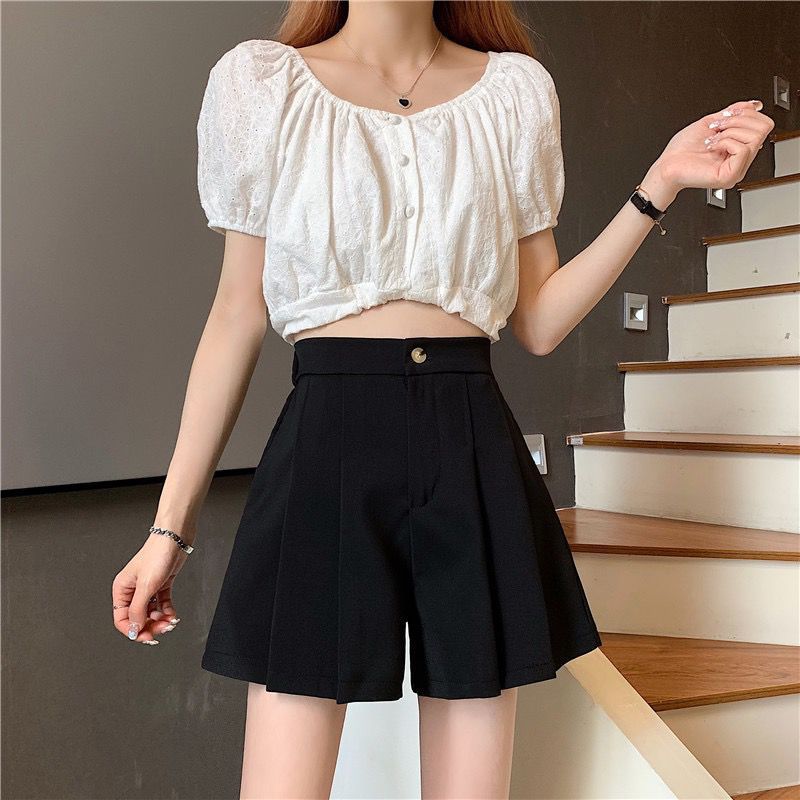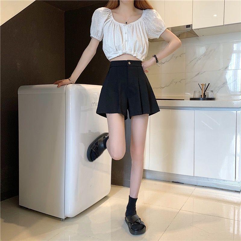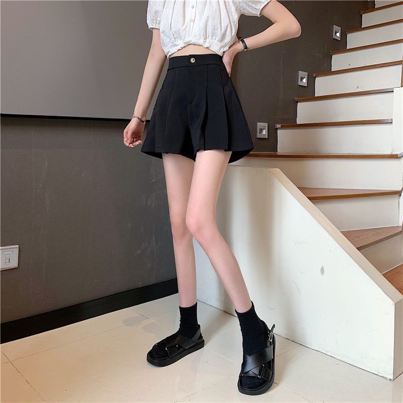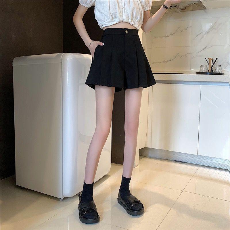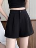 Traje de Verano para Mujer 2024 Shorts Nuevos de Cintura Alta Estilo Coreano Culottes Nicho Pantalones Casuales Negros Pantalones Plisados de Pierna Ancha