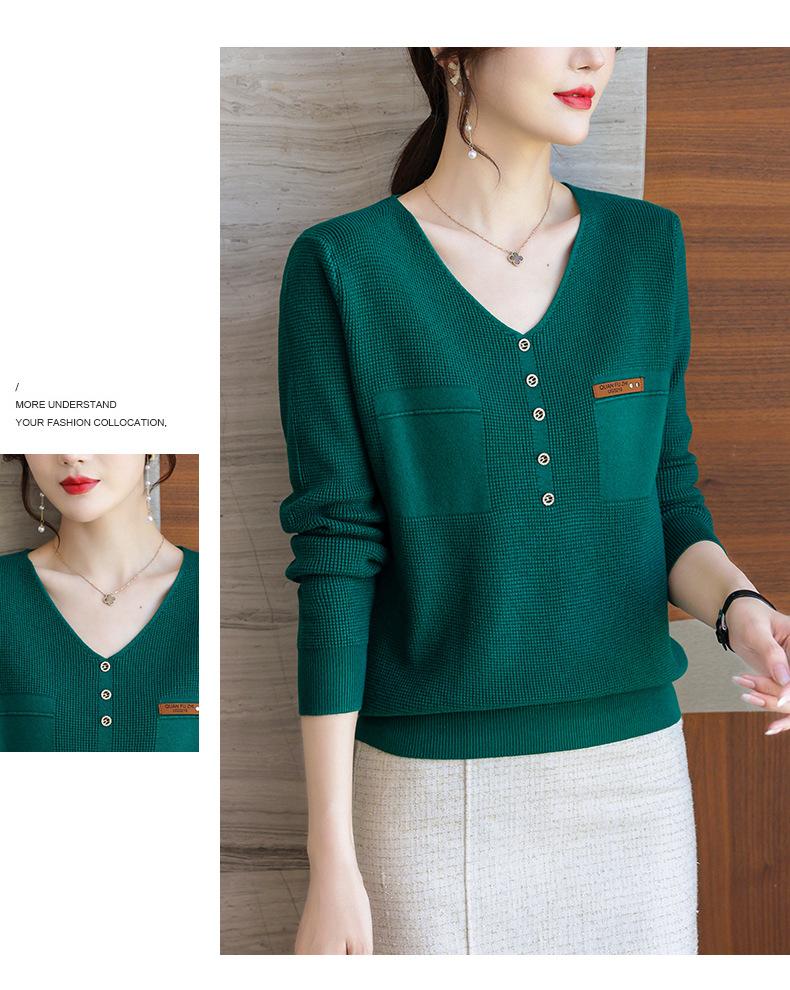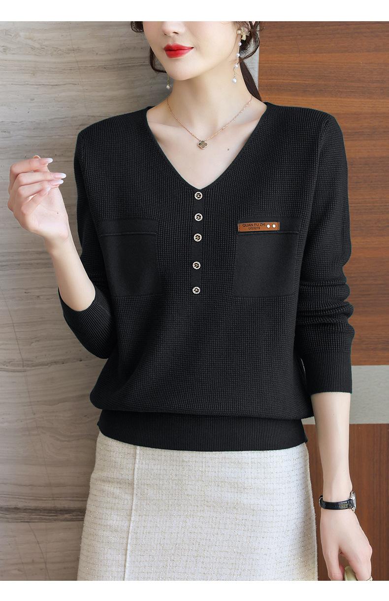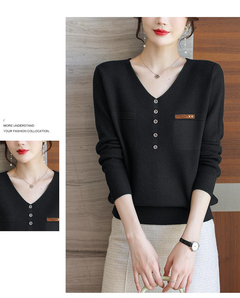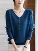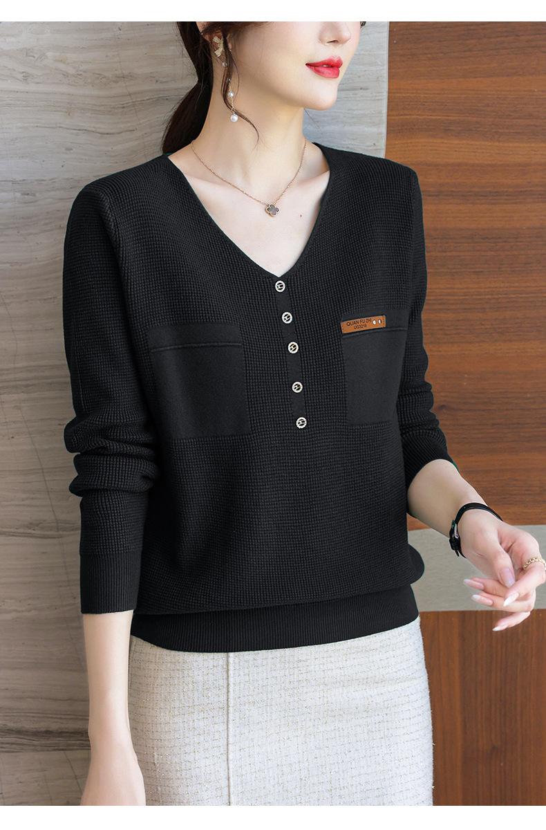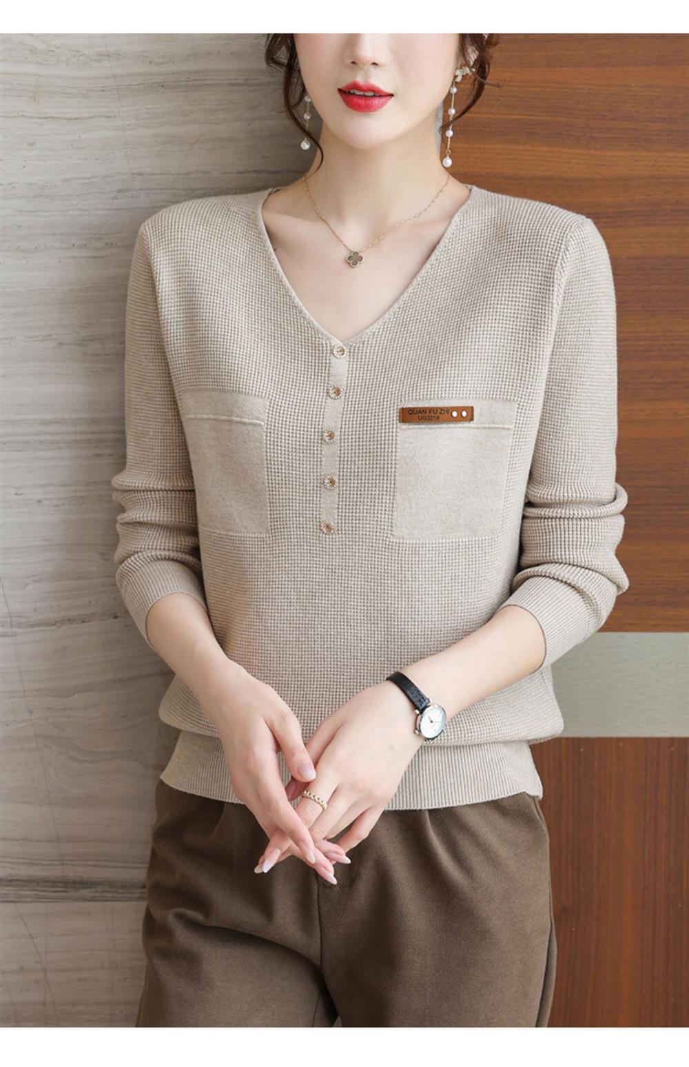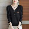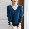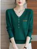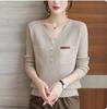 Hermosas Blusas para Mujer, Estilo Otoño 2025 Nuevo Cuello en V Otoño Temprano Tejido de Punto con Botones, Suéter Delgado, Camisa Base Casual