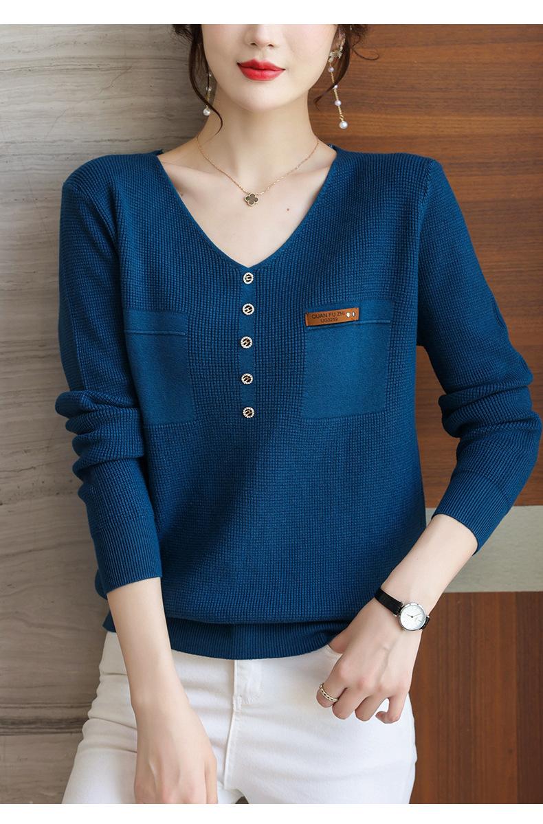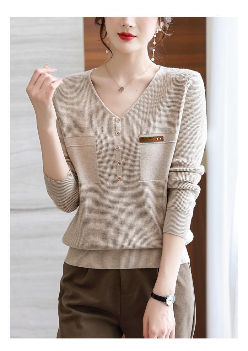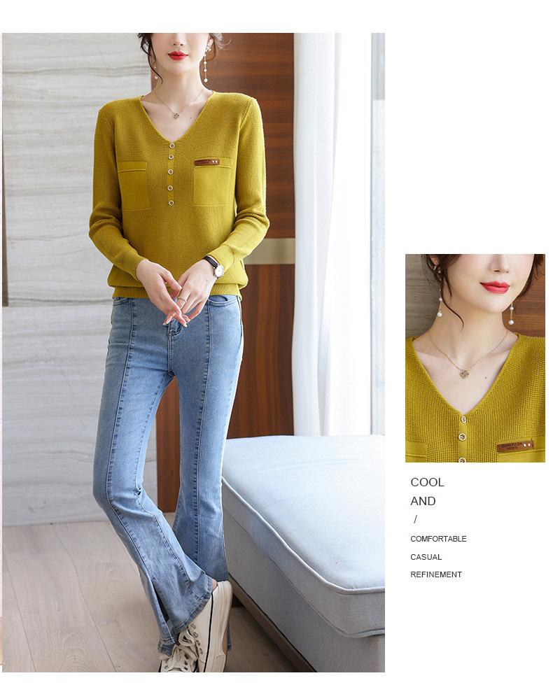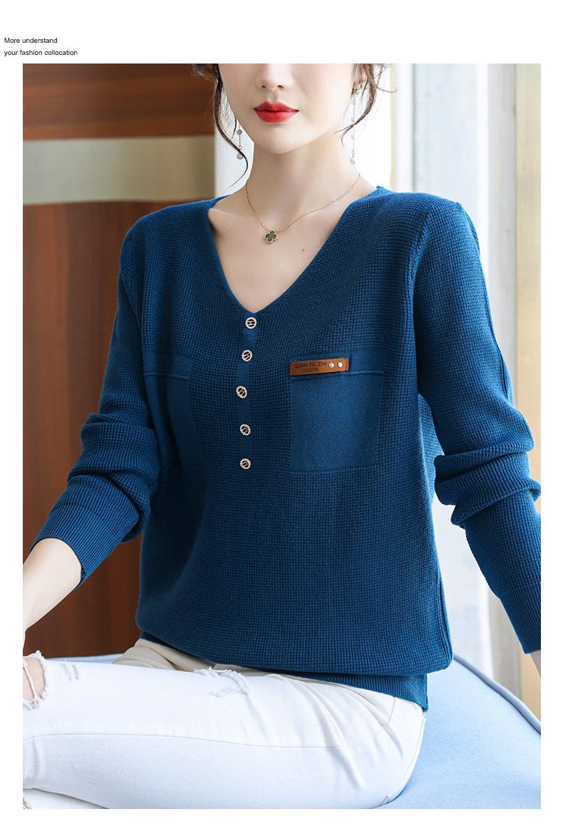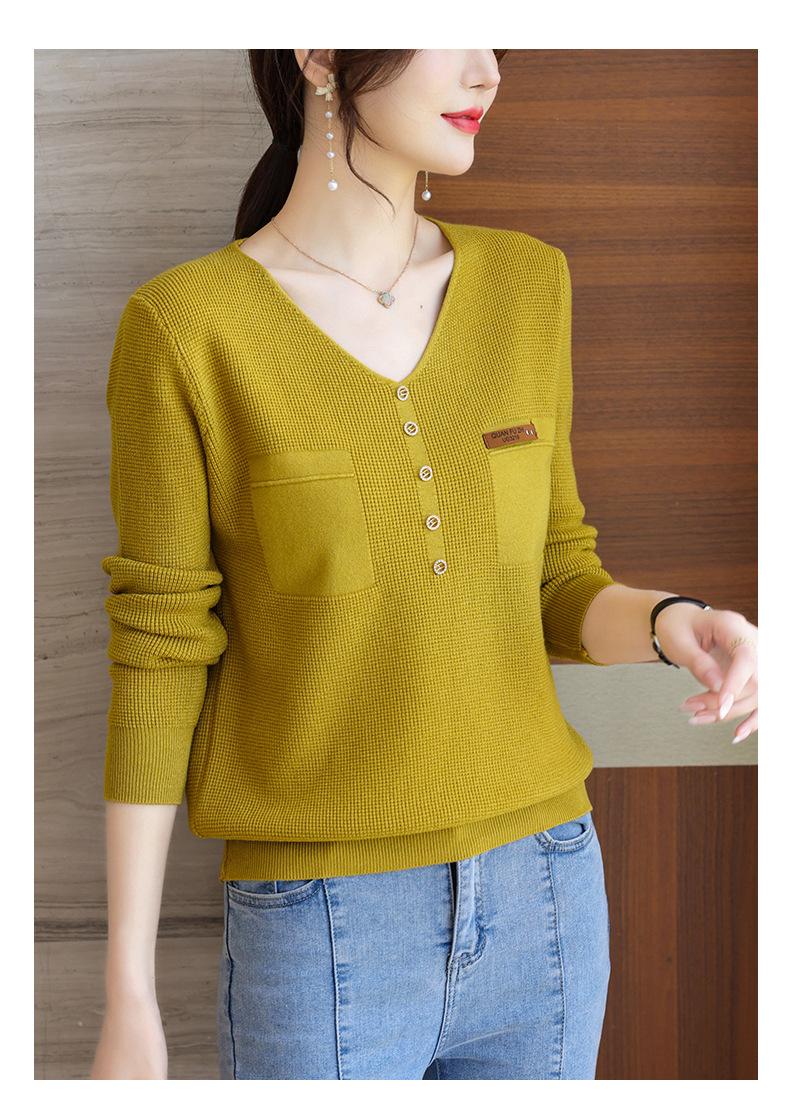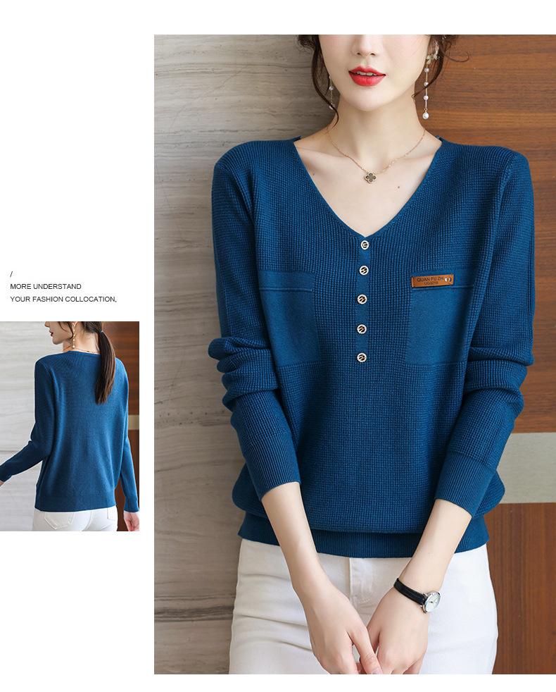Hermosas Blusas para Mujer, Estilo Otoño 2025 Nuevo Cuello en V Otoño Temprano Tejido de Punto con Botones, Suéter Delgado, Camisa Base Casual