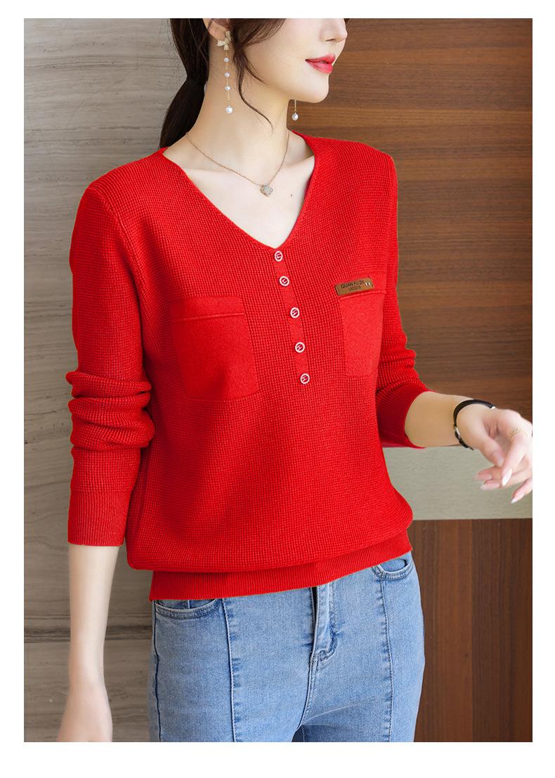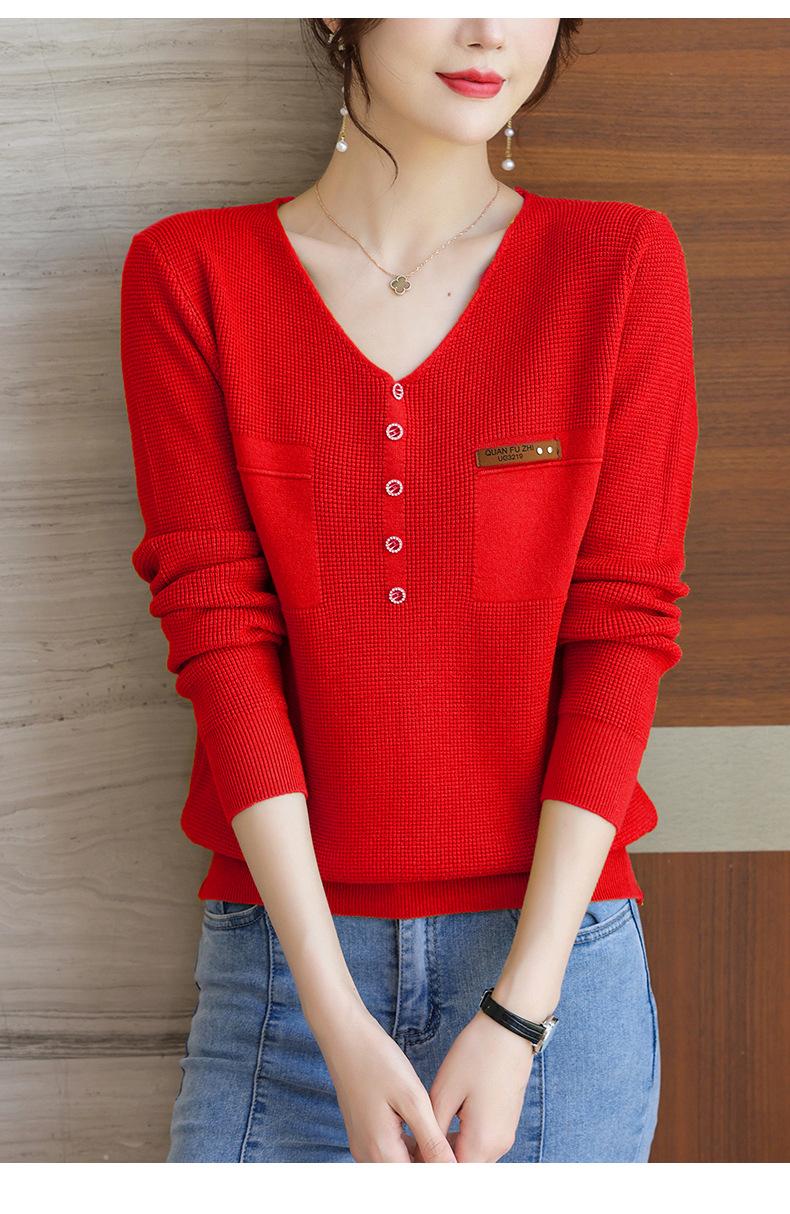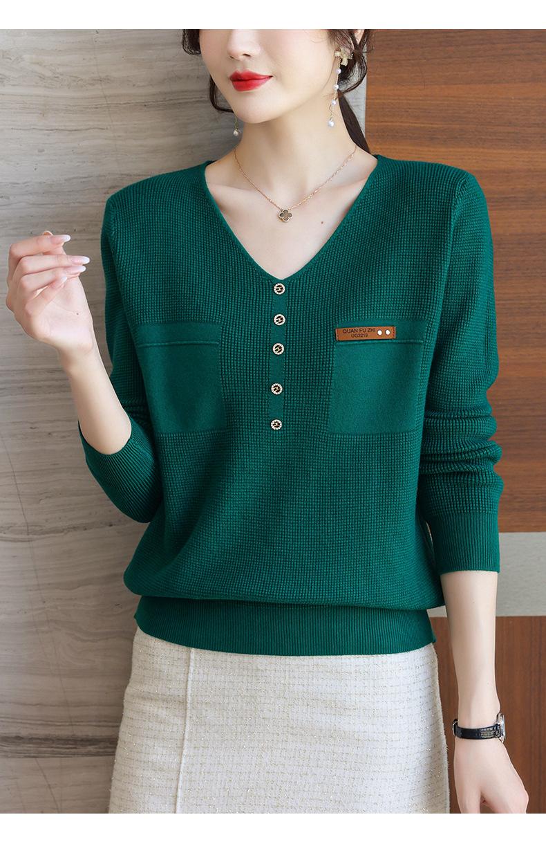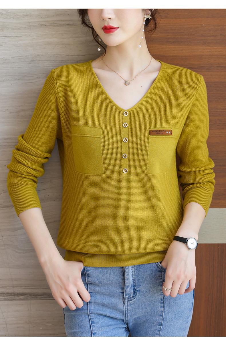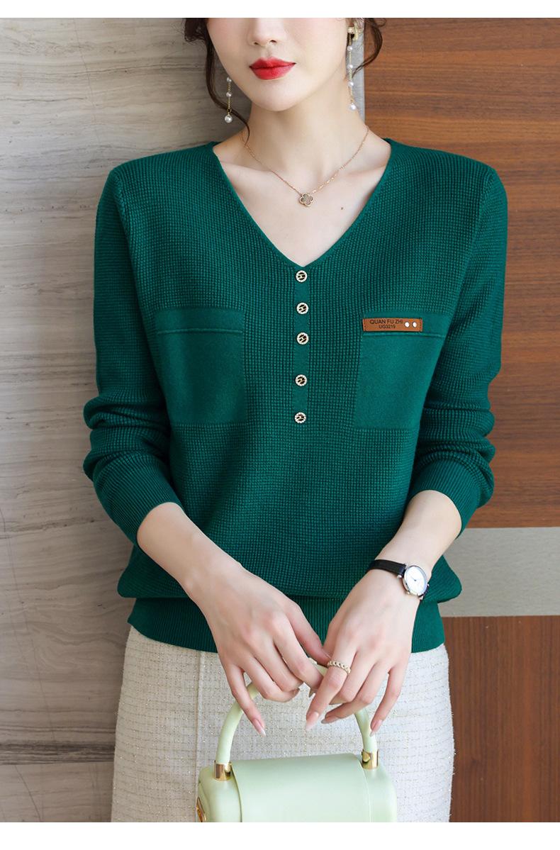 Hermosas Blusas para Mujer, Estilo Otoño 2025 Nuevo Cuello en V Otoño Temprano Tejido de Punto con Botones, Suéter Delgado, Camisa Base Casual