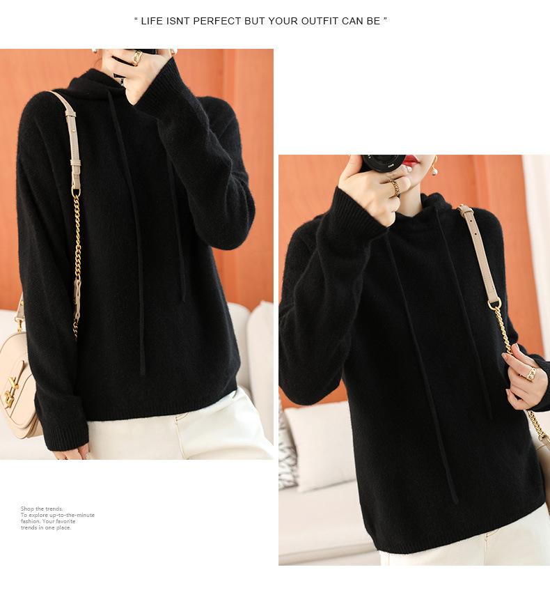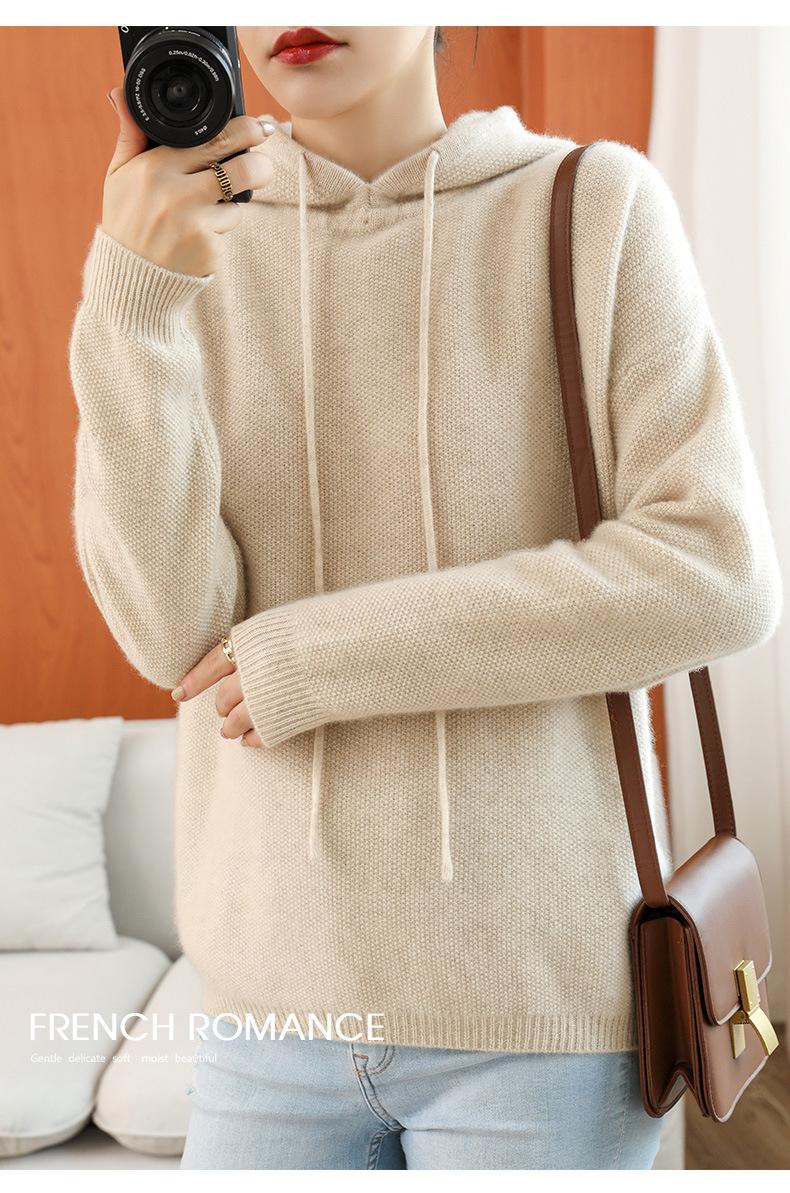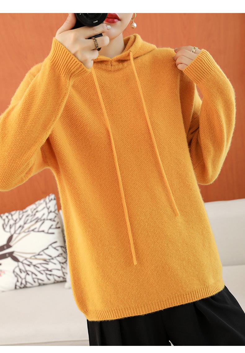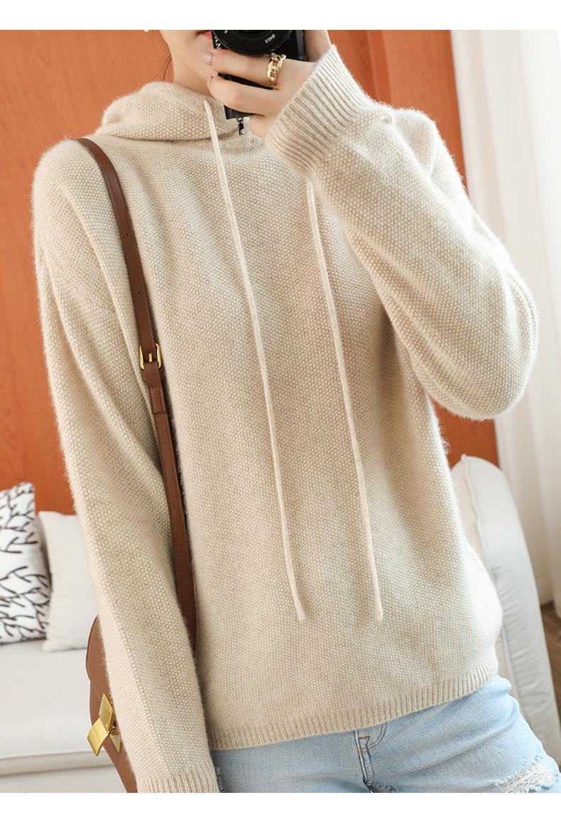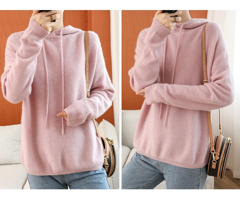 Suéter de punto con capucha y cordón para mujer, informal, con diseño de piña y aguja, holgado, de color liso, para otoño e invierno, 24 unidades