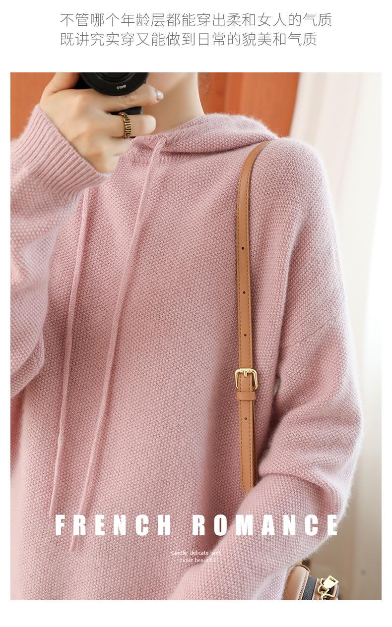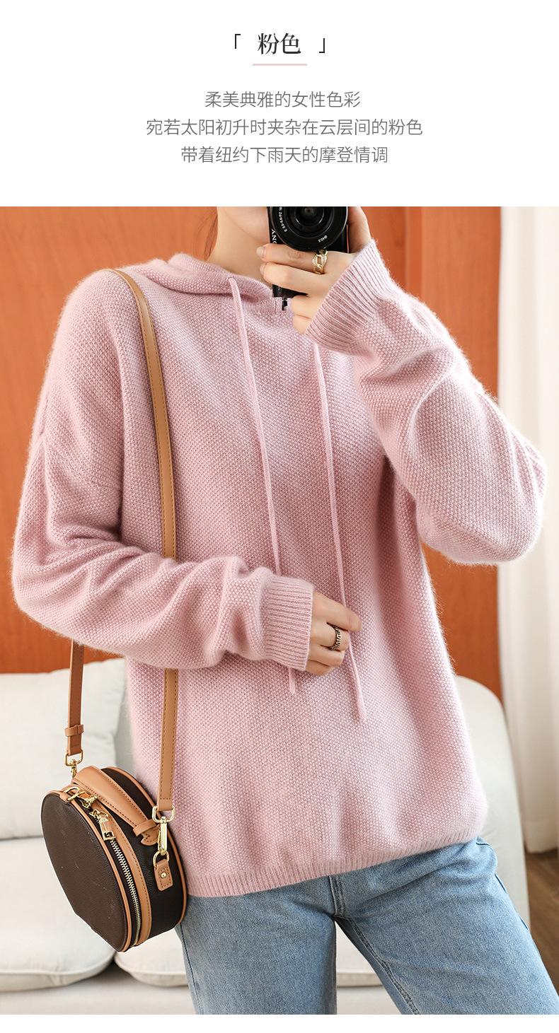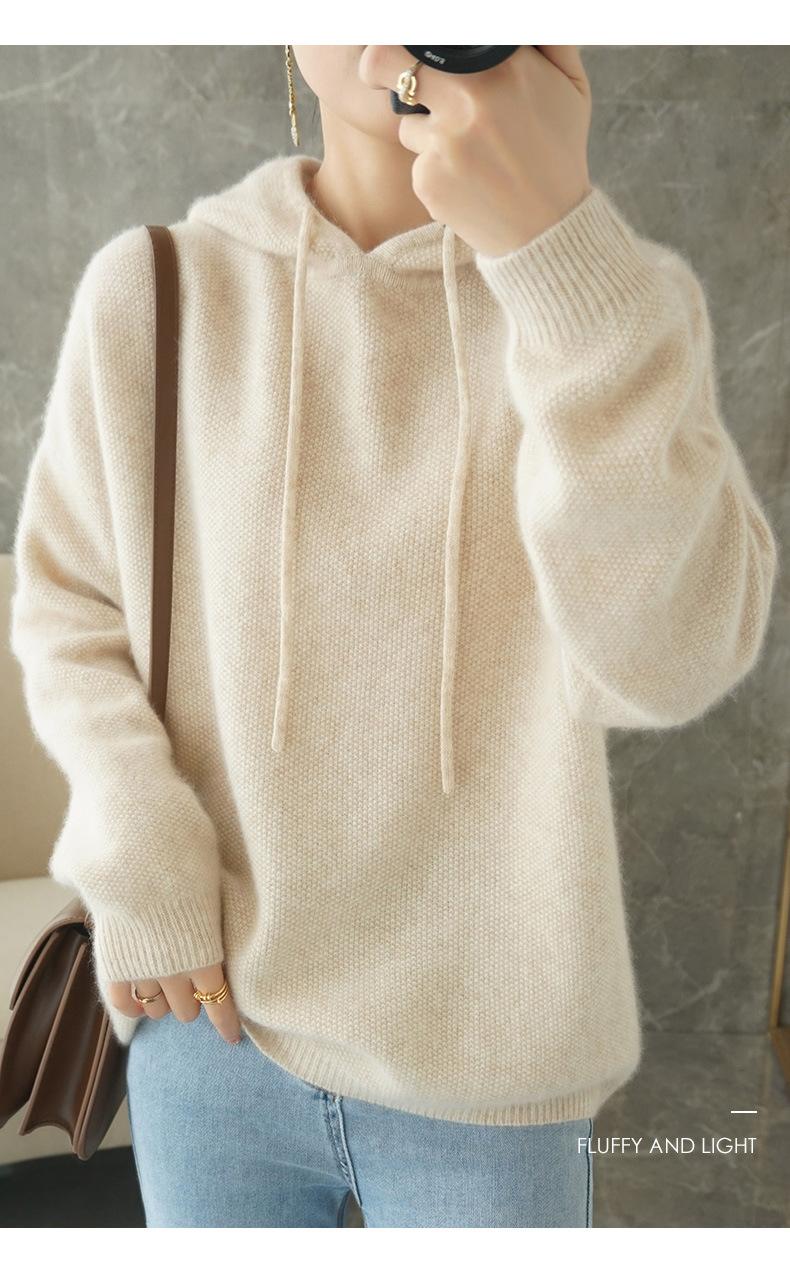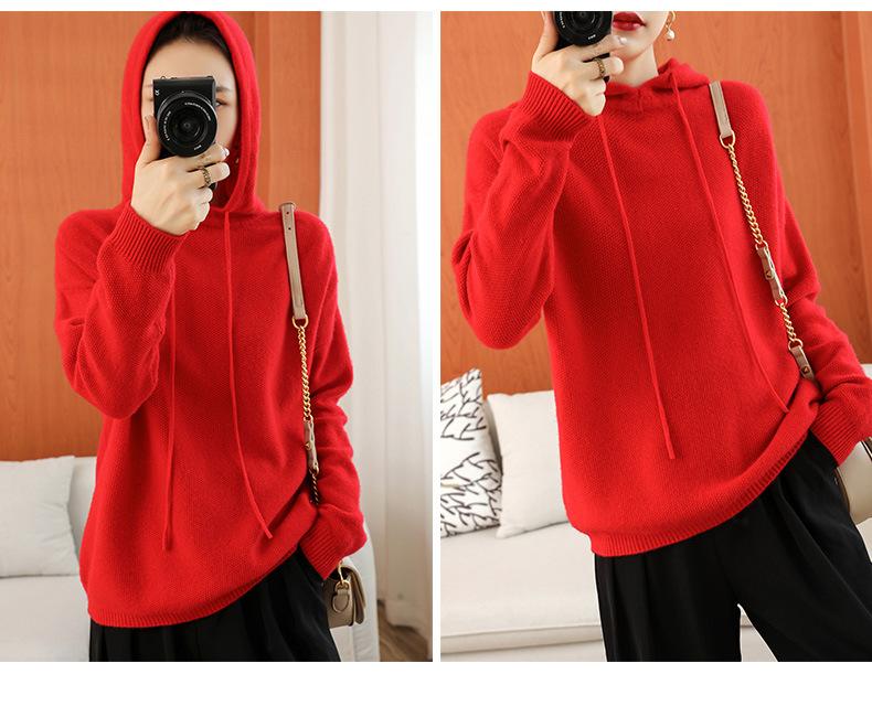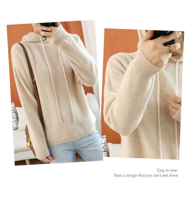 Suéter de punto con capucha y cordón para mujer, informal, con diseño de piña y aguja, holgado, de color liso, para otoño e invierno, 24 unidades
