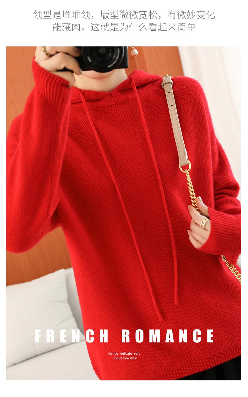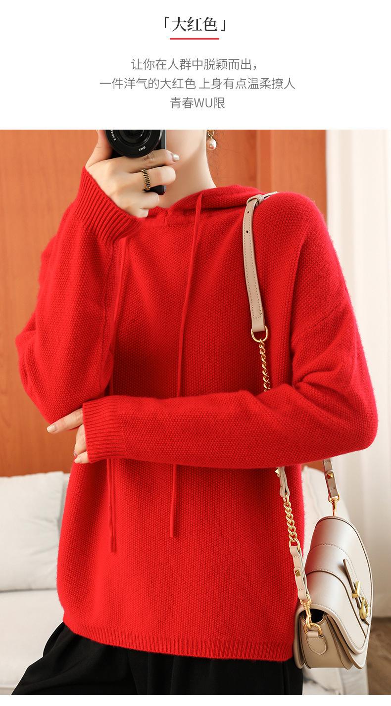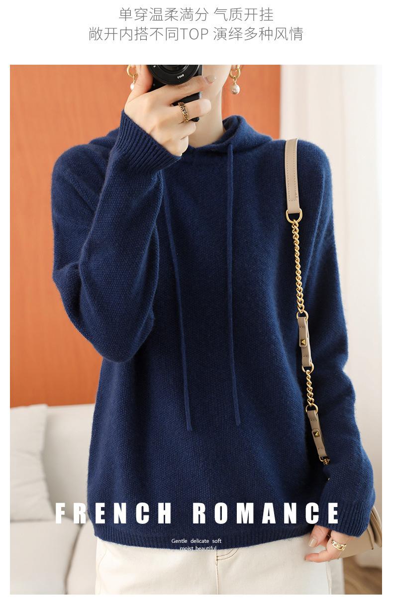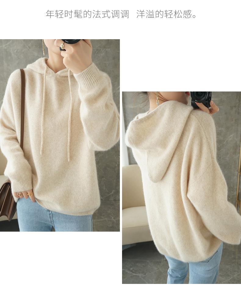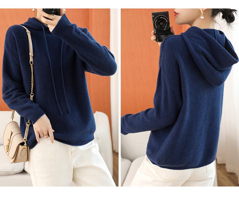 Suéter de punto con capucha y cordón para mujer, informal, con diseño de piña y aguja, holgado, de color liso, para otoño e invierno, 24 unidades