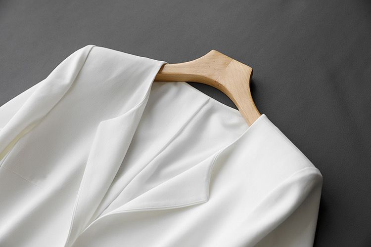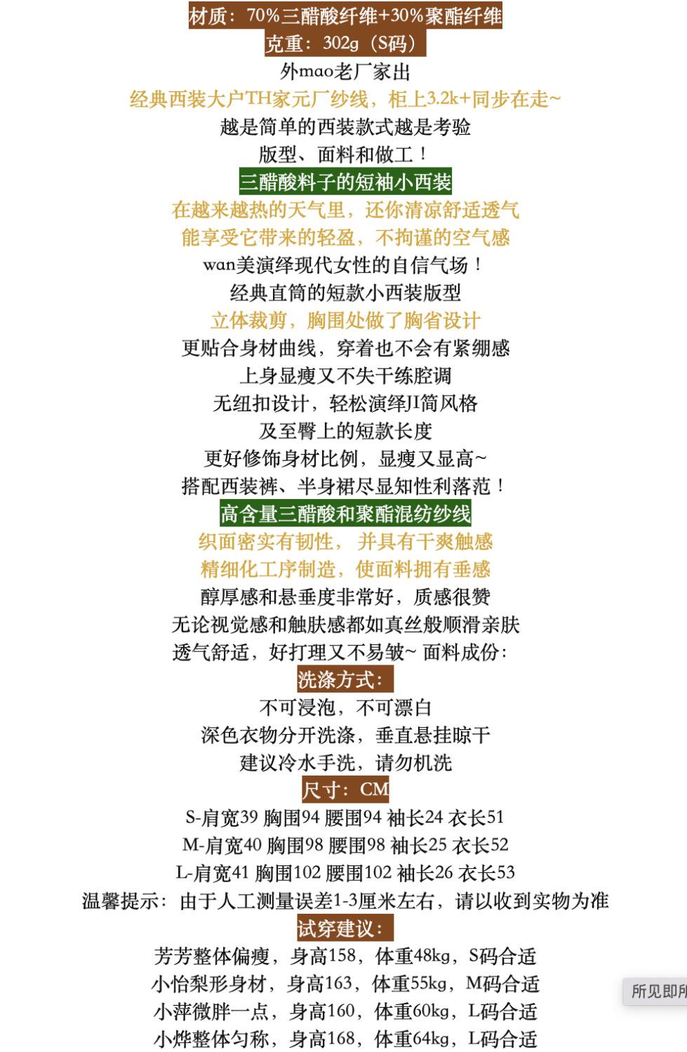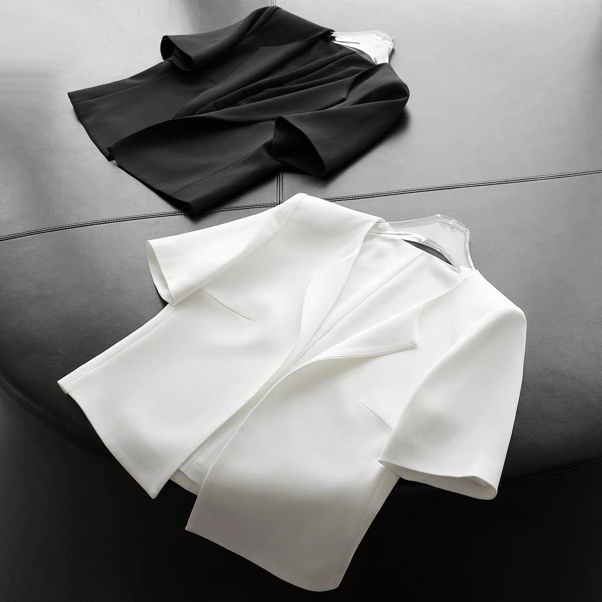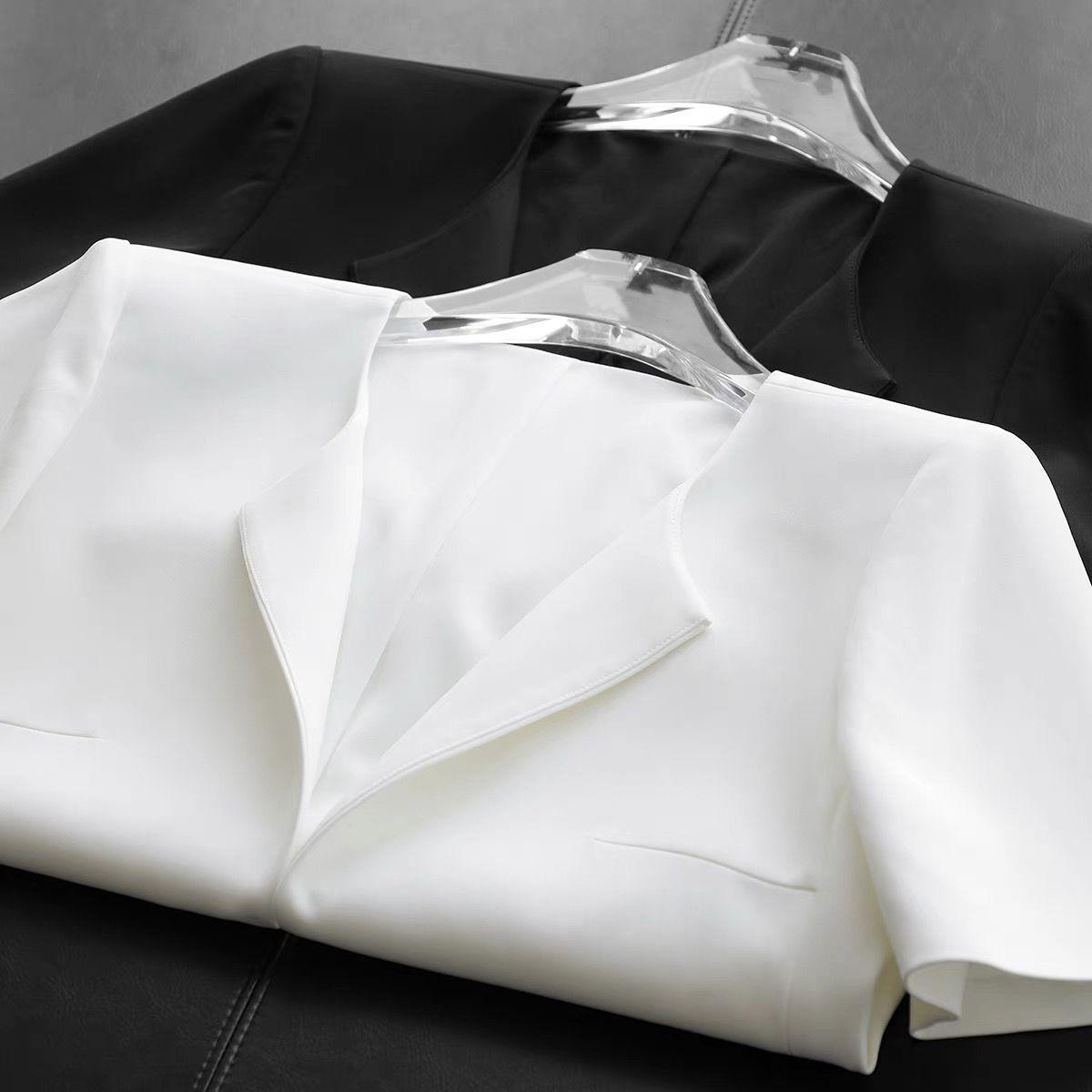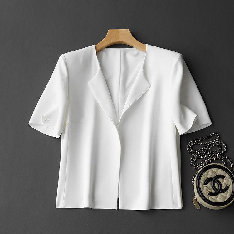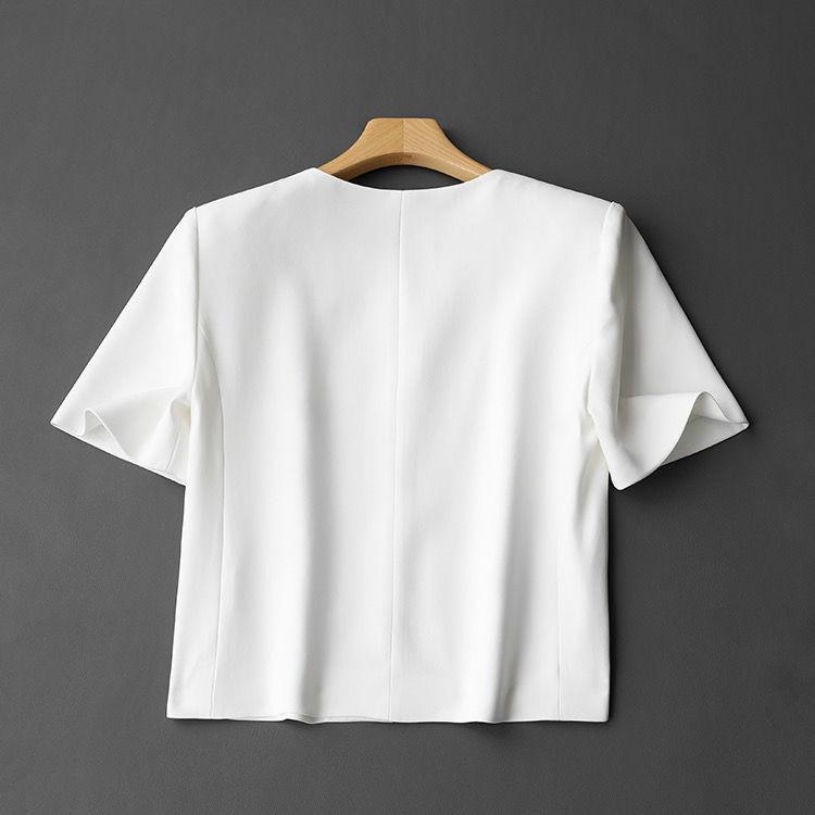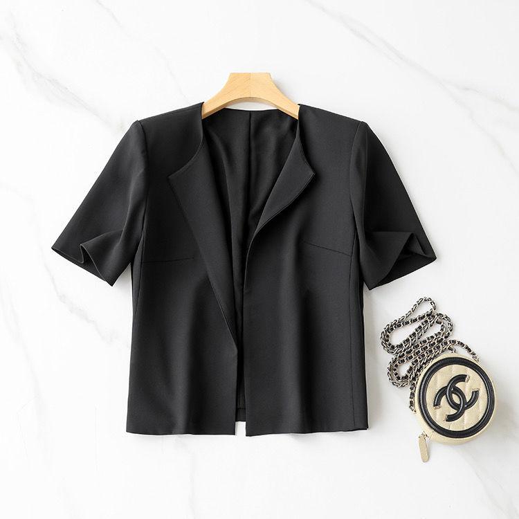 Chaqueta de traje pequeña clásica de manga corta sin botones para mujer, con hilo de ácido triacético JI