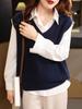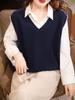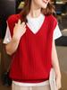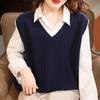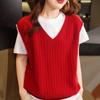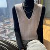 Otoño e Invierno Nuevo Chaleco de Suéter Tejido de Lana Pura Cuello en V Sin Mangas Suelto Tejido Apilado Suéter Ropa Exterior Ropa Exterior Top