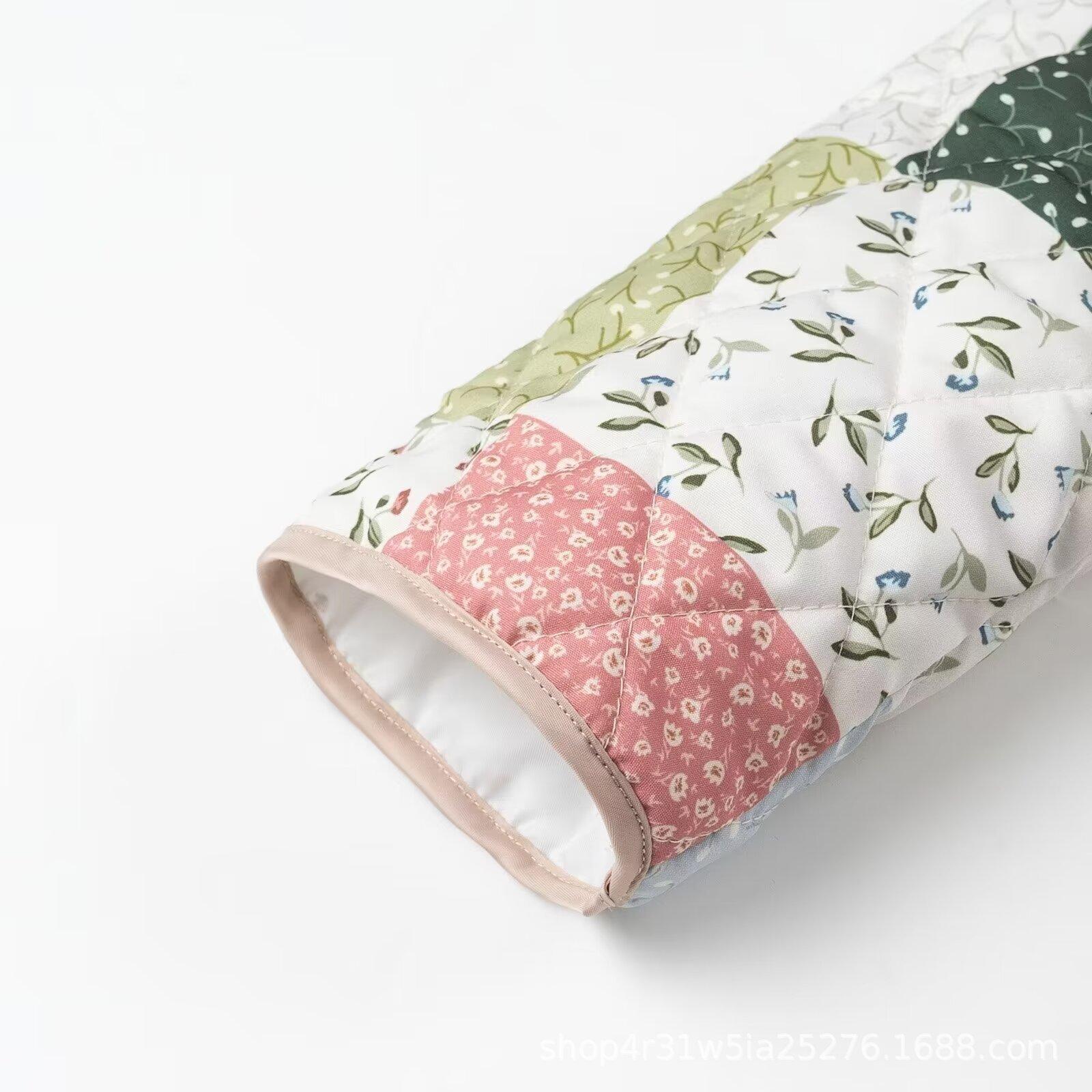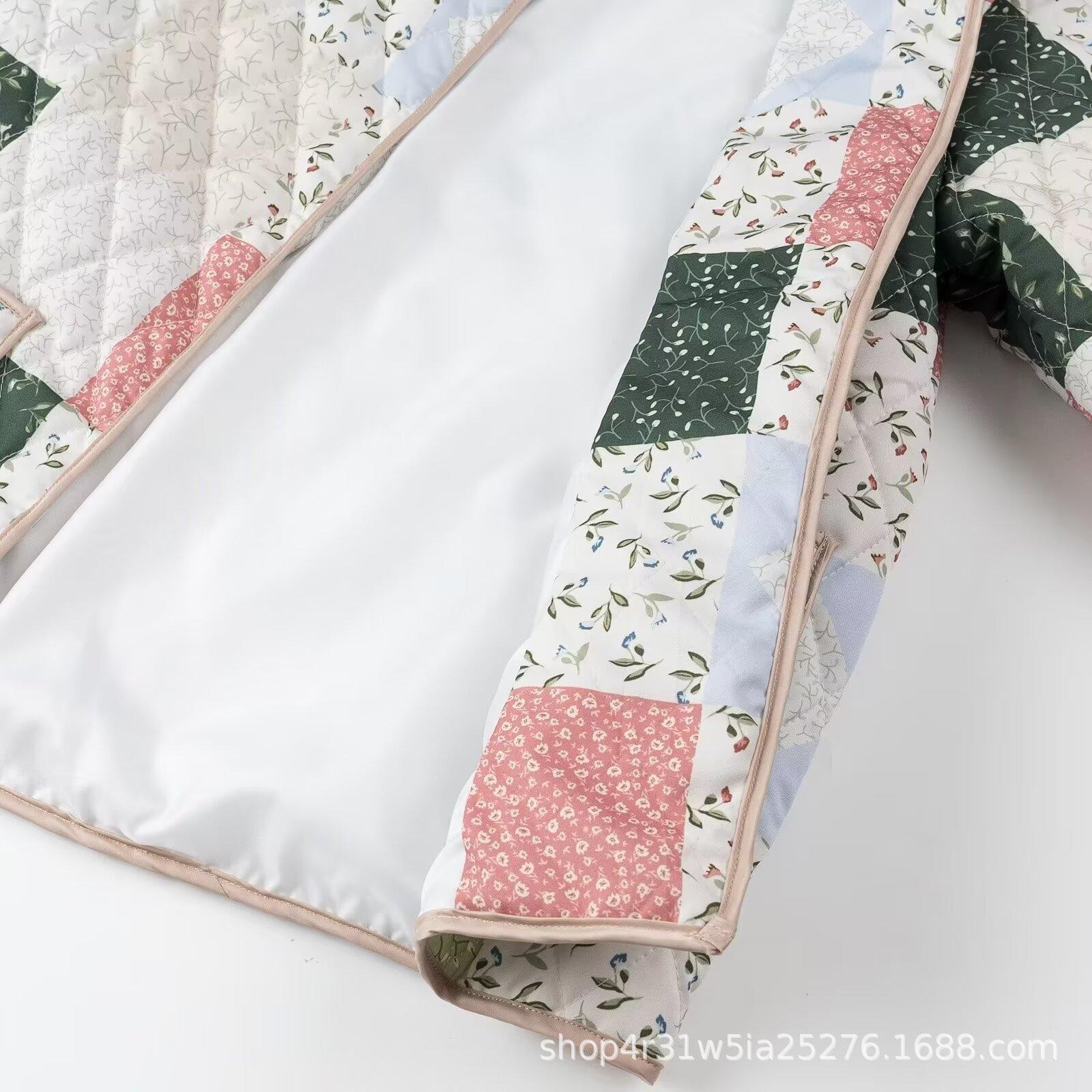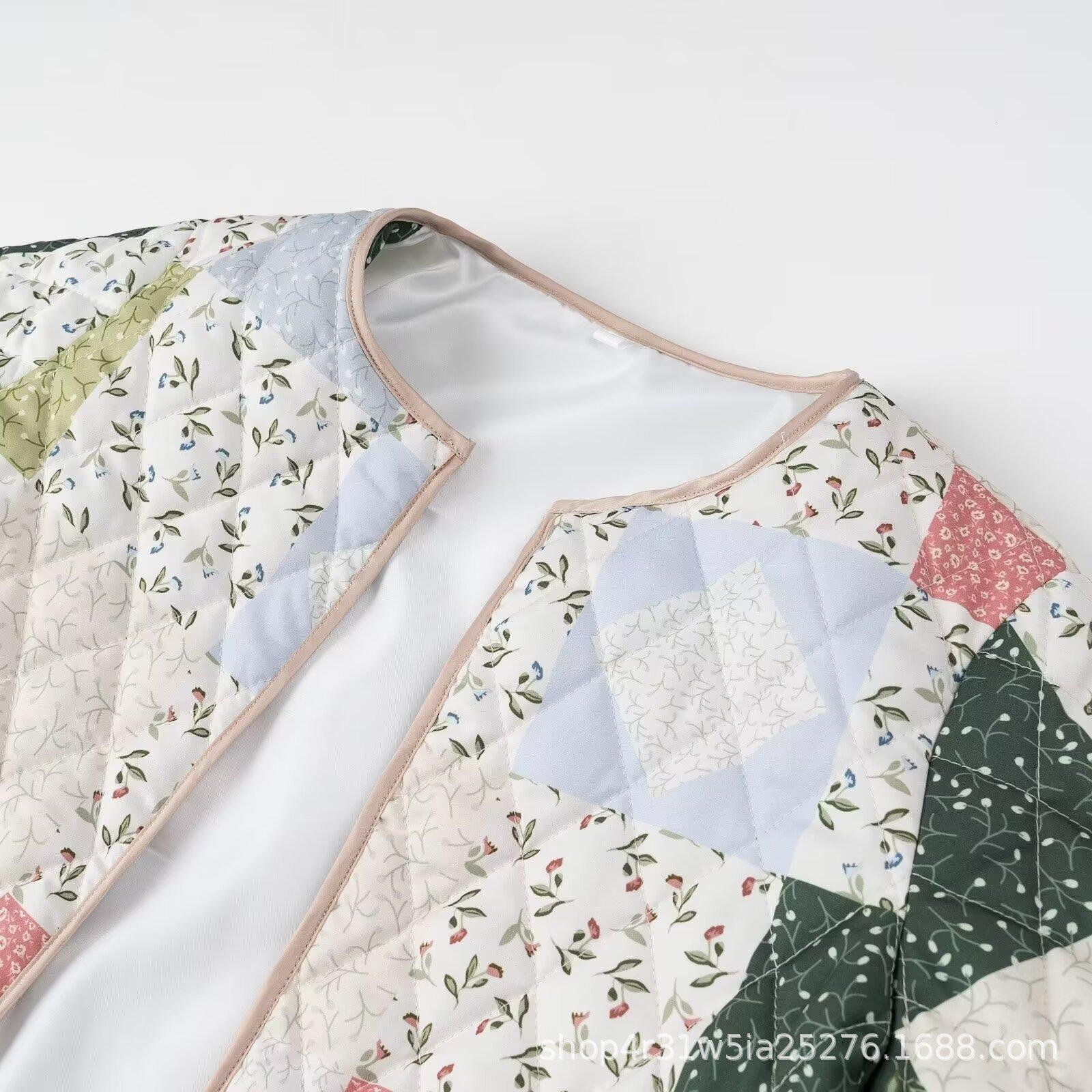 Ropa nueva de otoño e invierno 2024 para mujer europea y americana, abrigo de algodón sin botones de manga larga con cuello redondo y estampado de diamantes a cuadros empalmado