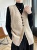 Chaleco de punto tipo cárdigan para mujer, prenda exterior de otoño e invierno, nuevo chaleco de lana apilada con cuello en V, top holgado sin mangas