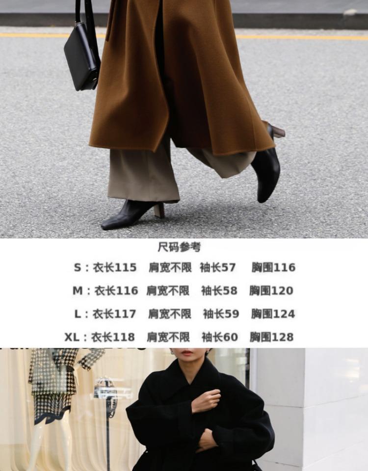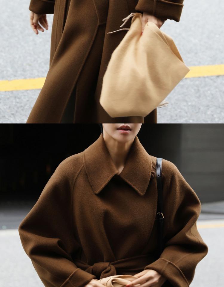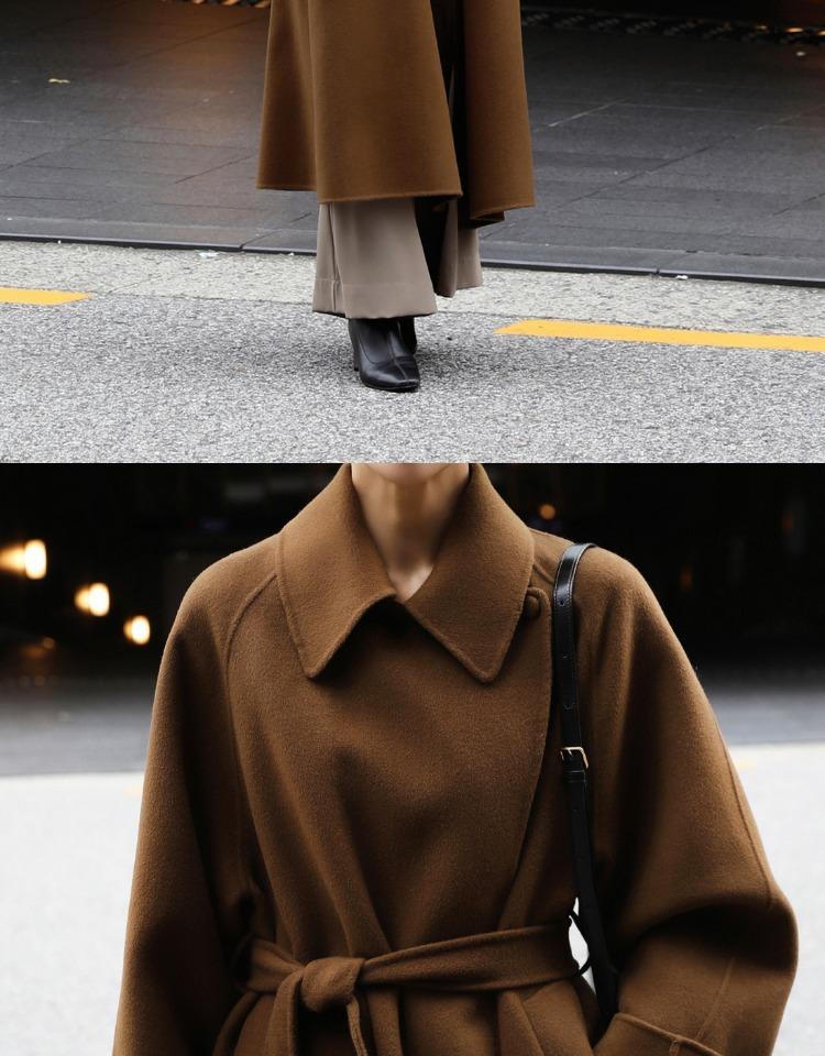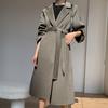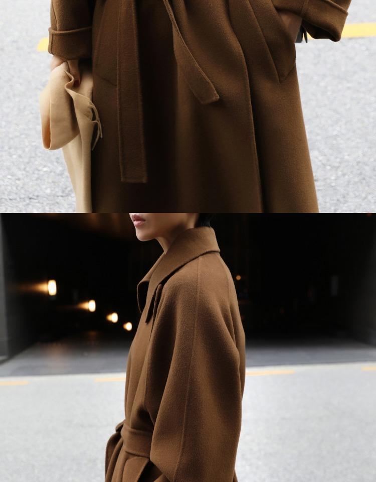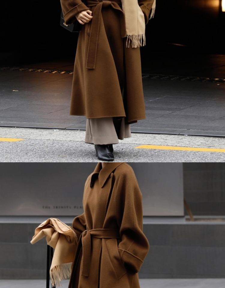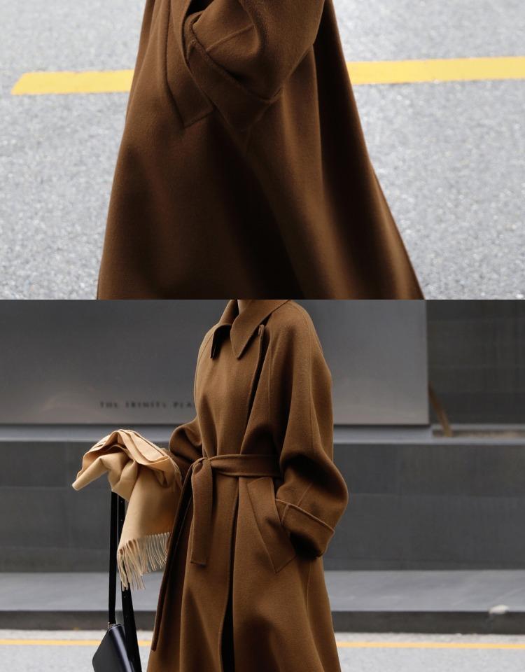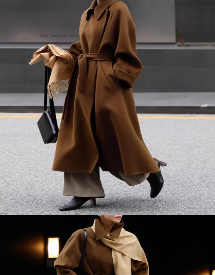 Otoño e Invierno Nuevo Abrigo de Lana de Doble Vista con Cordones para Mujer Largo Medio Estilo Coreano Estilo Hepburn Cachemira Grande