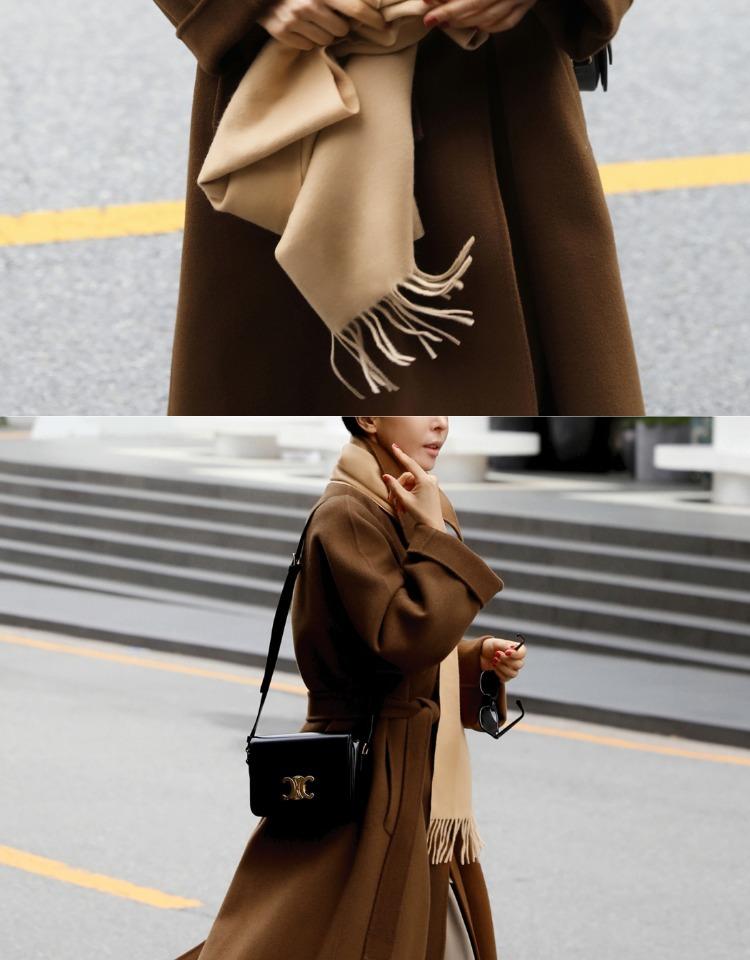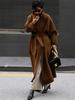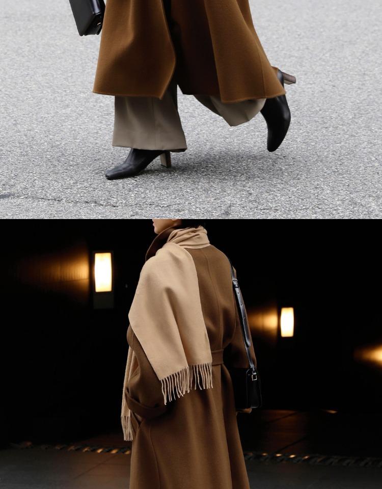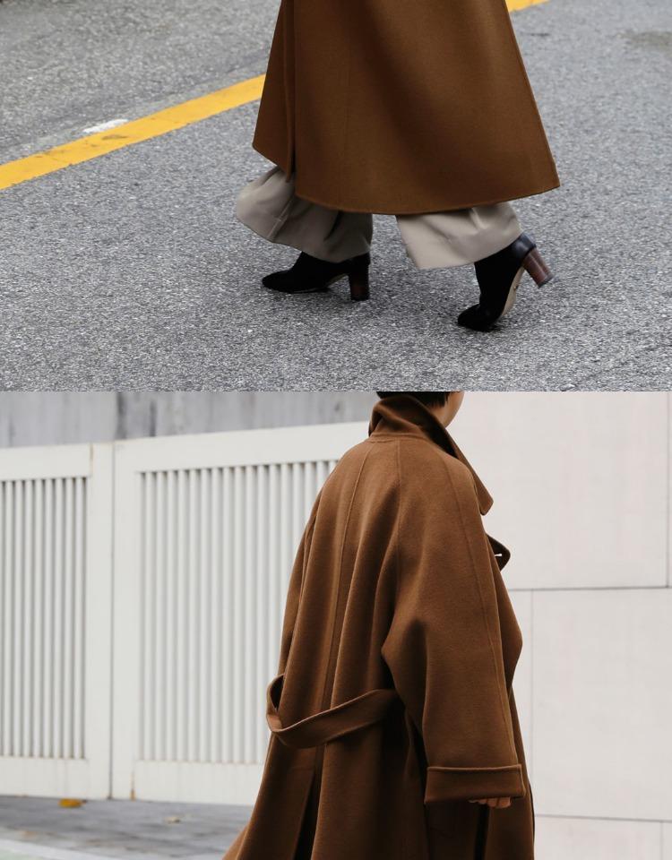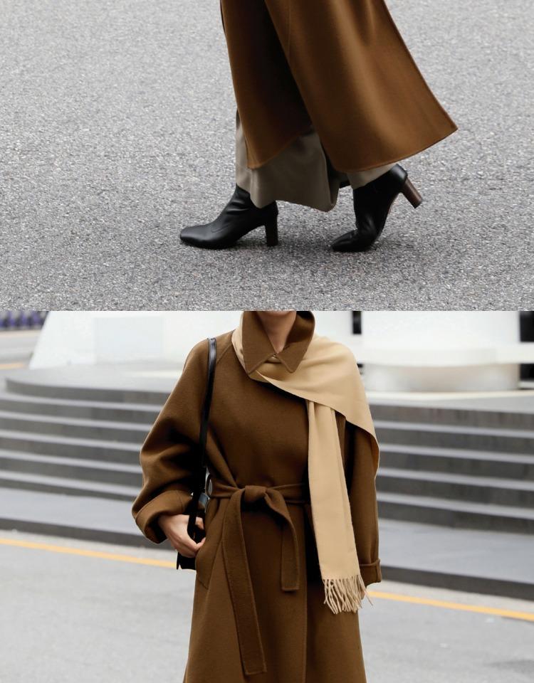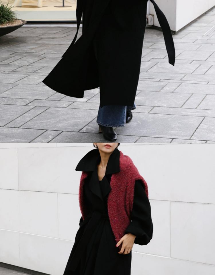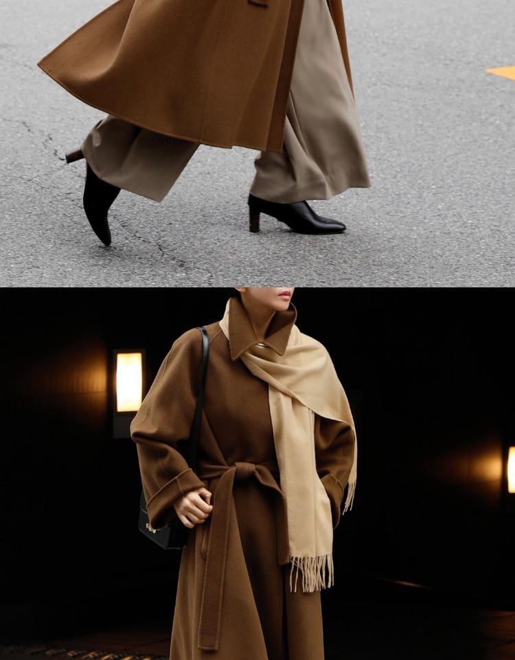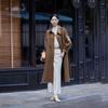 Otoño e Invierno Nuevo Abrigo de Lana de Doble Vista con Cordones para Mujer Largo Medio Estilo Coreano Estilo Hepburn Cachemira Grande