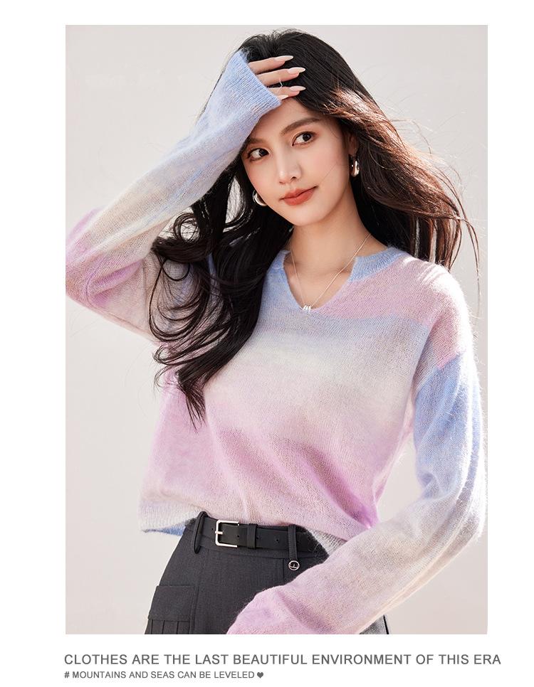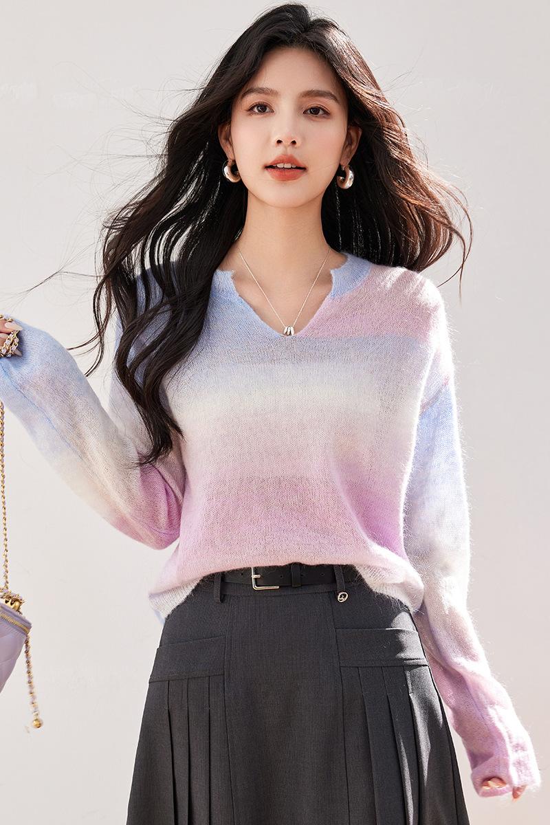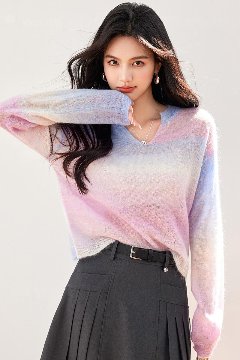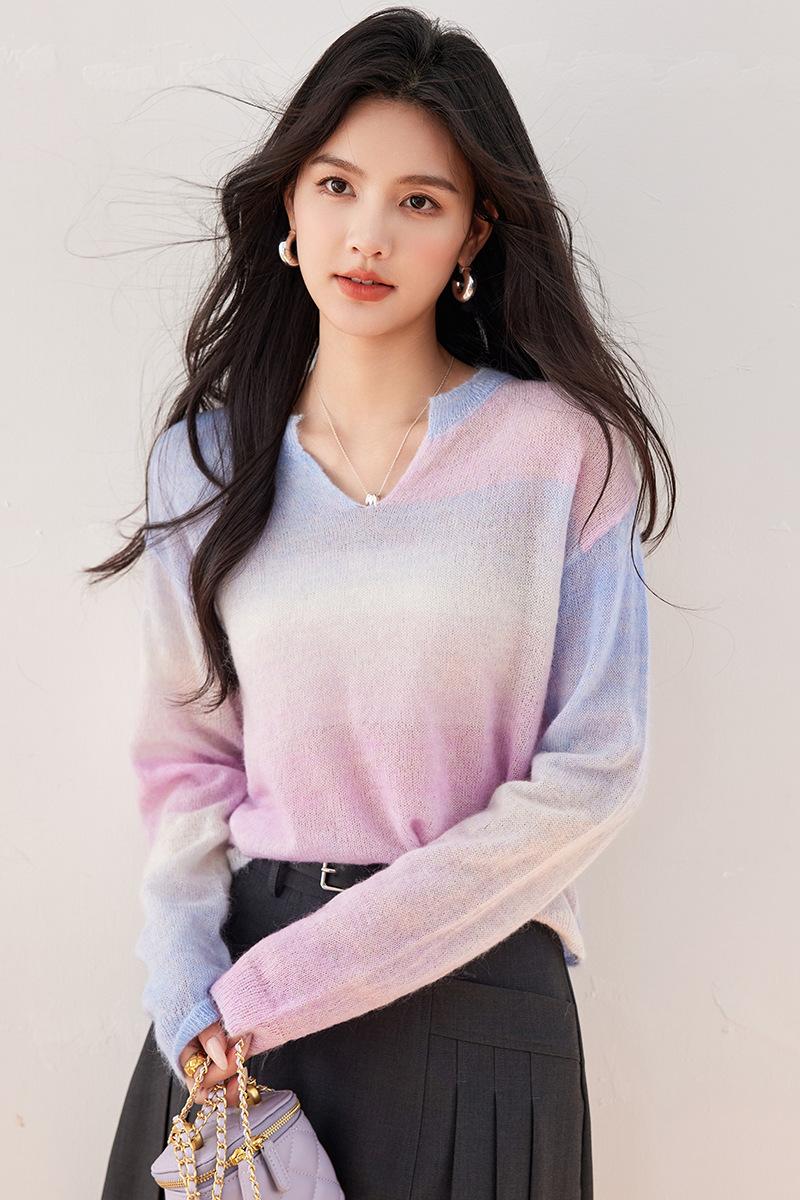 Suéter suave y ceroso para mujer, suéter holgado de otoño e invierno, estilo perezoso, suéter de fondo, nuevo top con degradado dulce 2024