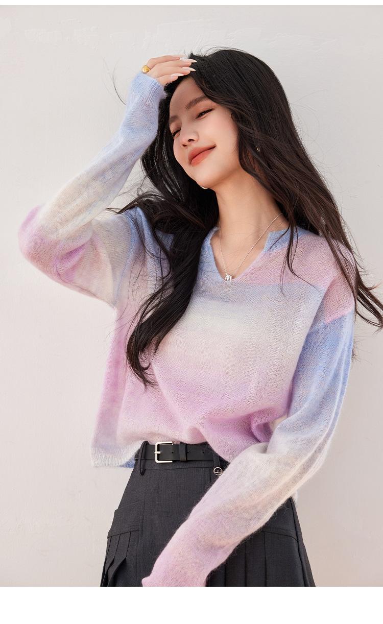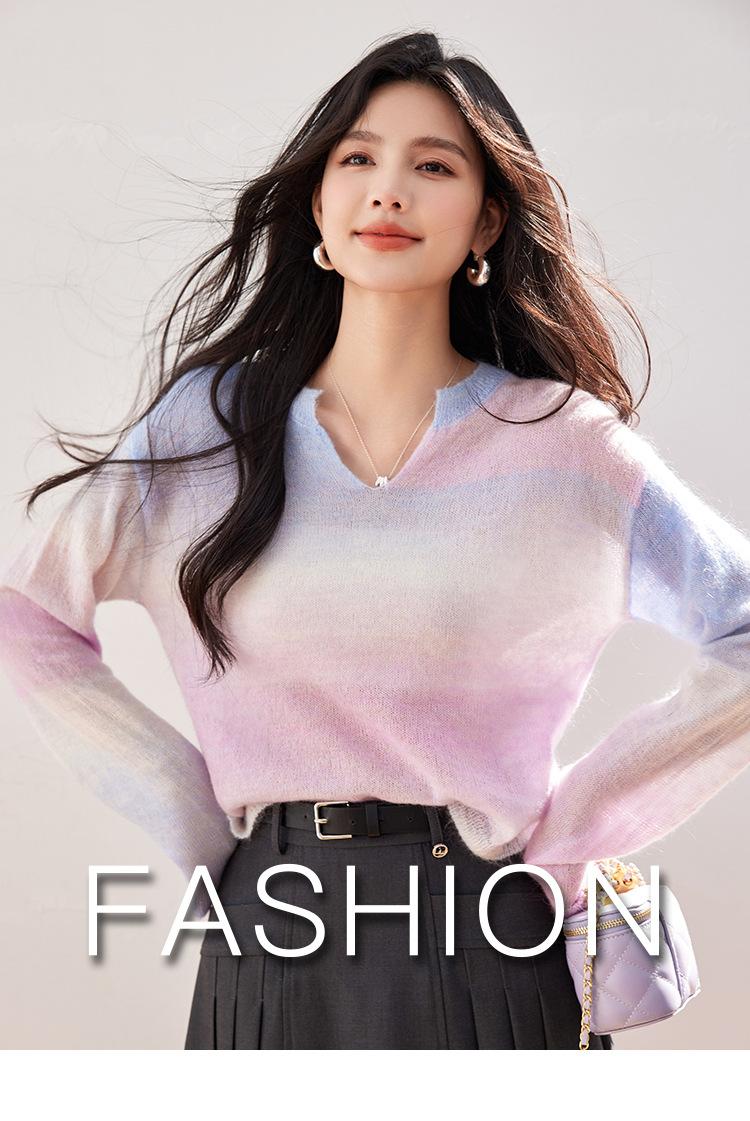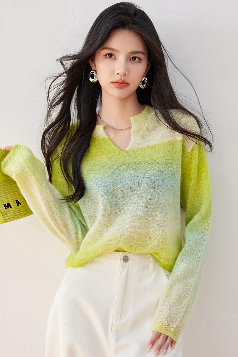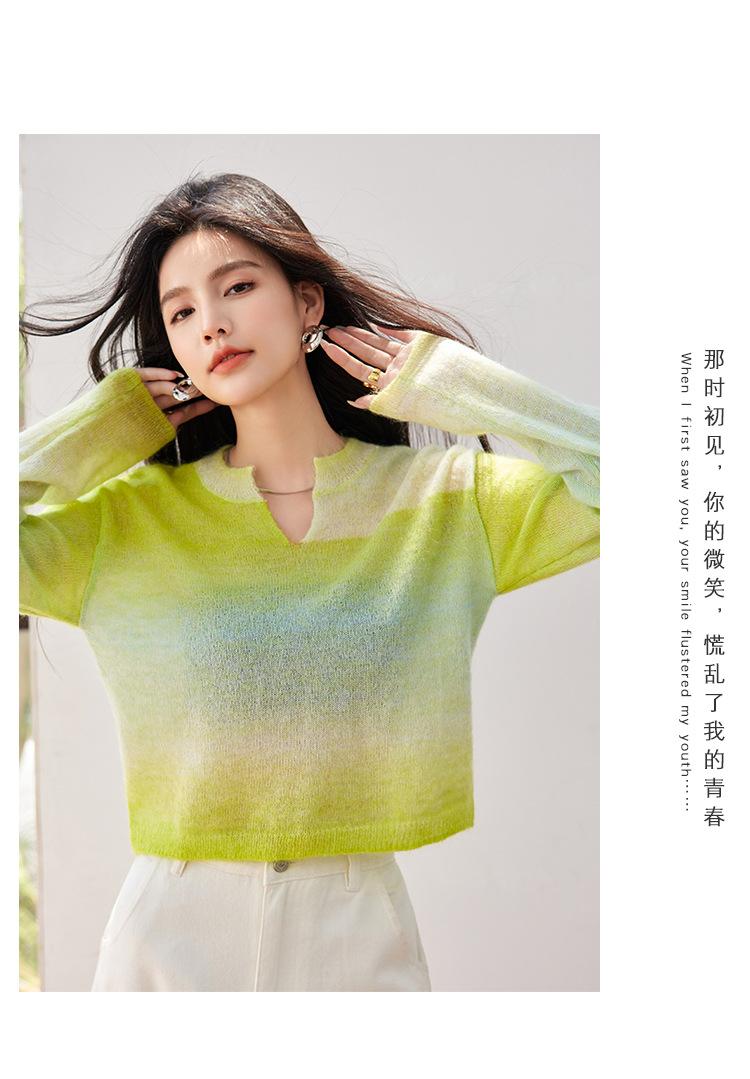 Suéter suave y ceroso para mujer, suéter holgado de otoño e invierno, estilo perezoso, suéter de fondo, nuevo top con degradado dulce 2024