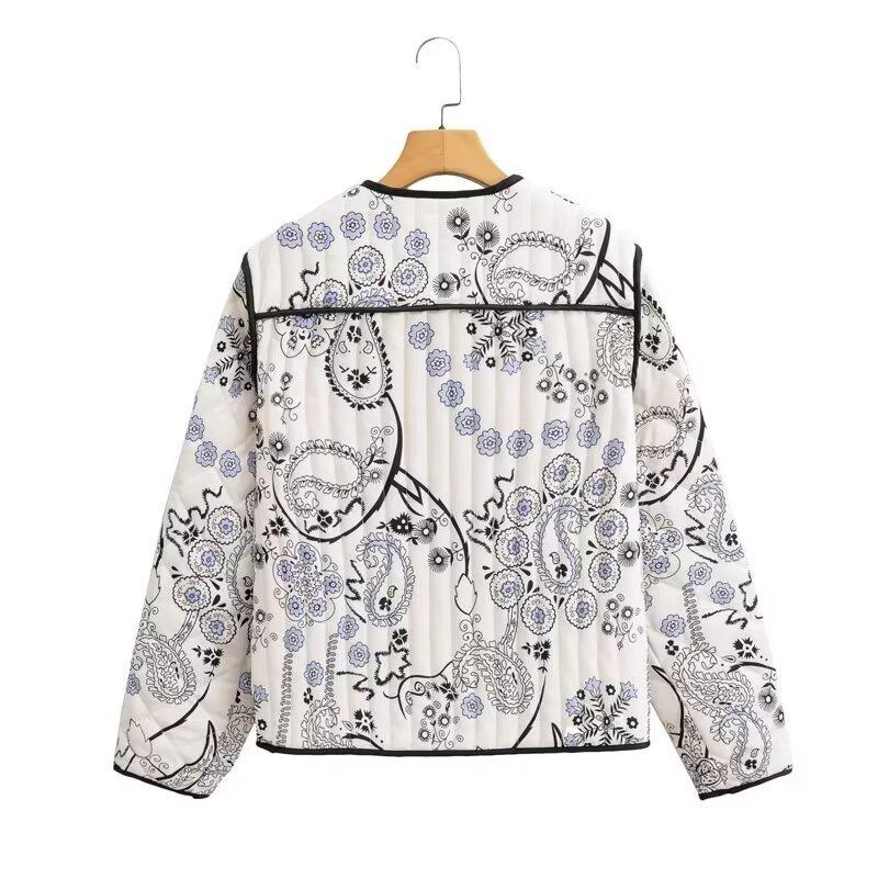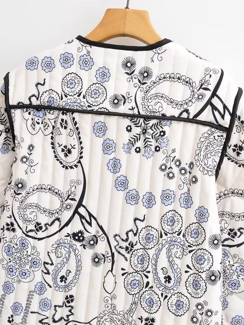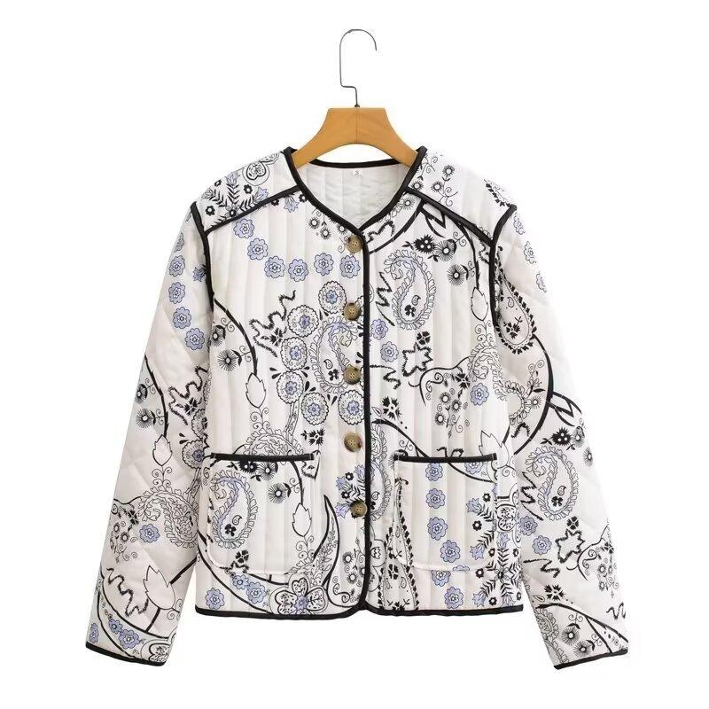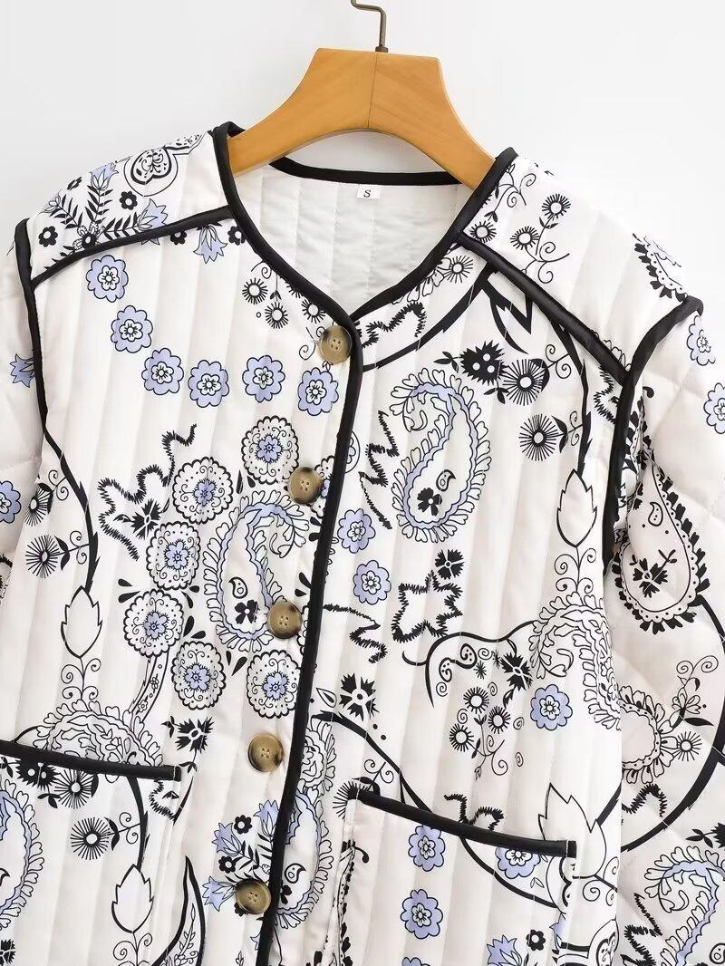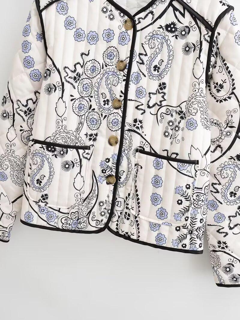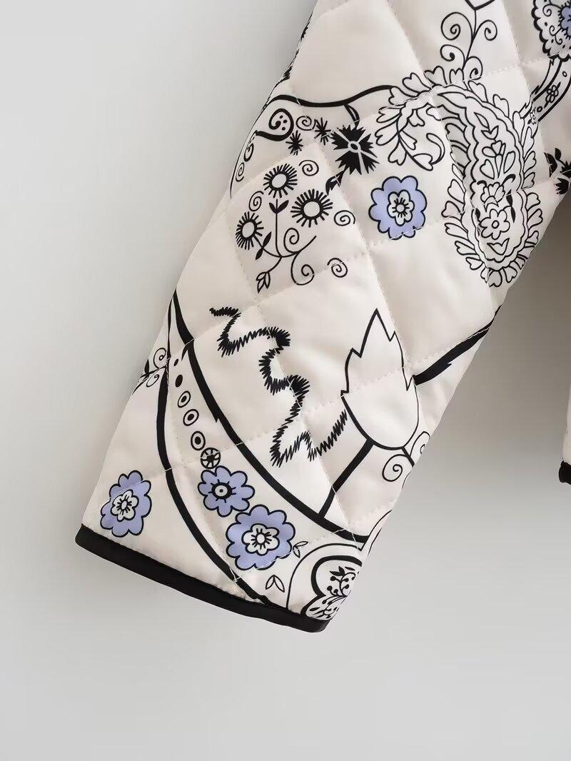 Otoño e invierno 2024, nueva moda urbana europea y americana para mujer, ropa informal con estampado de manga larga y relleno de algodón w091 2133