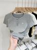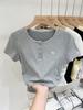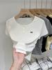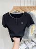 Camiseta de manga corta con diseño de costura de encaje Sense Niche para mujer, camiseta de verano ajustada de estilo coreano con base interior, top corto