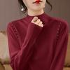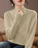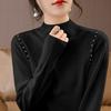 Suéter de mujer de manga larga con cuello alto y medio otoño e invierno 2023, nuevo, suelto, de una sola pieza, con parte superior con cuentas, ropa interior
