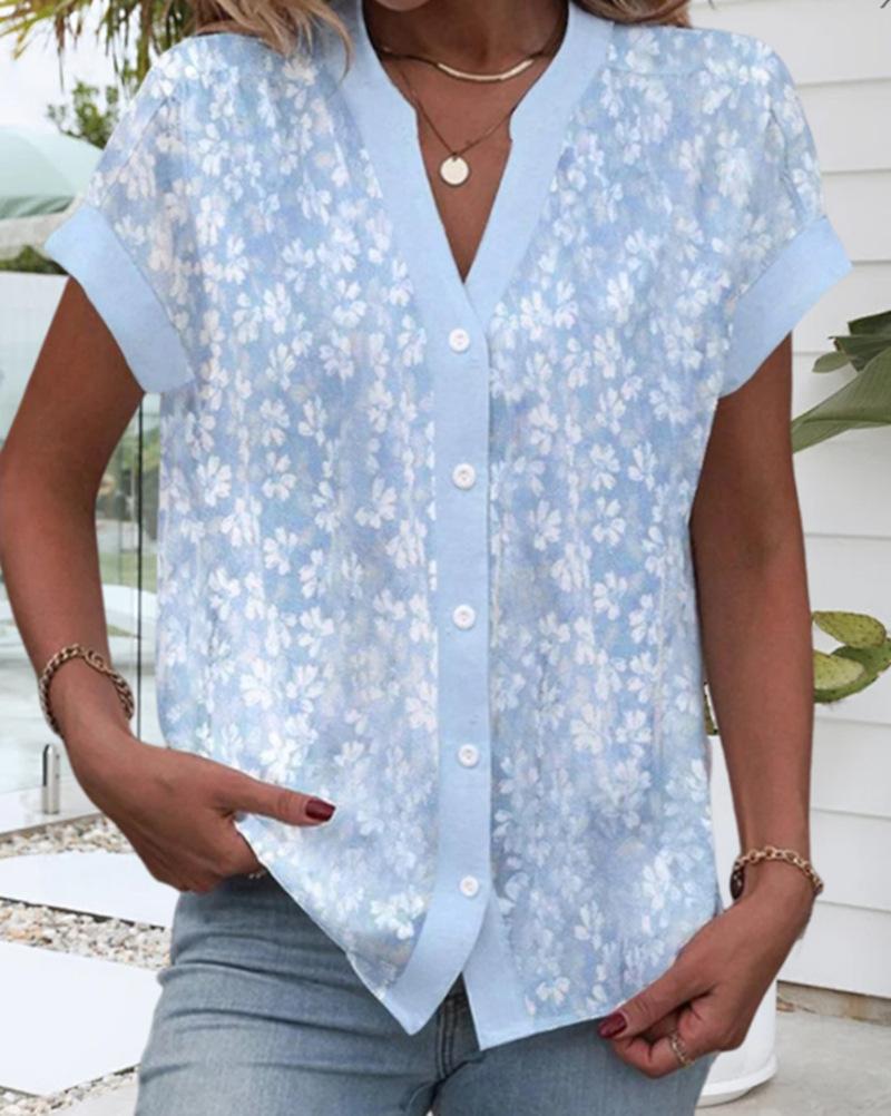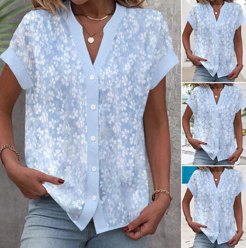 Blusa de manga corta con cuello en V y botones para mujer, moda europea y americana, nueva de Amazon, verano 2024
