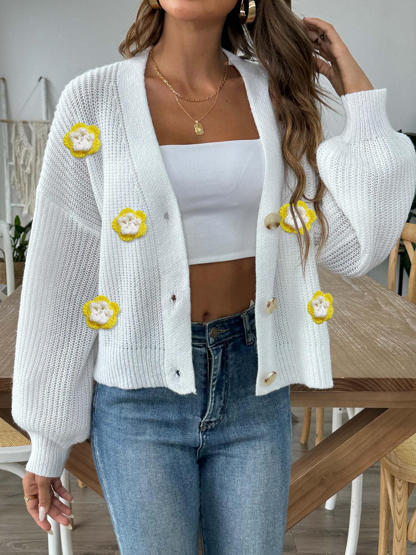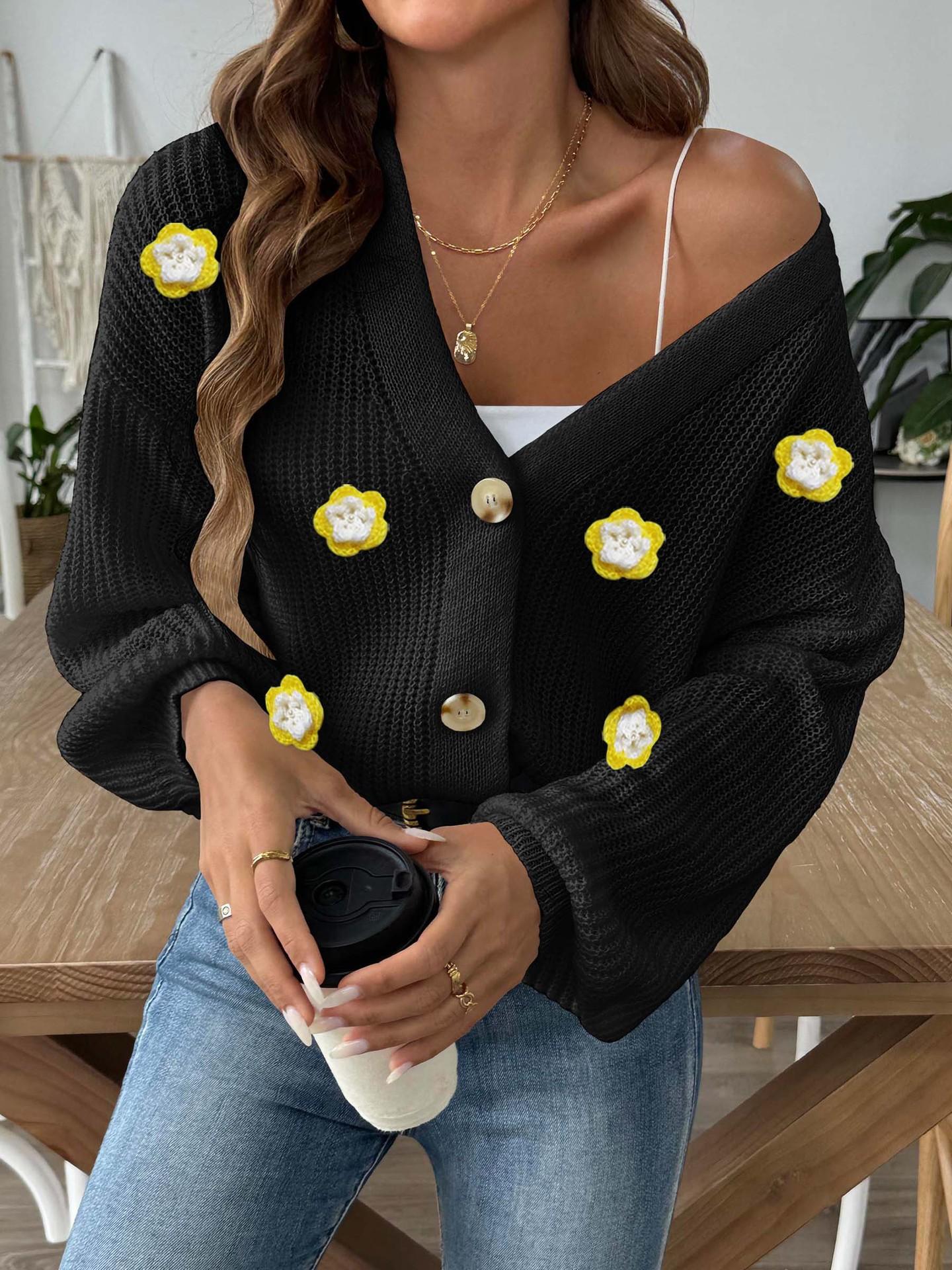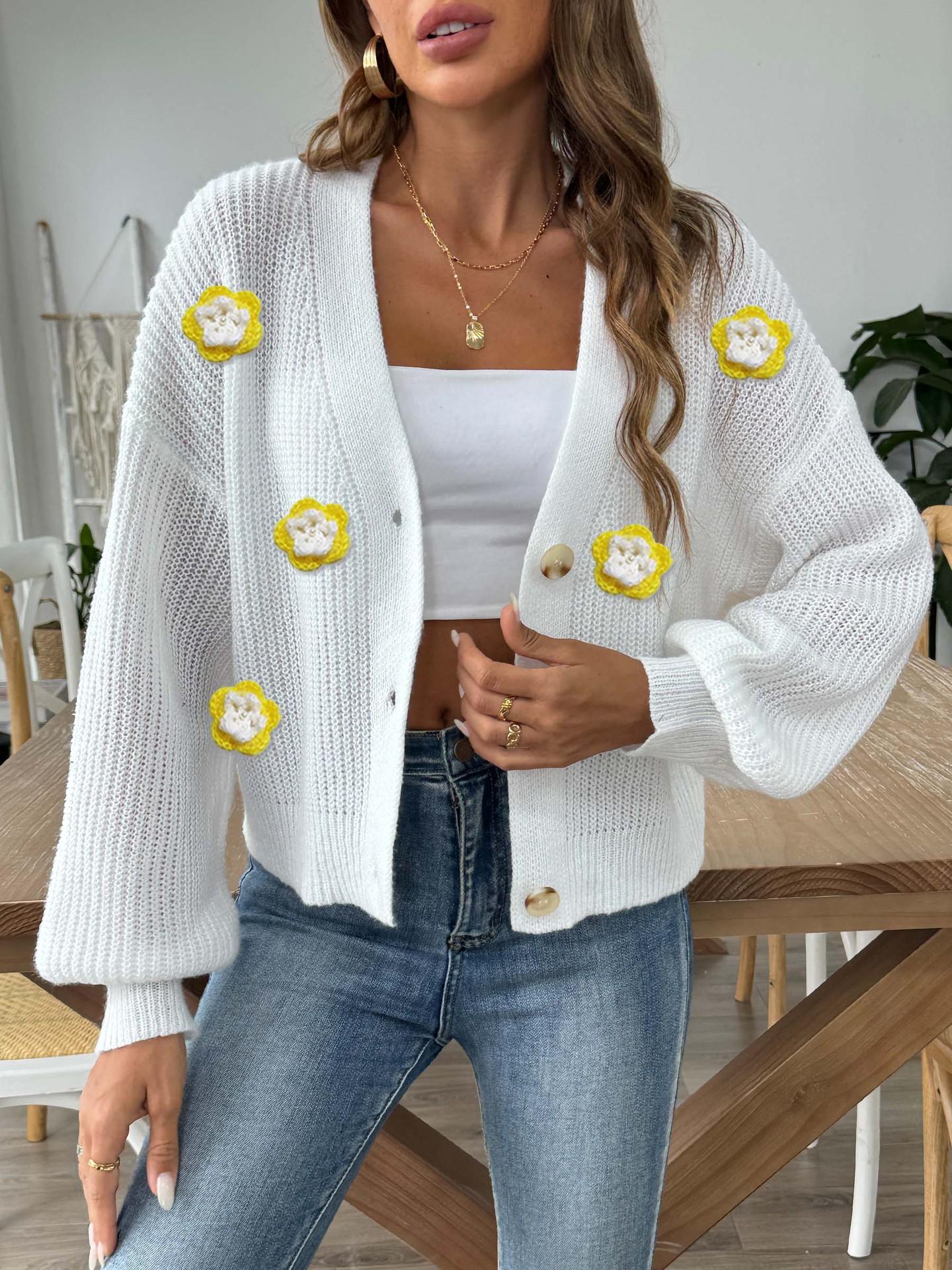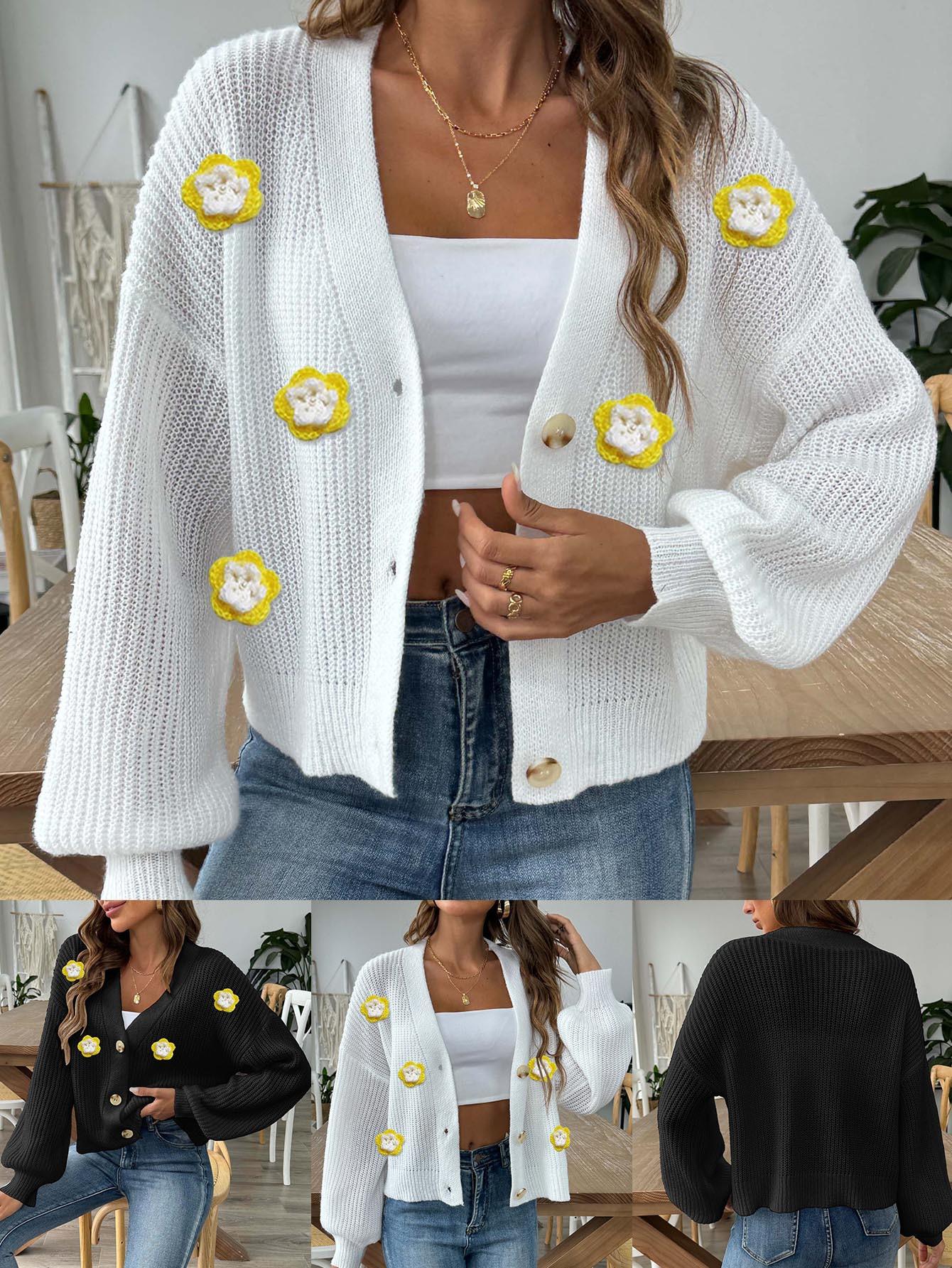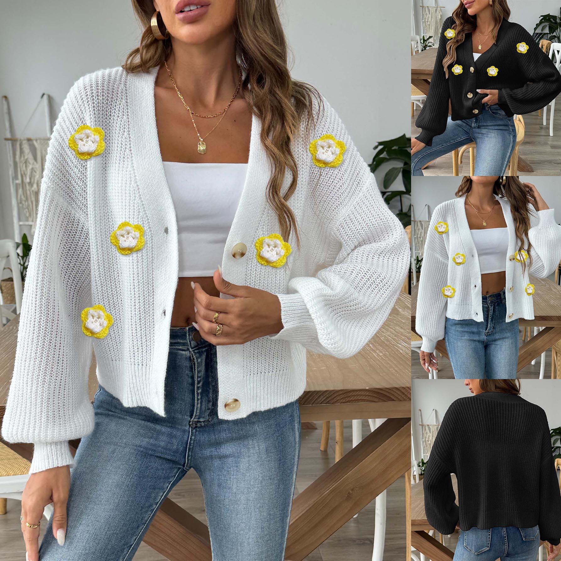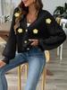 Suéter tejido para mujer, cárdigan con botones cortos y costura a crochet a mano para otoño e invierno, estilo europeo y americano.